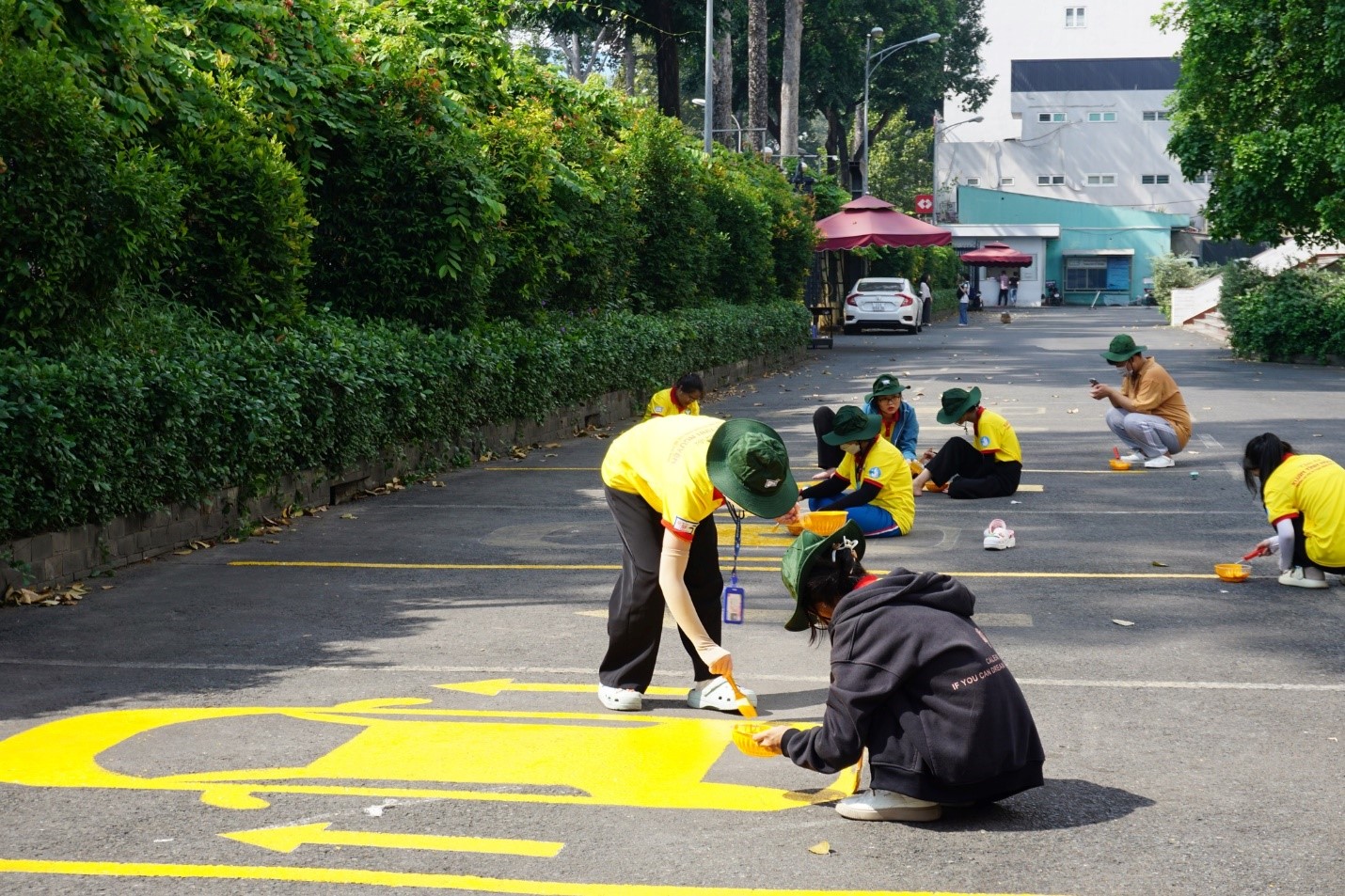 Đội hình “Xuân sẻ chia” sau ra quân đã cùng nhau thực hiện sơn vẽ các vạch xe ô tô và thực hiện “Ngày Chủ nhật Xanh”- tham gia tổng vệ sinh khuôn viên trường. Hình ảnh các chiến sĩ áo vàng dưới ánh nắng ngày mới của Thành phố đã làm rực lên tinh thần khát khao cống hiến, sẻ chia của sinh viên HCMUE.