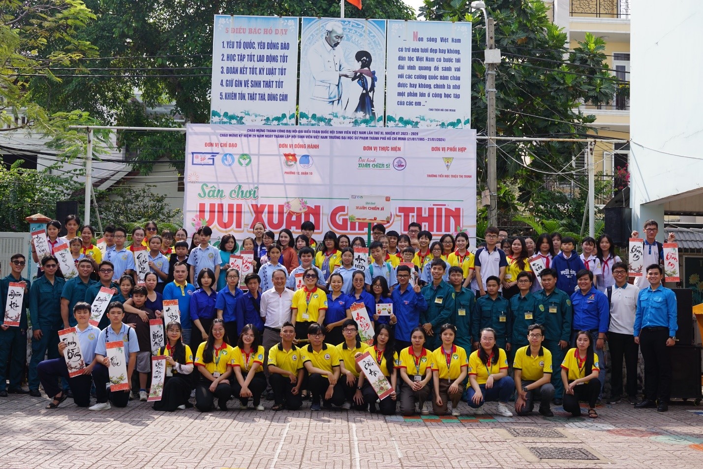 Đội hình Xuân Chiến sĩ đã phối hợp cùng Câu lạc bộ Cờ vua để tổ chức sân chơi “Vui xuân Giáp Thìn” với những hoạt động thú vị, mới lạ, mang đậm nét văn văn hóa, truyền thống ngày Tết: khu vực “Trò chơi dân gian”, khu vực “Nghệ thuật Thư pháp”, khu vực trang trí ấn phẩm “Xuân gắn kết - Tết yêu thương” và khu vực “giao lưu, thi đấu cờ vua” cho các Ban Chỉ huy Quân sự Phường 12 Quận 10 và các bạn nhỏ tại Trường Tiểu học Triệu Thị Trinh.