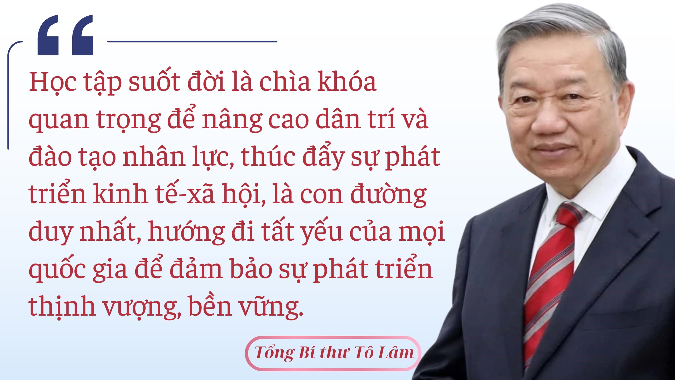 Thực hiện các quan điểm, chủ trương của Đảng, việc xây dựng xã hội học tập, học tập suốt đời đã trở thành phong trào, thành nhu cầu, thành nếp văn hóa và đạt nhiều kết quả quan trọng. Theo đó, đã hình thành hệ thống giáo dục quốc dân thống nhất từ giáo dục mầm non đến đào tạo sau đại học; các loại hình trường, lớp, loại hình đào tạo được đa dạng hóa, mang lại cơ hội học tập cho người dân ở mọi lứa tuổi.
