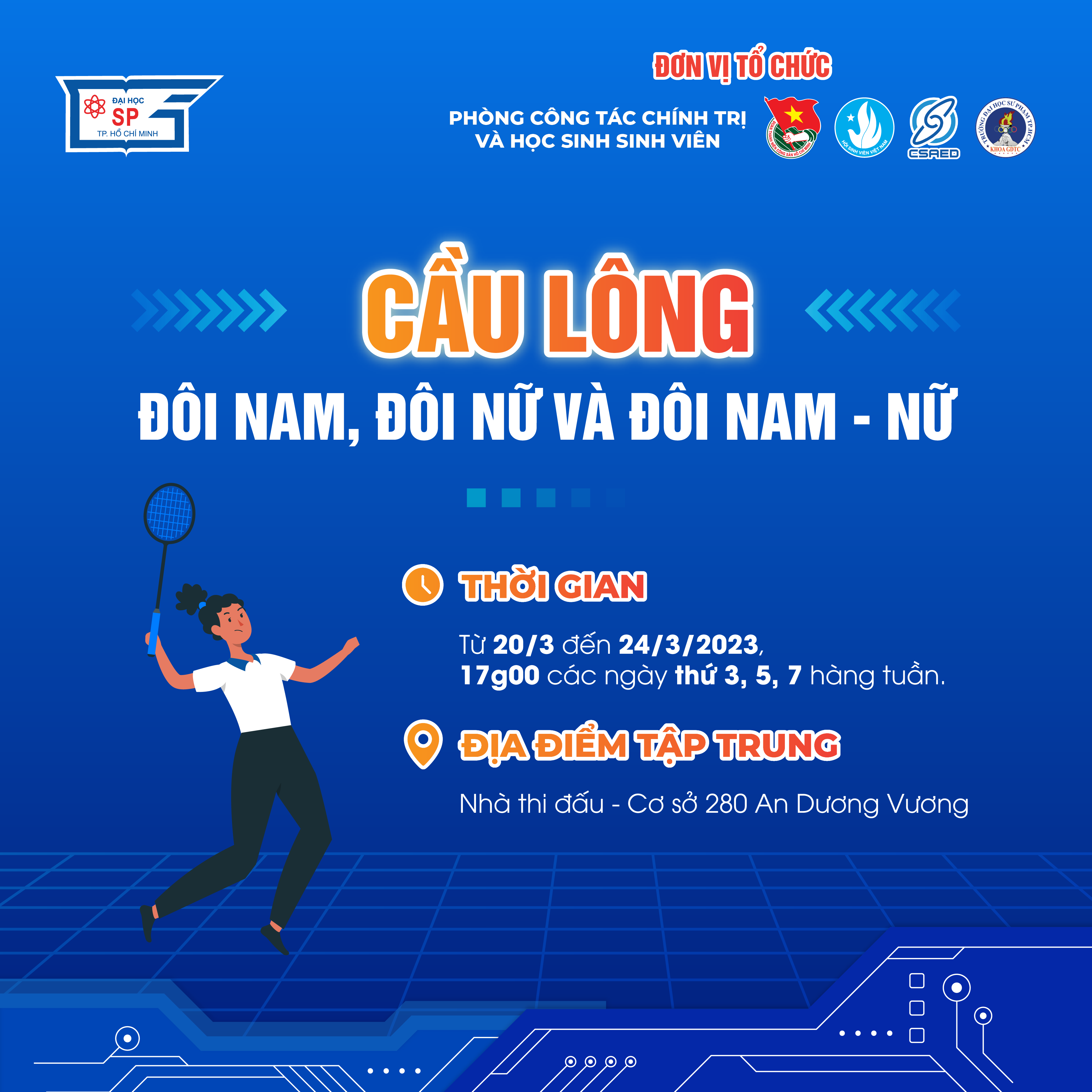 Với sự nhiệt huyết của tuổi trẻ, sinh viên Sư phạm không ngại thử thách bản thân ở những lĩnh vực mới. Chính vì vậy, Hội thao Học sinh, sinh viên năm 2023 là dịp để bạn tỏa sáng. Hãy cùng chúng mình điểm qua các môn thi đấu và những thông tin cần thiết nhé!