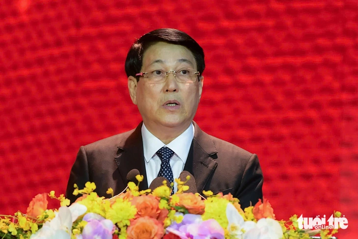Chủ tịch nước Lương Cường phát biểu chúc Tết kiều bào - Ảnh: NAM TRẦN