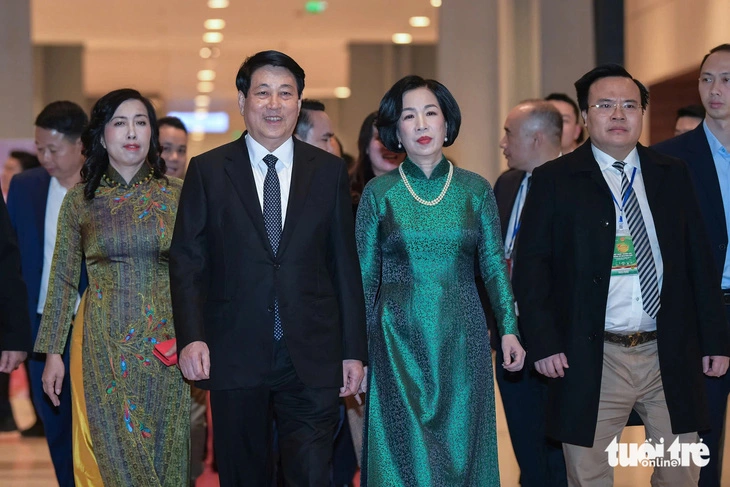 Chủ tịch nước Lương Cường và Phu nhân dự chương trình giao lưu nghệ thuật Xuân quê hương 2025 tối 19-1 tại Hà Nội - Ảnh: NAM TRẦN