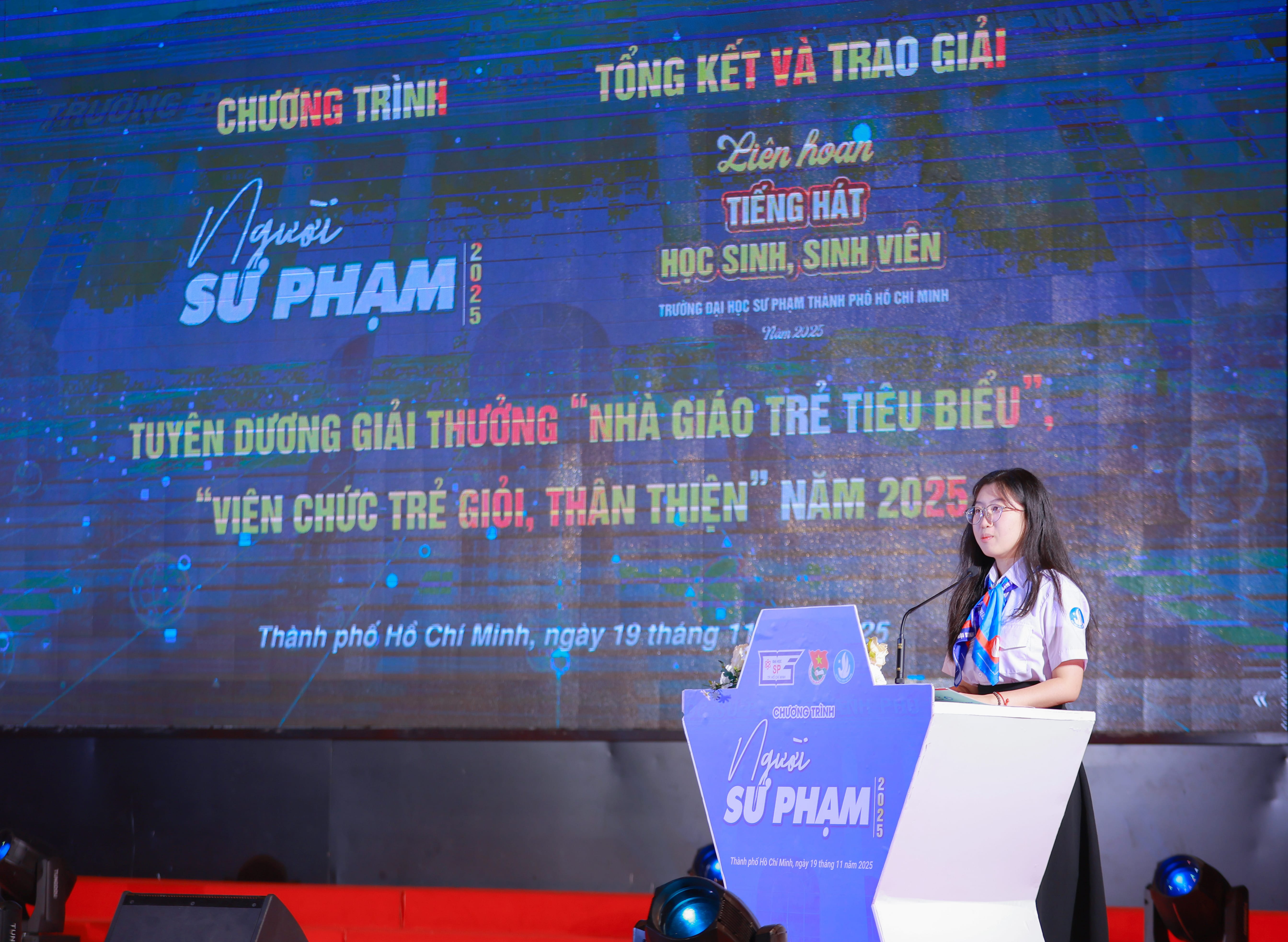 Hòa trong không khí hân hoan của cả nước chào mừng kỷ niệm 43 năm Ngày Nhà giáo Việt Nam (20/11/1982 - 20/11/2025) , vào lúc 18g00 ngày 19/11/2025 , tại Hội trường B - Cơ sở 280 An Dương Vương, Ban Thường vụ Đoàn Trường - Ban Thư ký Hội Sinh viên Trường đã long trọng tổ chức Chương trình “Người Sư phạm” năm 2025. Đây là dịp đặc biệt để tuổi trẻ Nhà trường gửi lời tri ân sâu sắc đến các thầy giáo, cô giáo nhân ngày Hiến chương Nhà giáo 20/11.