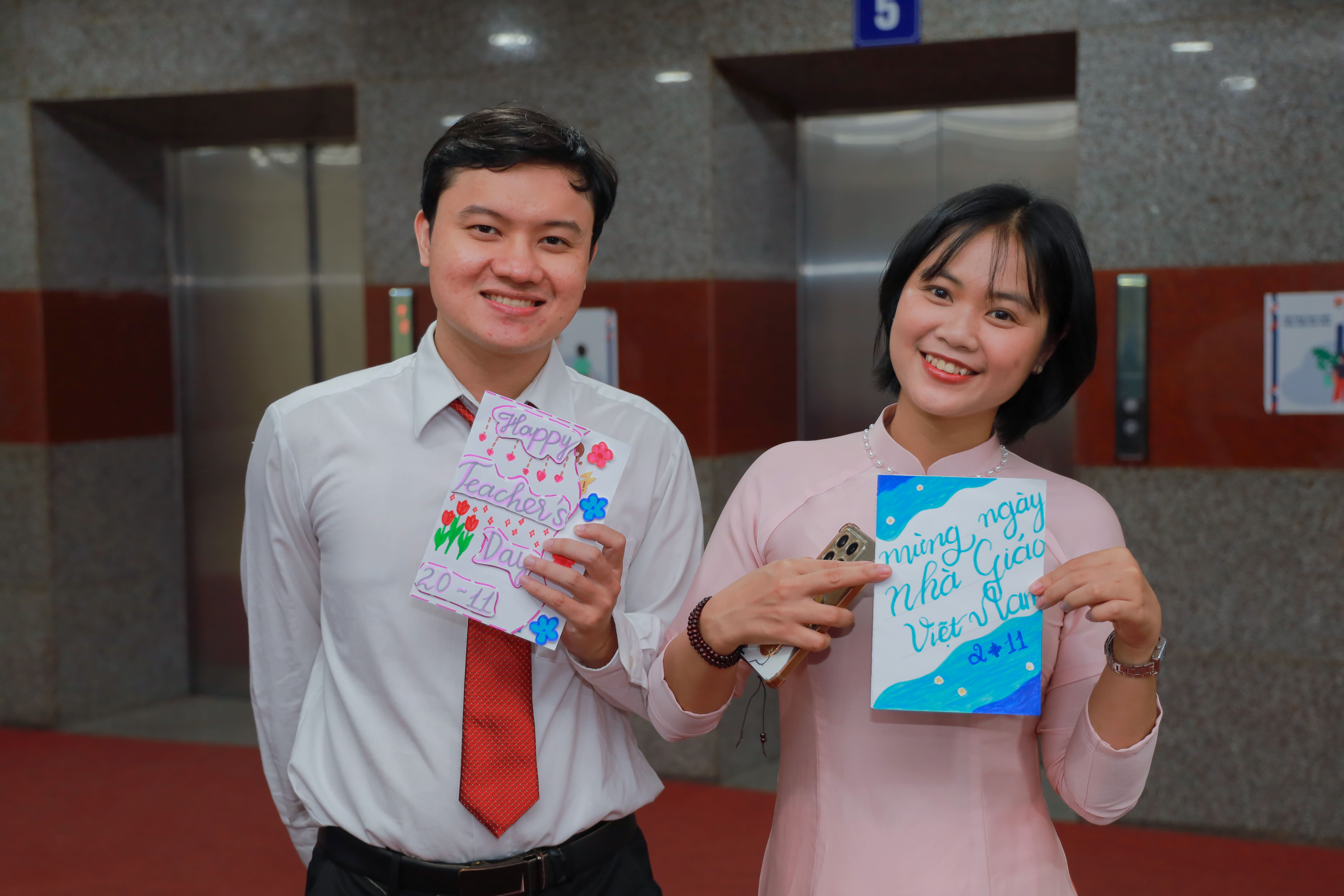 TS. Cao Anh Tuấn, Ủy viên BTV Đảng ủy, Chủ nhiệm UBKT Đảng ủy, Phó Hiệu trưởng Nhà trường và đồng chí Trịnh Thị Hiền Trân,Phó Bí thư Thành Đoàn, Chủ tịch Hội Đồng đội Thành phố Hồ Chí Minh trao khen thưởng cho các gương Nhà giáo trẻ tiêu biểu và Viên chức trẻ giỏi, thân thiện năm 2025