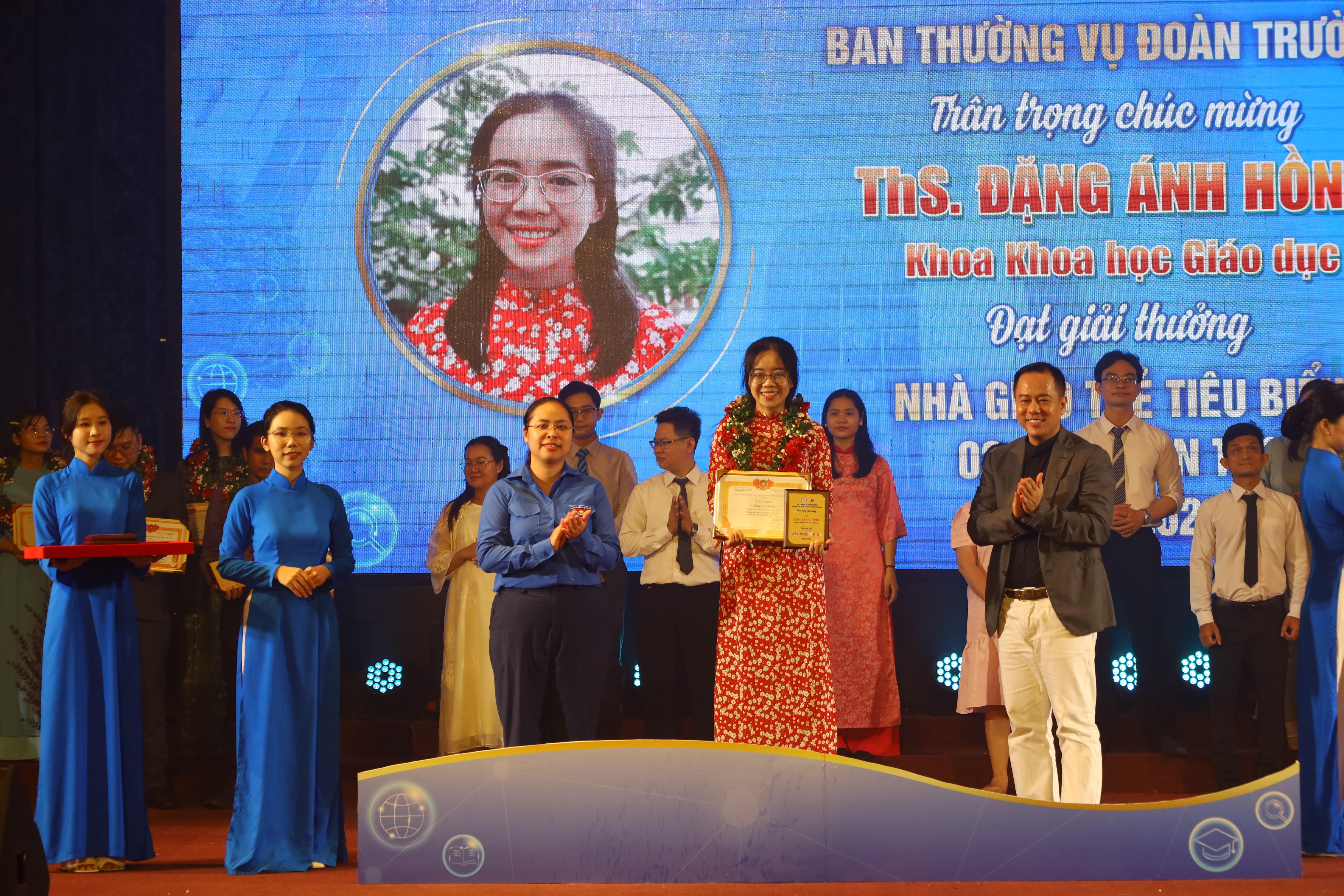 Trong chương trình, nhằm tuyên dương các gương Nhà giáo trẻ tiêu biểu, viên chức trẻ có nhiều đóng góp và nỗ lực thực hiện các nhiệm vụ, tham gia tích cực các hoạt động phong trào, có tinh thần trách nhiệm cao với công việc, Ban Thường vụ Đoàn Trường đã xét trao giải thưởng “Nhà giáo trẻ tiêu biểu” năm 2024 cho 29 cá nhân là giảng viên, giáo viên Trường và xét trao giải thưởng “Viên chức trẻ giỏi, thân thiện” năm 2024 cho 07 cá nhân là viên chức trẻ Nhà trường.