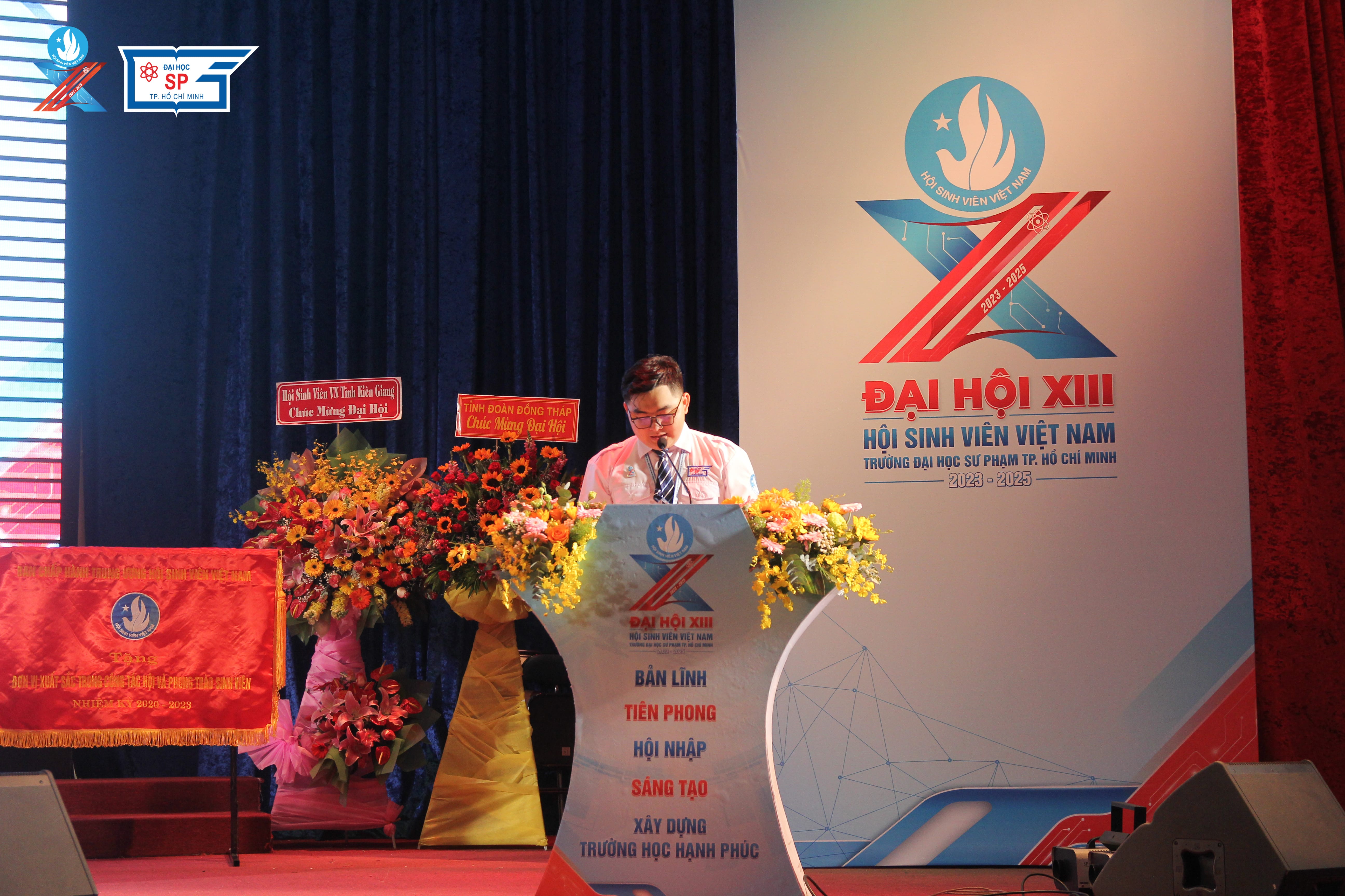 ThS. Nguyễn Ngọc Trung - Ủy viên Ban Thường vụ Đảng ủy, Phó Hiệu trưởng, Chủ tịch Công Đoàn trường và đồng chí Trần Thu Hà - Phó Bí thư Thành Đoàn, Chủ tịch Hội Sinh viên Việt Nam Thành phố Hồ Chí Minh đã có phát biểu chỉ đạo Đại hội. Với một nhiệm kỳ 2020 - 2023 thành công rực rỡ, Hội Sinh viên Việt Nam Trường Đại học Sư phạm thành phố Hồ Chí Minh đã có nhiều đóng góp trong sự phát triển chung của công tác Hội và phong trào sinh viên cả nước, trở thành đơn vị xuất sắc dẫn đầu công tác Hội và phong trào sinh viên Thành phố 3 năm liên tục và vinh dự nhận được Cờ thưởng của Ban Chấp hành Trung ương Hội Sinh viên Việt Nam. Bên cạnh đó, Ban Chấp hành Hội Sinh viên Thành phố đã tiến hành khen thưởng các tập thể, cá nhân đạt thành tích tốt trong công tác Hội và phong trào sinh viên nhiệm kỳ XII. Đó là niềm tự hào cũng như thành quả xứng đáng cho những nỗ lực của Hội Sinh viên Việt Nam Trường.