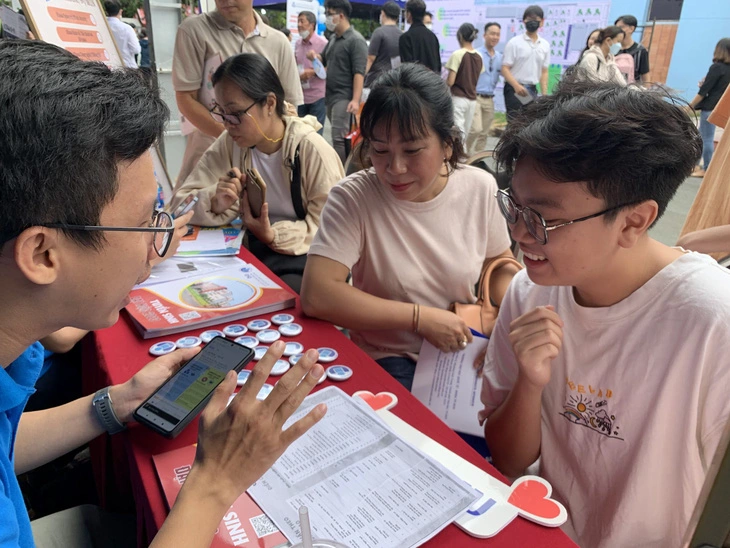 Thí sinh tìm hiểu thông tin đăng ký xét tuyển tại Ngày hội lựa chọn nguyện vọng xét tuyển 2023 do báo Tuổi Trẻ tổ chức - Ảnh: TRẦN HUỲNH