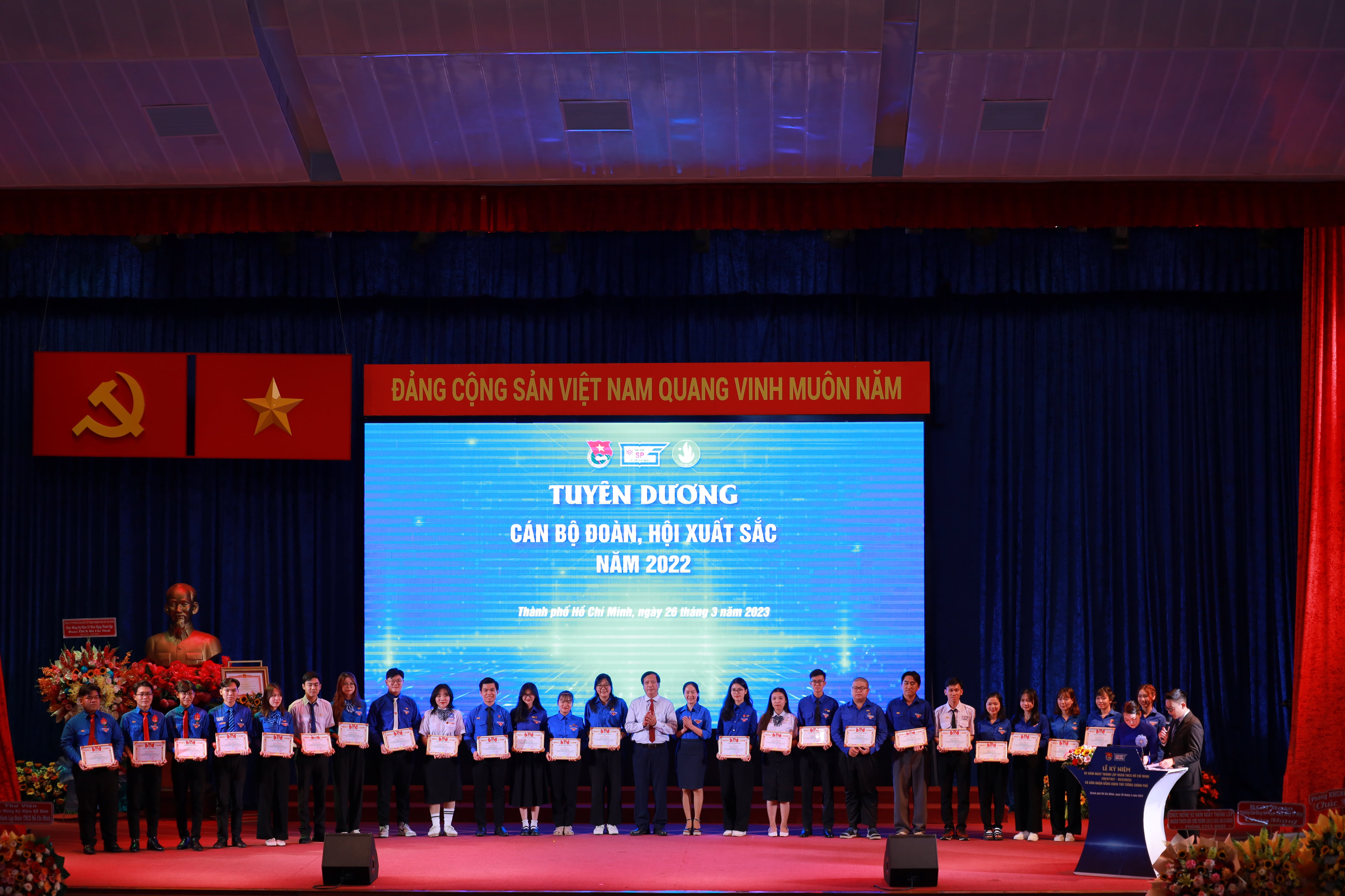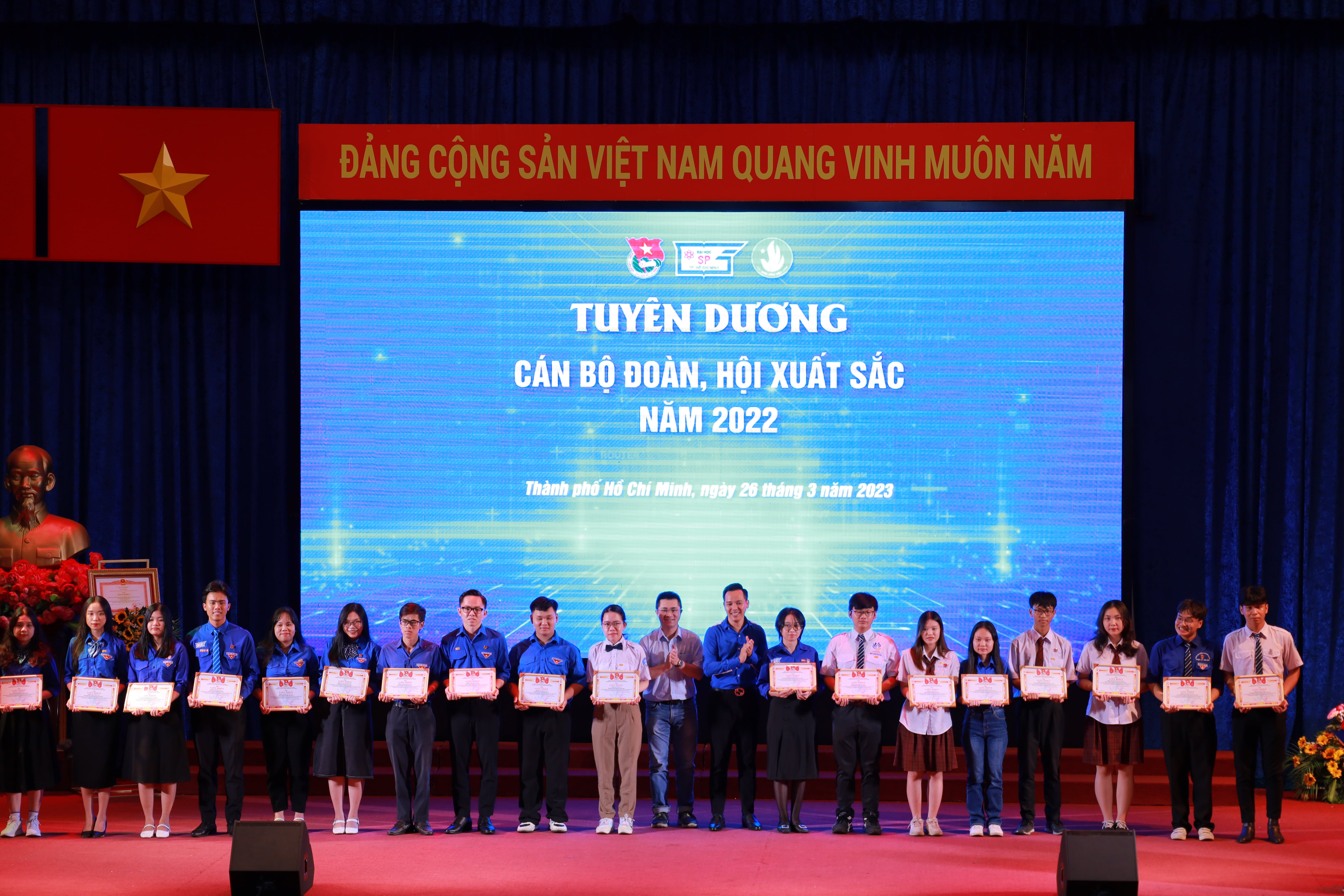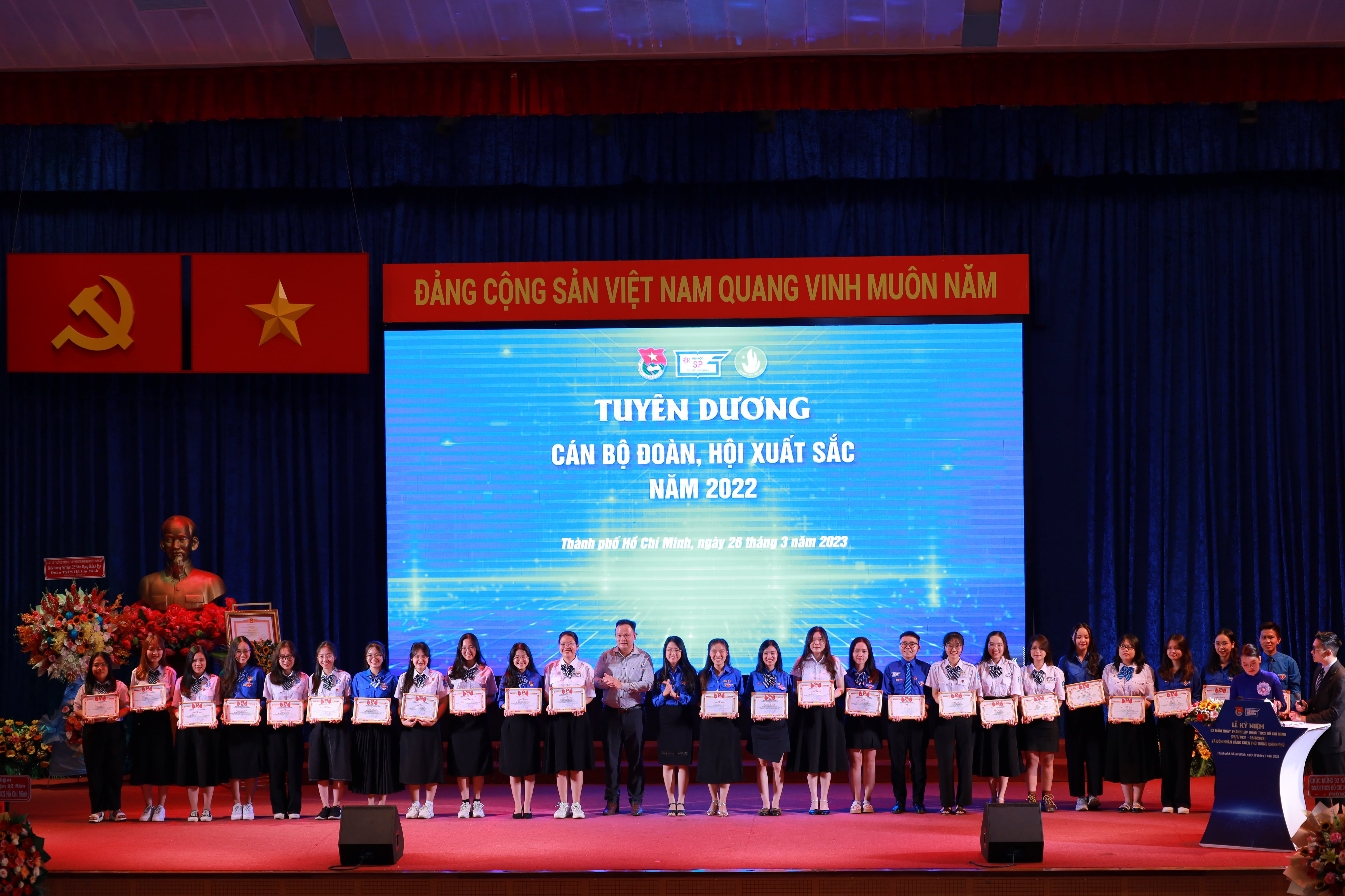 Cũng trong chương trình, Ban Thường vụ Đoàn Trường cũng đã tiến hành trao 31 suất học bổng “Tiếp lửa” cho cán bộ Đoàn có hoàn cảnh khó khăn, vươn lên trong học tập (mỗi suất học bổng trị giá 2.000.000đ); tuyên dương 208 cá nhân đạt danh hiệu “Cán bộ Đoàn Hội xuất sắc” năm 2022 và tuyên dương 28 cá nhân ở các hạng mục “Bí thư Chi đoàn”, “Chi hội trưởng”, “Liên chi Hội trưởng”, “Chủ nhiệm Câu lạc bộ - Đội - Nhóm” và “Bí thư Đoàn cơ sở” tiêu biểu năm 2022.
