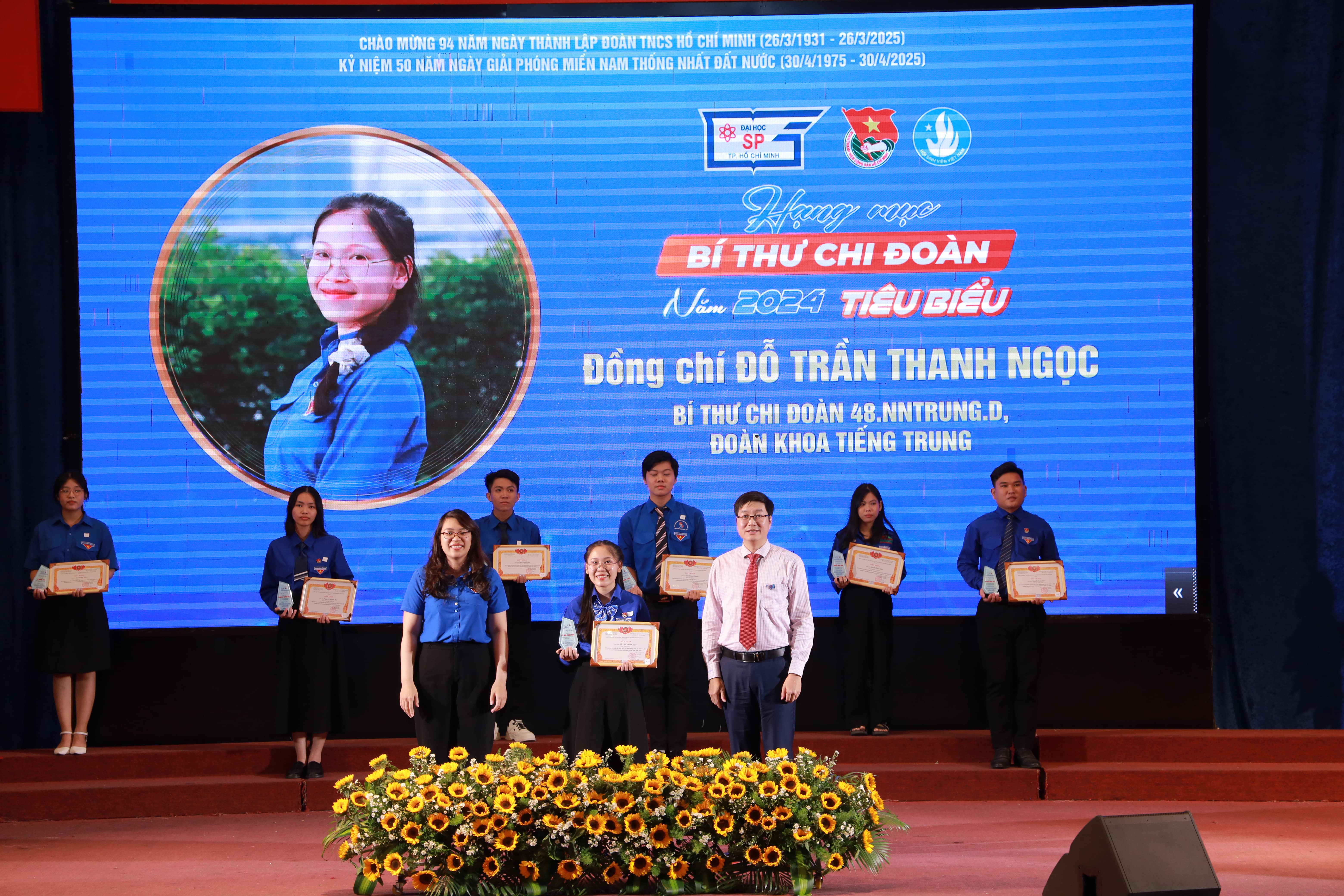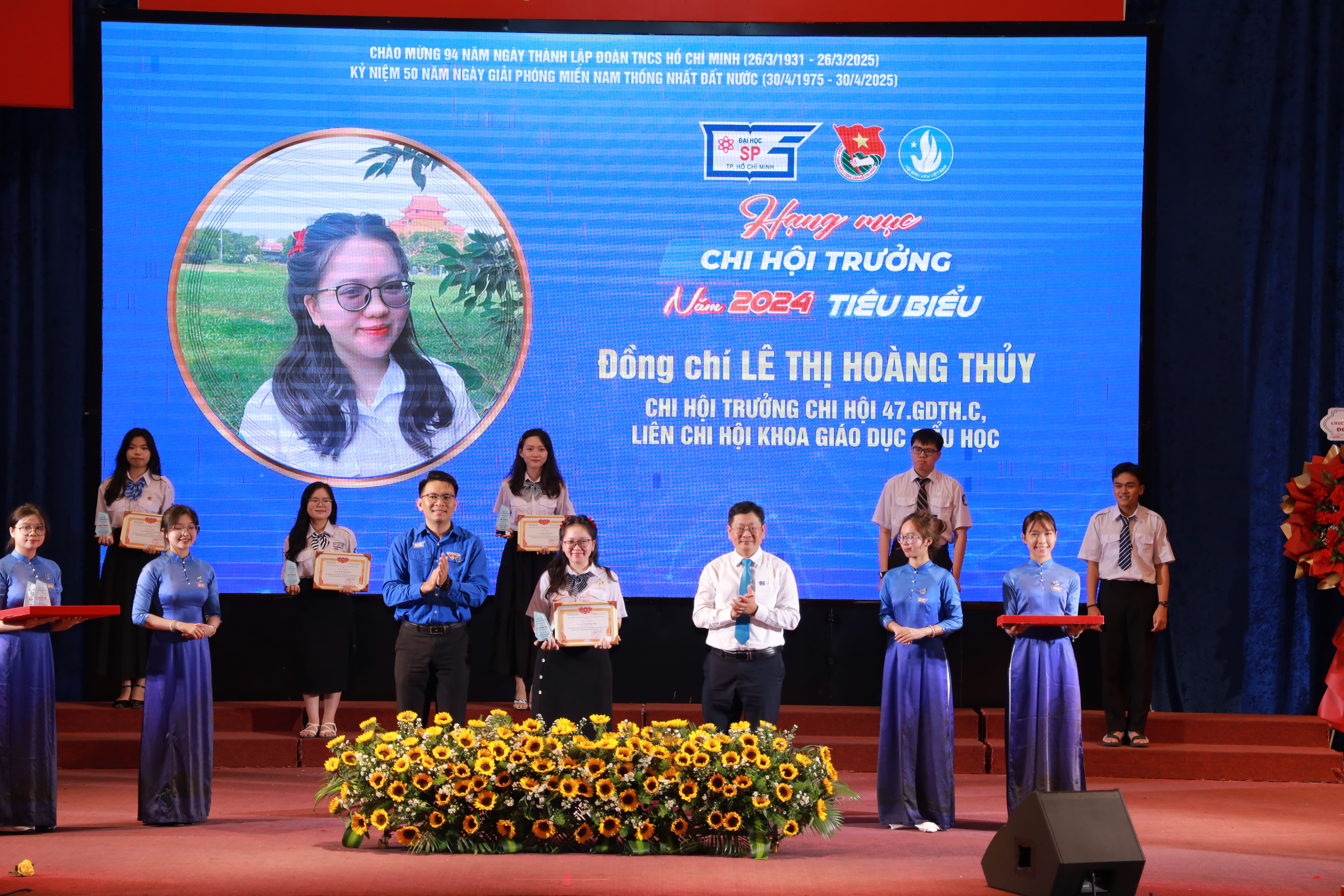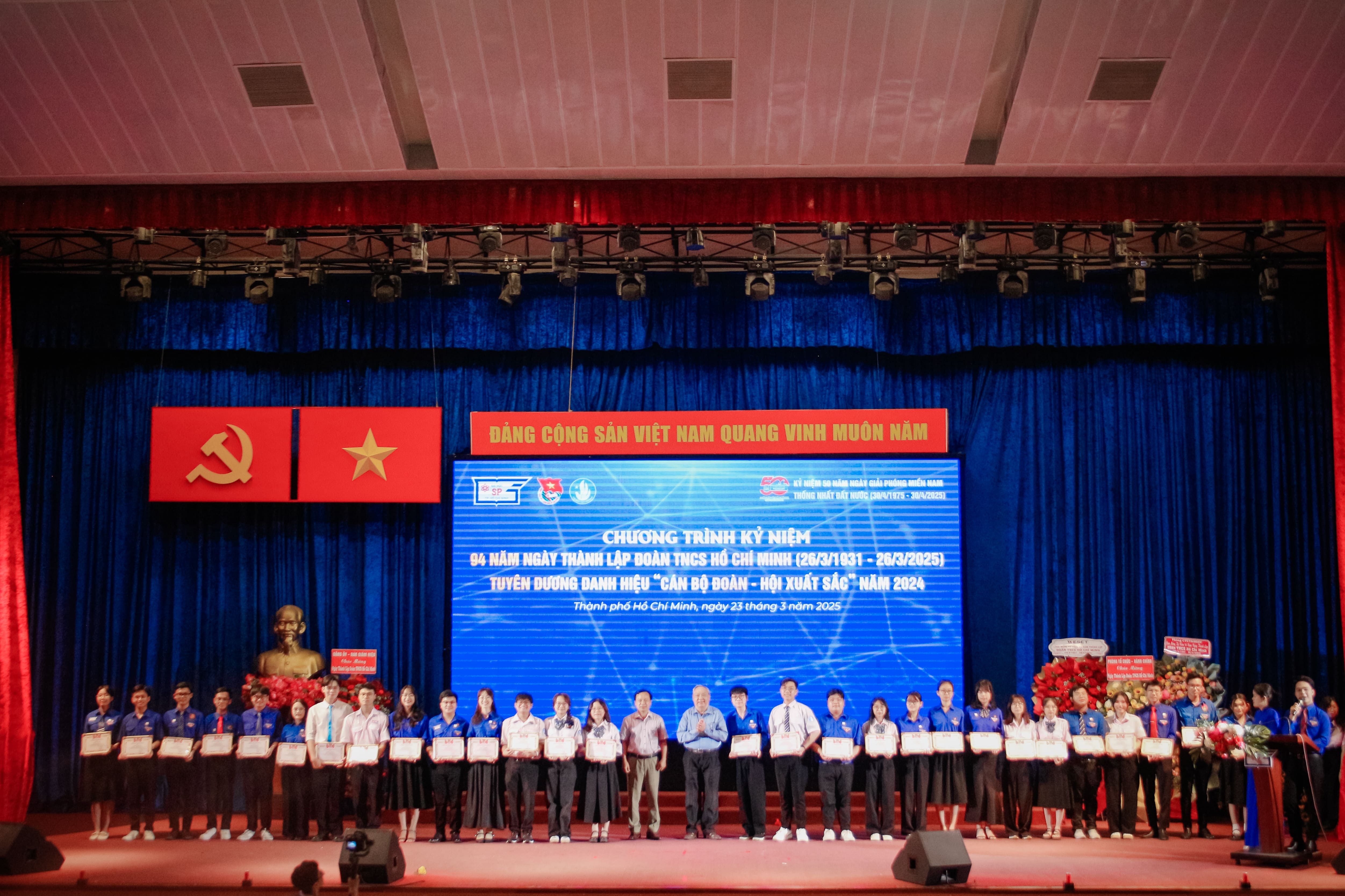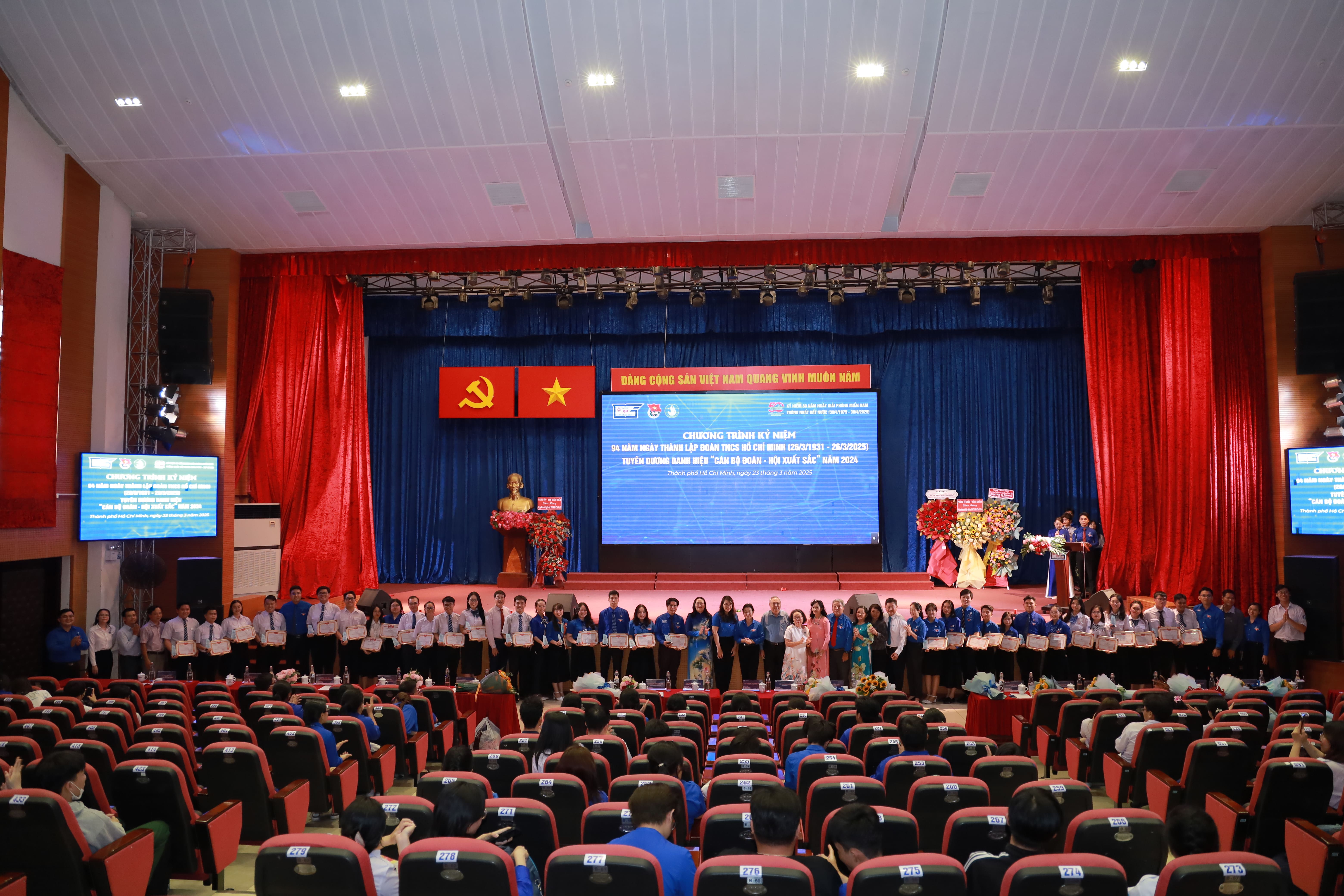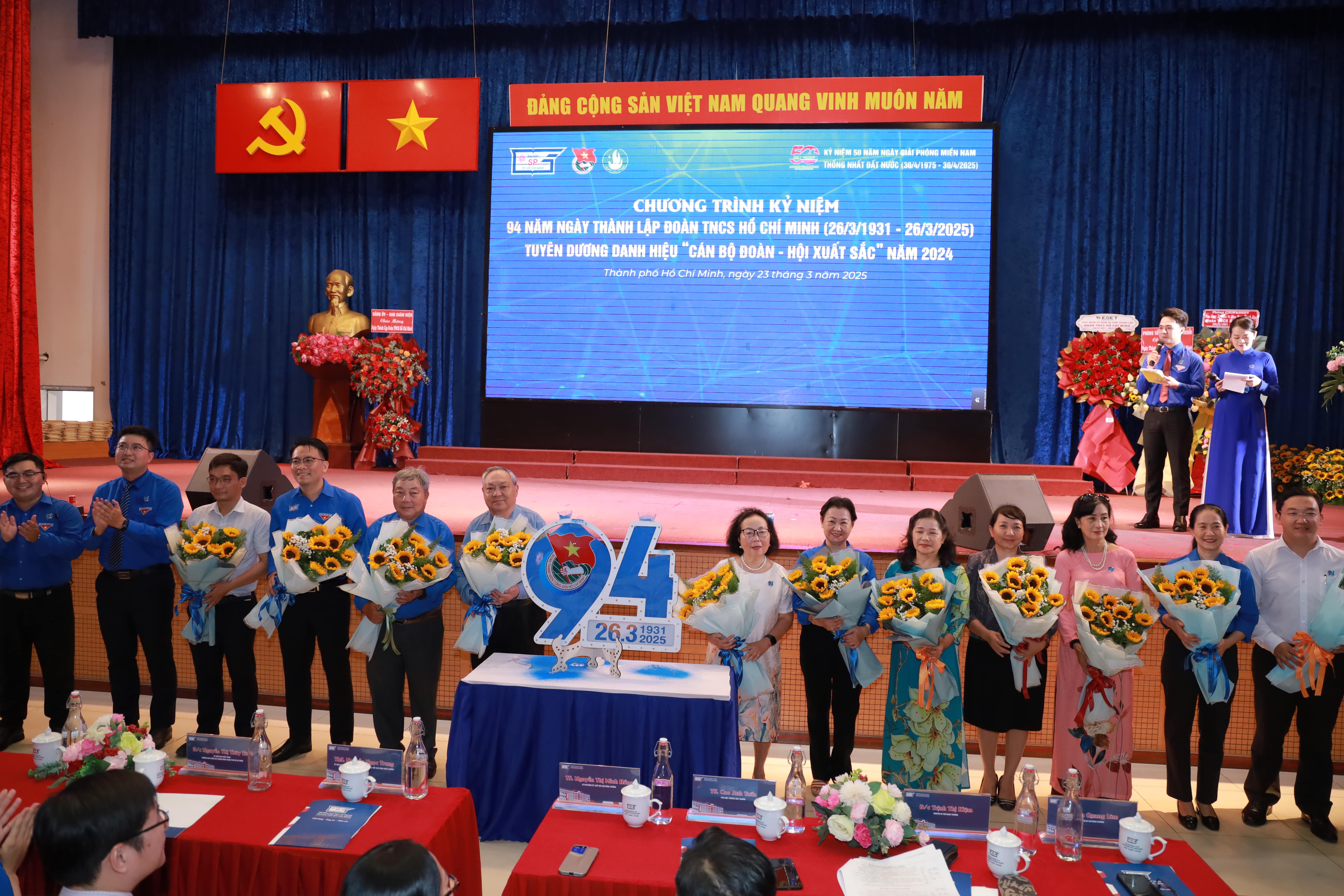 Trong không khí kỷ niệm 94 năm ngày thành lập Đoàn TNCS Hồ Chí Minh (26/3/1931 -26/3/2025), kỷ niệm 50 năm Ngày Giải phóng miền Nam, thống nhất đất nước (30/4/1975 - 30/4/2025), chào mừng Đại hội đại biểu Đảng bộ Trường Đại học Sư phạm Thành phố Hồ Chí Minh lần thứ XVI, nhiệm kỳ 2025 - 2030, chiều ngày 23/3/2025, Ban Thường vụ Đoàn Trường Đại học Sư phạm Thành phố Hồ Chí Minh đã long trọng tổ chức chương trình kỷ niệm 94 năm ngày thành lập Đoàn TNCS Hồ Chí Minh (26/3/1931 - 26/3/2025), tuyên dương Cán bộ Đoàn, Hội xuất sắc năm 2024.