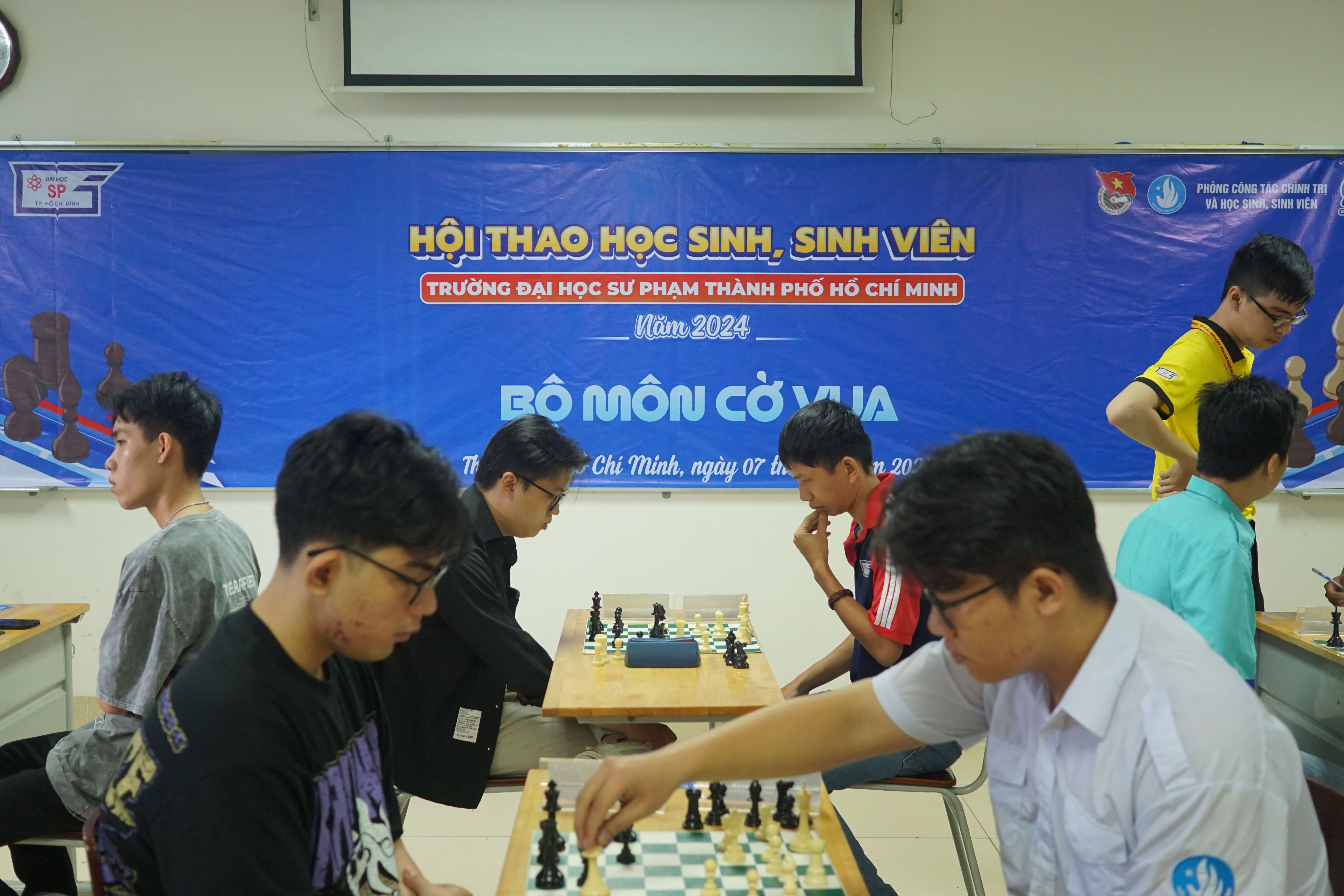 Thực hiện Kế hoạch số 49/KH-ĐHSP ngày 23/01/2024 của Hiệu trưởng Trường Đại học Sư phạm Thành phố Hồ Chí Minh về việc tổ chức Hội thao Học sinh, sinh viên năm 2024, vào sáng ngày 07/4/2024, tại cơ sở 280 An Dương Vương, gần 100 vận động viên đã tiến hành tranh tài ở bộ môn Cờ vua nhằm tìm ra những chiến binh xuất sắc nhất.