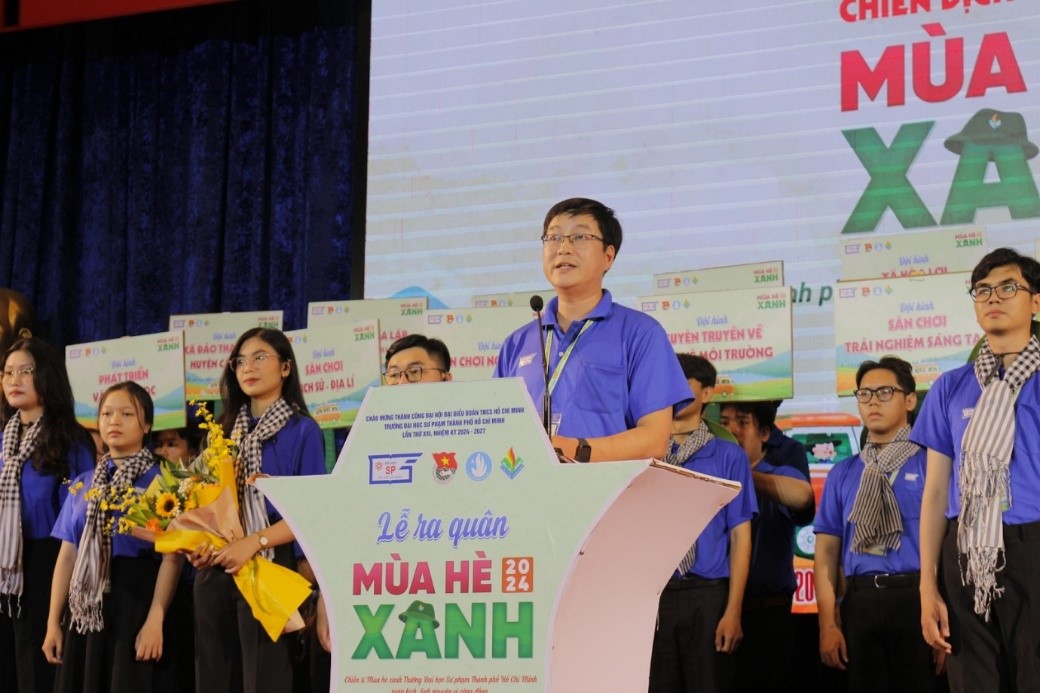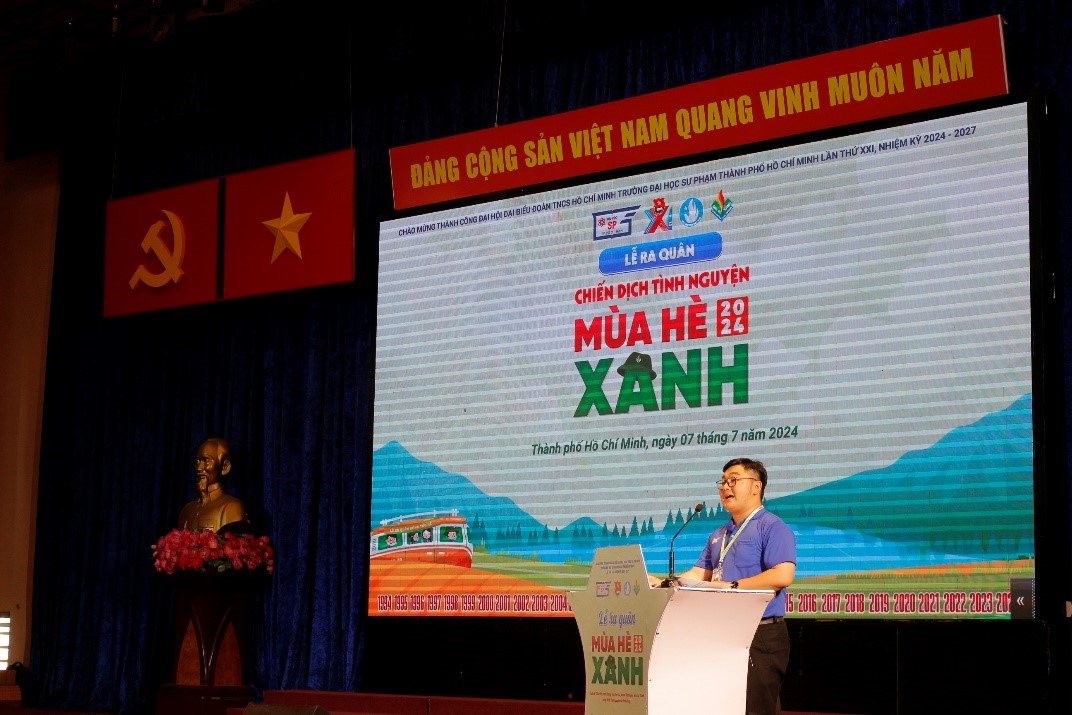 Phát biểu báo cáo công tác chuẩn bị cho chiến dịch, đồng chí Nguyễn Khánh Tùng - Phó Bí thư Đoàn trường, Chỉ huy Trưởng Chiến dịch tình nguyện Mùa hè xanh lần thứ 31 năm 2024 đã chia sẻ:“Tới thời điểm này, với sự chuẩn bị chu đáo, với tinh thần nhiệt huyết tràn đầy, sức trẻ tình nguyện trường Đại học Sư phạm Thành phố Hồ Chí Minh tự tin sẽ tiếp tục phát huy và viết tiếp những thành công cho màu áo xanh tình nguyện với tinh thần “Ở dân thương, làm dân tin, đi dân nhớ”, “Đâu cần thanh niên có, đâu khó có thanh niên”. Tuổi trẻ trường Đại học Sư phạm Thành phố Hồ Chí Minh xin hứa sẽ phát huy tinh thần xung kích, tình nguyện, hăng hái thực hiện tốt công tác, không ngại khó khăn, thử thách để hoàn thành thật tốt các mục tiêu đề ra, xứng đáng với danh hiệu cái nôi Chiến dịch Mùa hè xanh”.