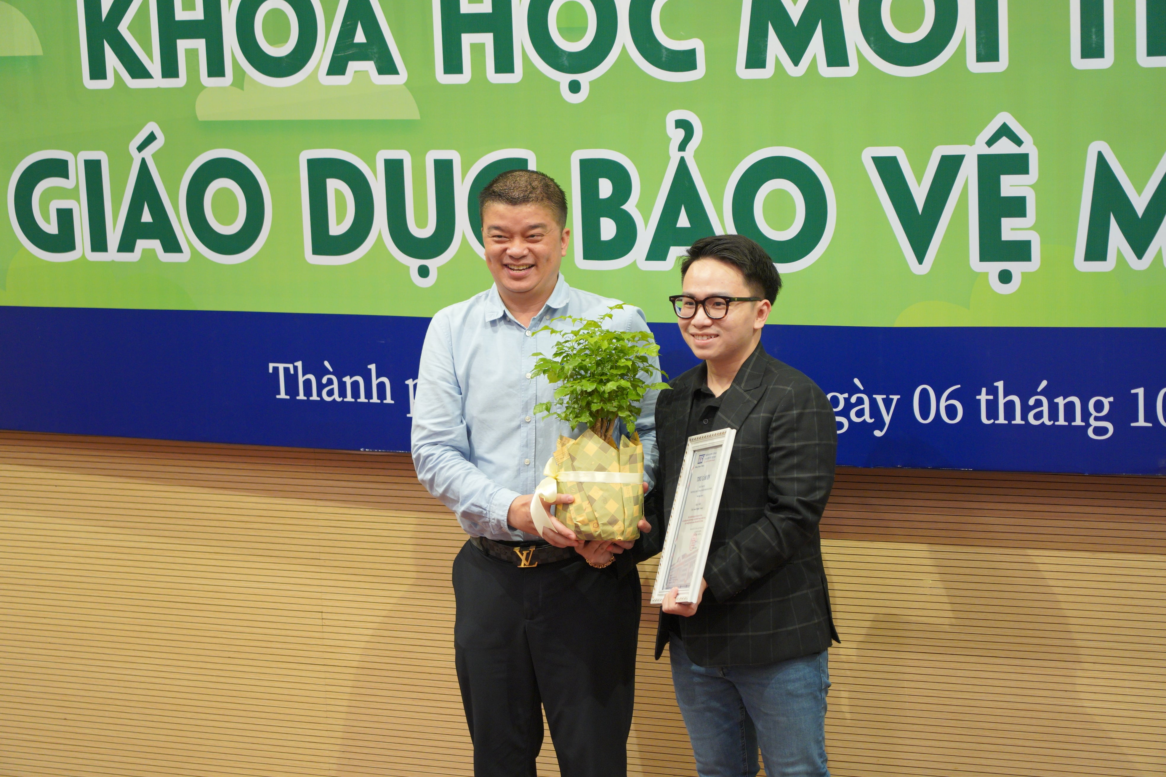 Ông Nguyễn Vĩnh Khương đại diện BTC Hội thảo lên trao thư cảm ơn cho Nhà tài trợ