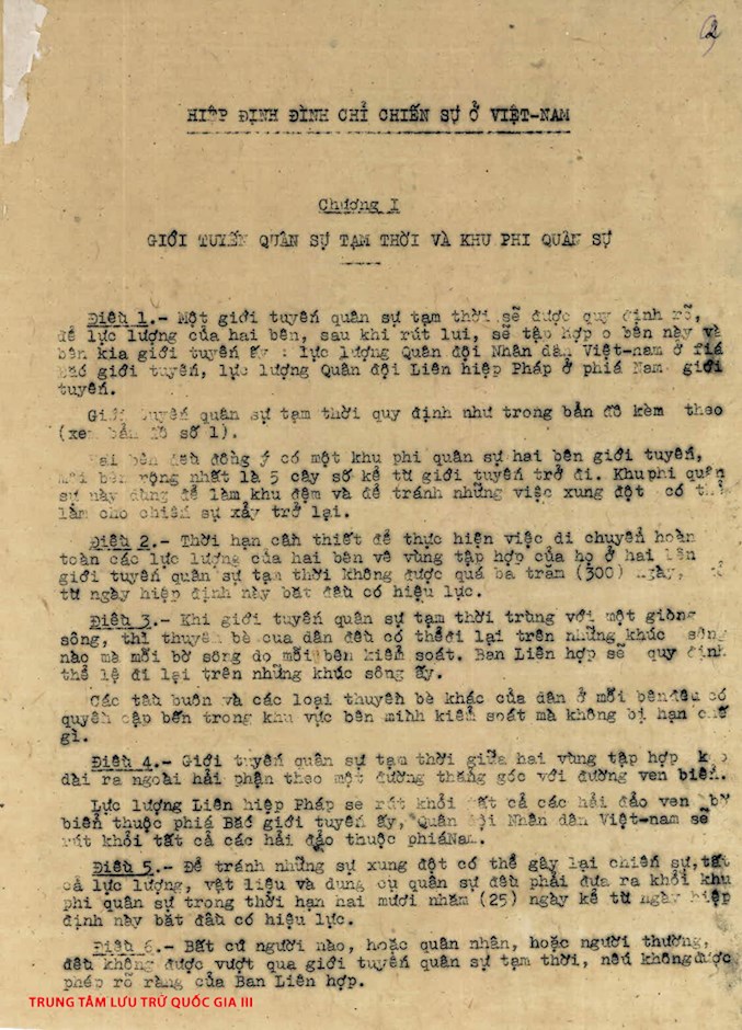 Hiệp định đình chỉ chiến sự ở Việt Nam (Nguồn ảnh: Trung tâm Lưu trữ quốc gia III).