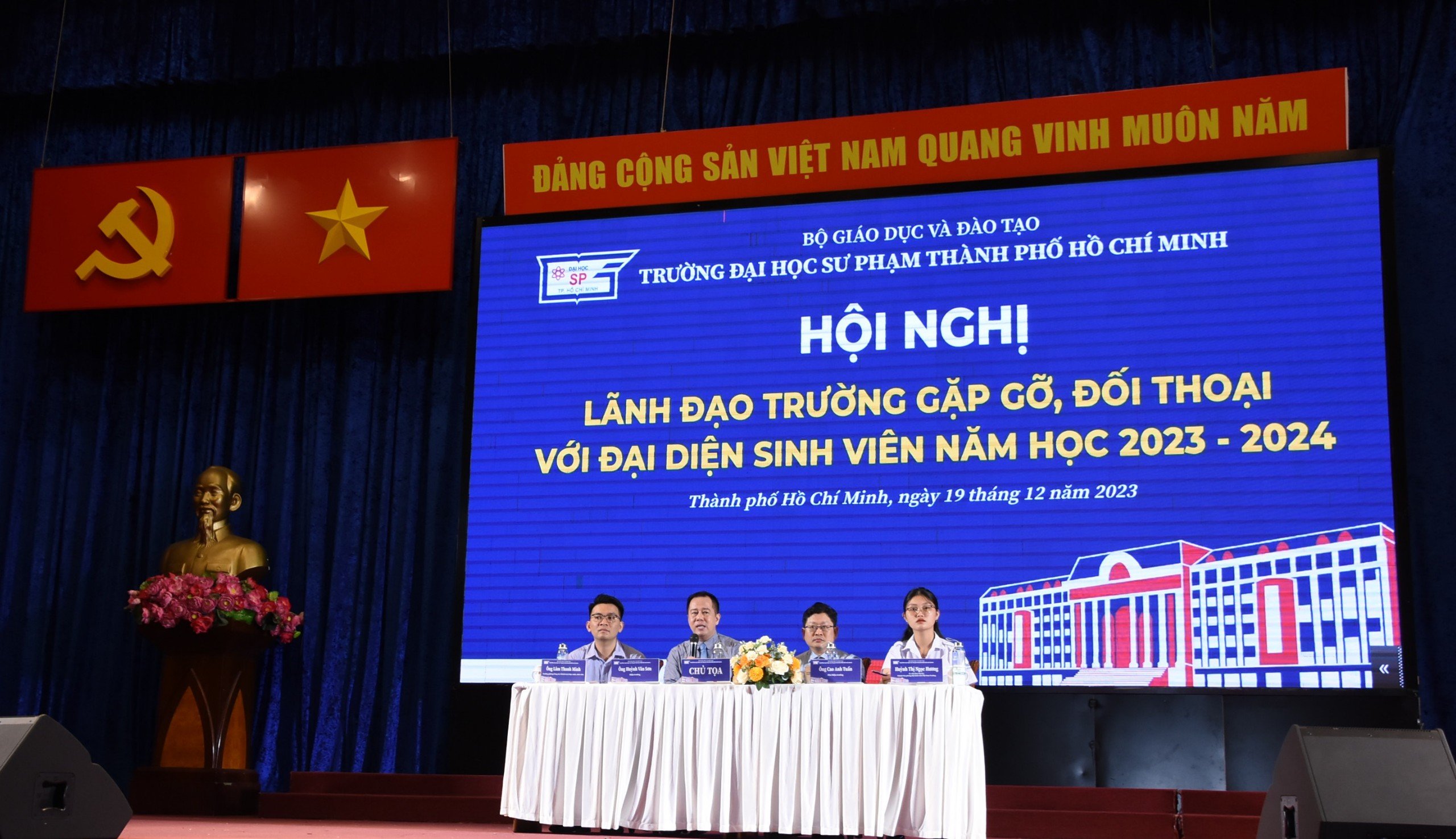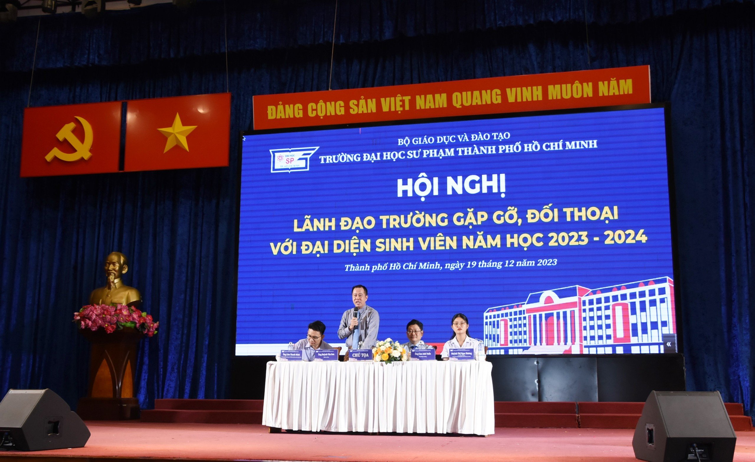 Chiều ngày 19/12/2023, Trường Đại học Sư phạm Thành phố Hồ Chí Minh đã tổ chức Hội nghị Lãnh đạo Trường gặp gỡ, đối thoại với đại diện sinh viên năm học 2023 - 2024.