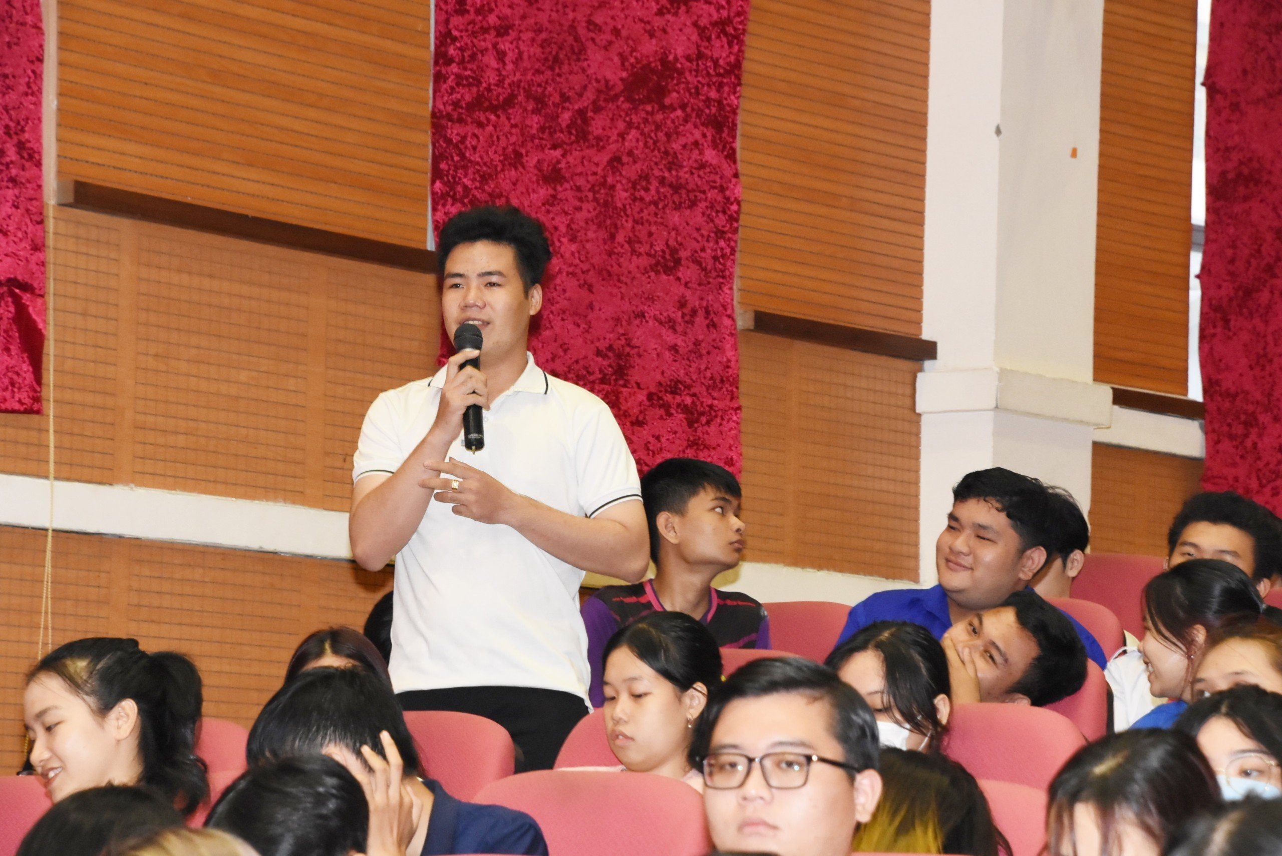 Phần đối thoại trực tiếp tại Hội trường, Hội nghị đã được nghe 18 ý kiến, đề xuất của sinh viên tập trung chủ yếu vào các vấn đề liên quan đến công tác quản lý, dạy và học trong trường, cơ sở vật chất phục vụ công tác dạy và học, hoạt động ngoại khóa của sinh viên, các nội dung liên quan đến chế độ chính sách đối với sinh viên khối ngành sư phạm,.... Với tinh thần nghiêm túc, cầu thị, những ý kiến, đề xuất của sinh viên đều được Lãnh đạo Nhà trường và các đơn vị có liên quan đã trao đổi, giải đáp một cách cởi mở, chân tình và thẳng thắn.