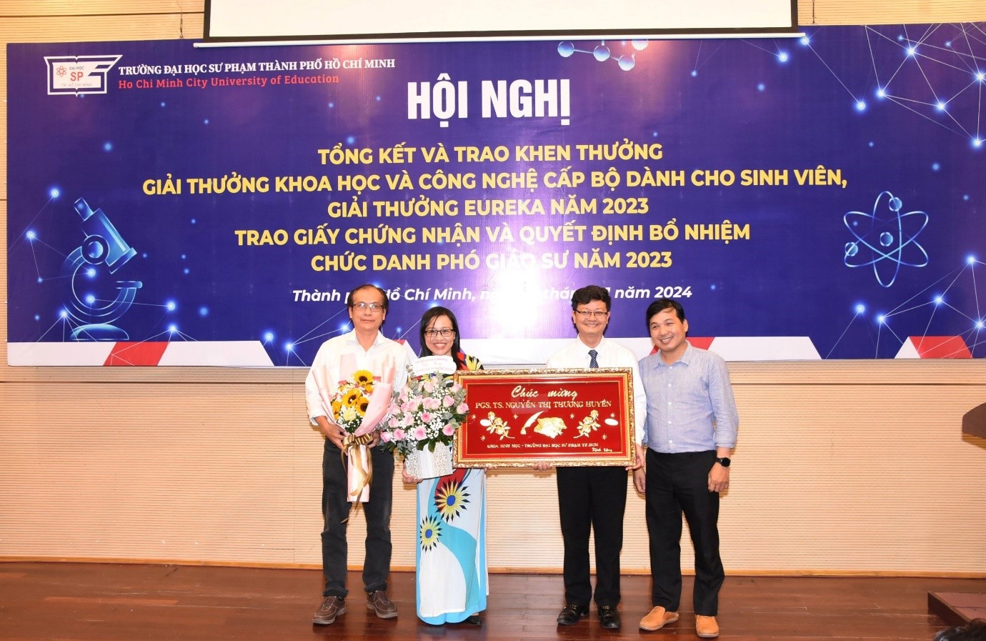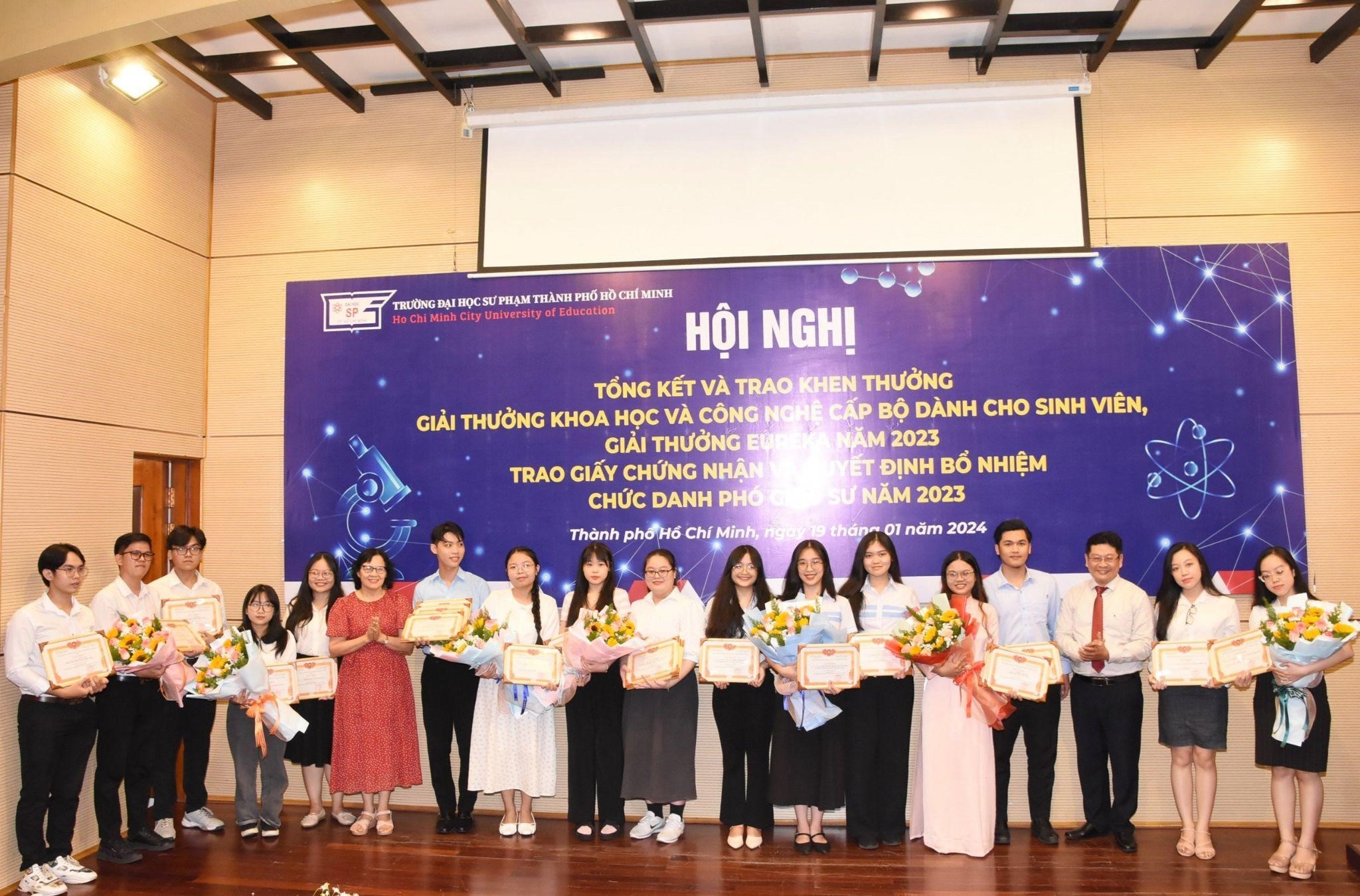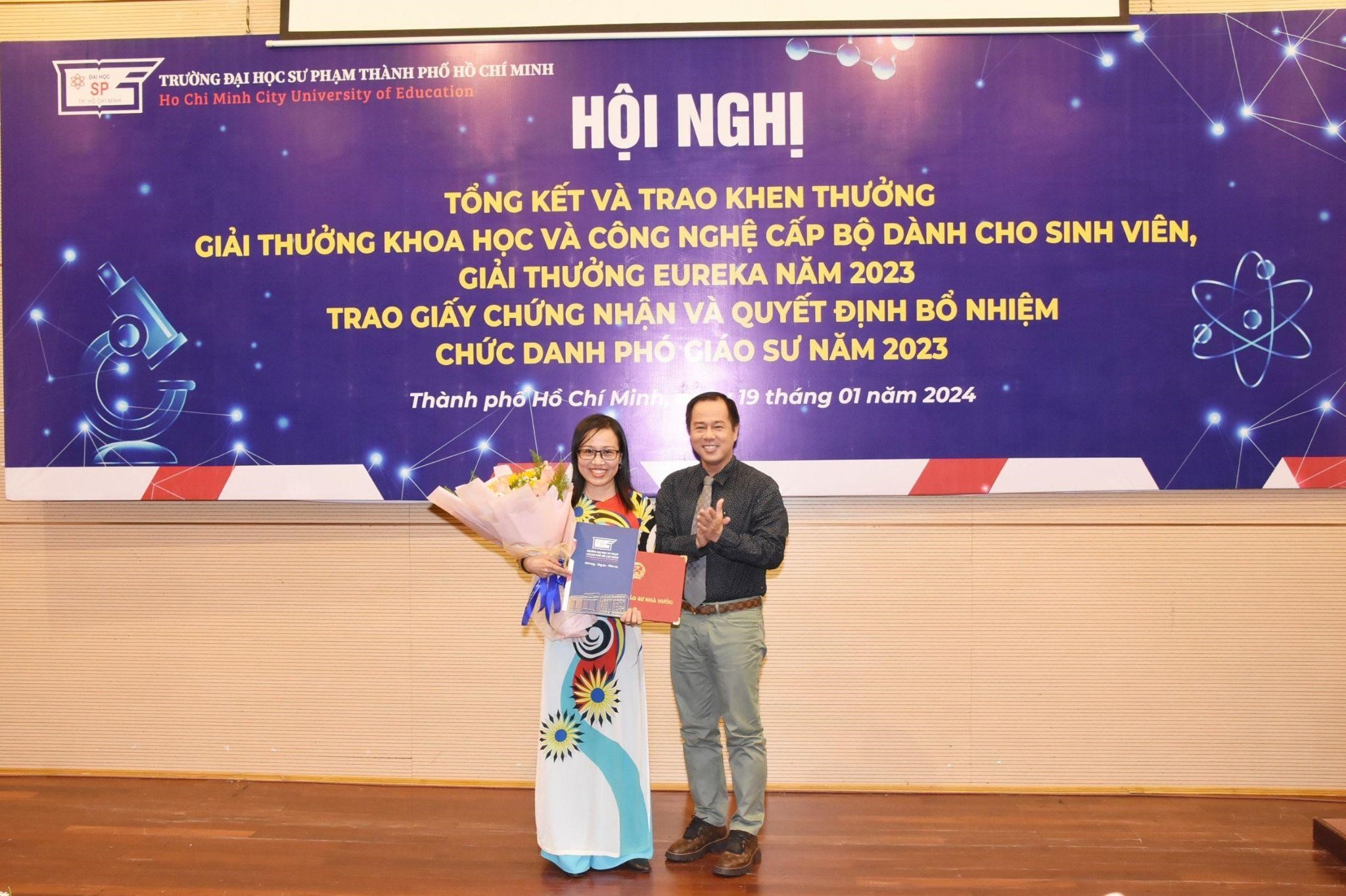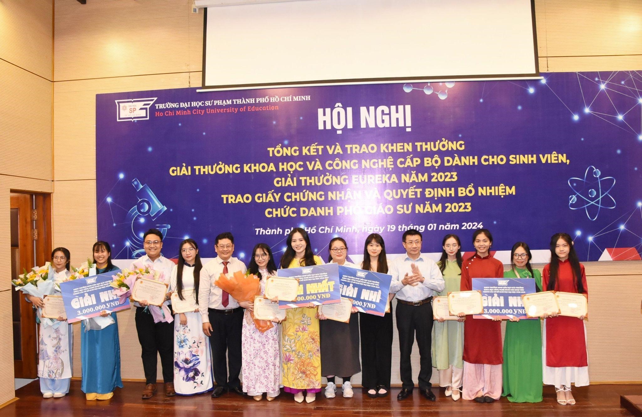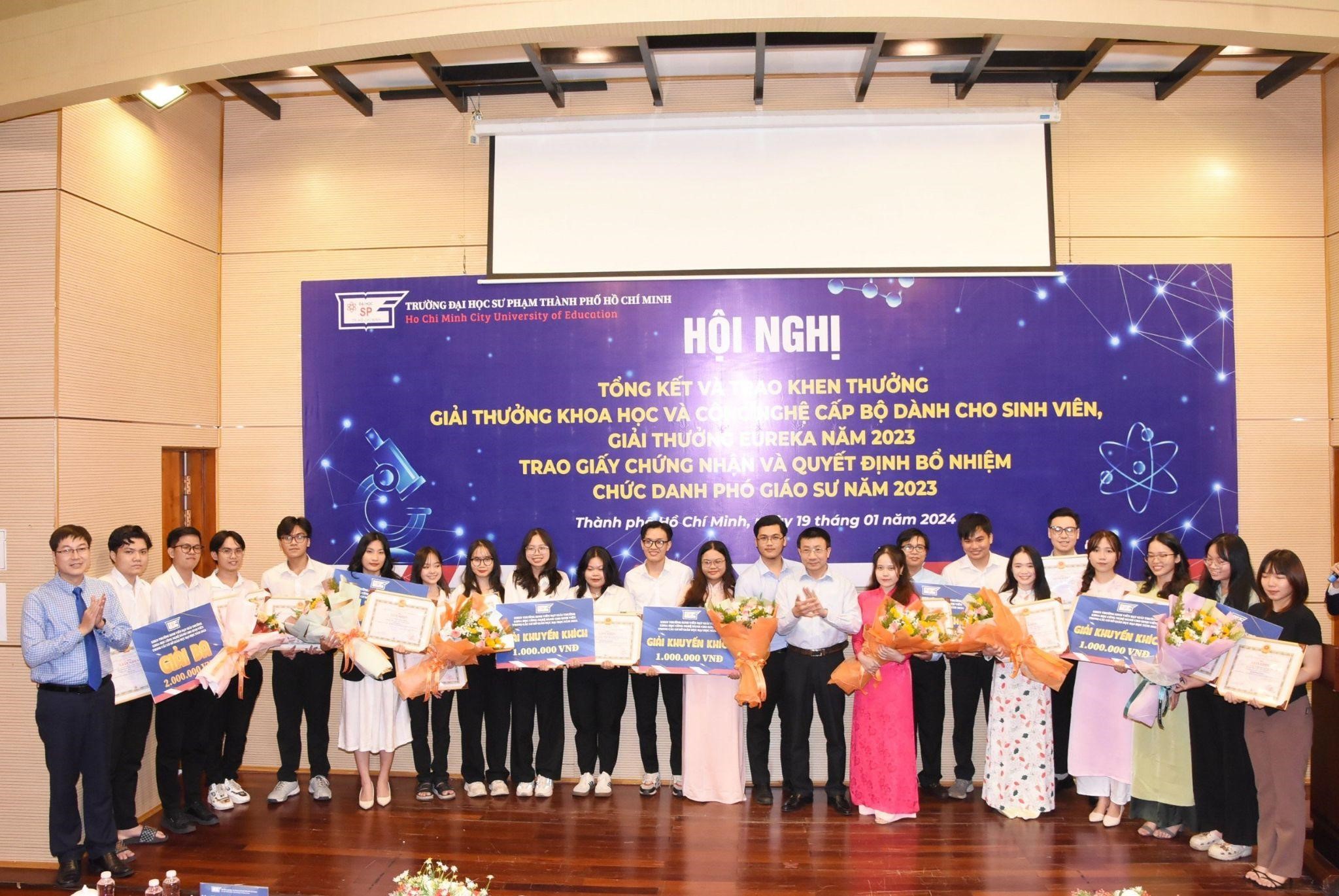 Với mong muốn công nhận học hàm cao quý sau những nỗ lực không ngừng nghỉ của các giảng viên cũng như tổng kết, tuyên dương và khen thưởng cá nhân, tập thể có thành tích xuất sắc trong hoạt động NCKH của viên chức, sinh viên, Trường Đại học Sư phạm Thành phố Hồ Chí Minh đã tổ chức “Hội nghị tổng kết và trao Giải thưởng Khoa học và Công nghệ cấp Bộ dành cho sinh viên, Giải thưởng Euréka năm 2023, Trao Giấy chứng nhận và Quyết định bổ nhiệm chức danh Phó Giáo sư năm 2023” vào chiều ngày 19/01/2024.