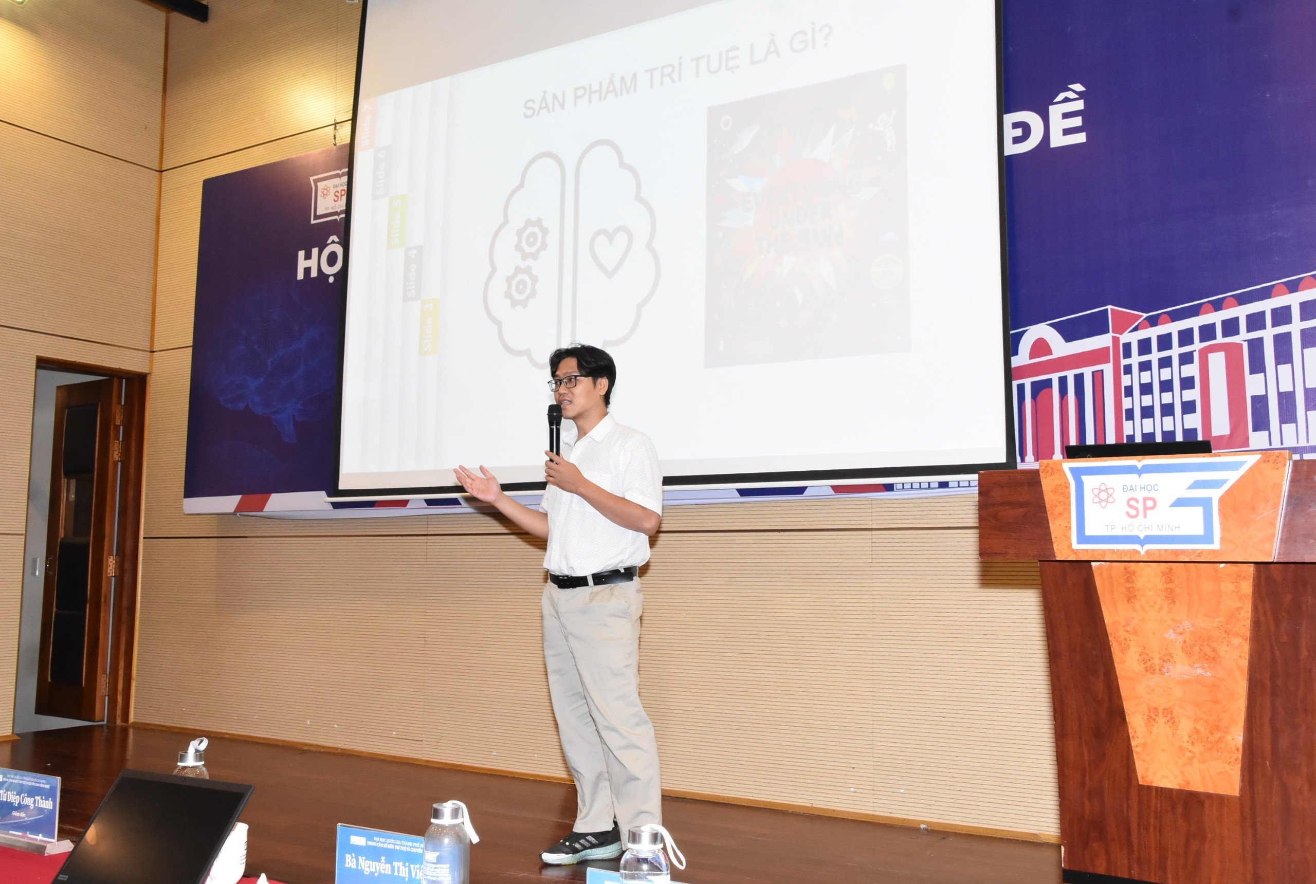 Đại diện Trung tâm Sở hữu Trí tuệ và Chuyển giao Công nghệ Đại học Quốc gia Thành phố Hồ Chí Minh trình bày chuyên đề "Sở hữu trí tuệ, Khởi nghiệp và Đổi mới sáng tạo”