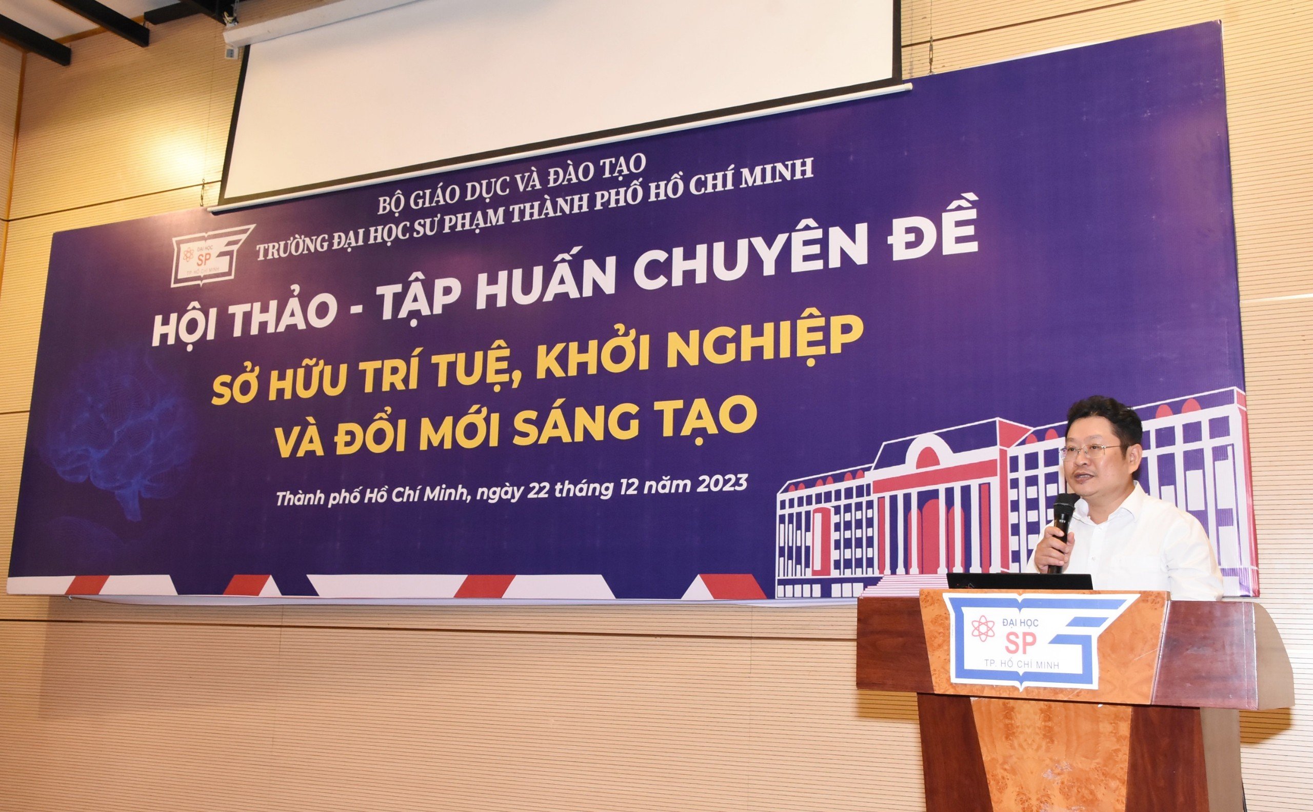 Nhằm nâng cao nhận thức về vai trò của sở hữu trí tuệ trong hoạt động khởi nghiệp sáng tạo, sáng này 22/12/2023, Trường Đại học Sư phạm Thành phố Hồ Chí Minh phối hợp Trung tâm Sở hữu Trí tuệ và Chuyển giao Công nghệ Đại học Quốc gia Thành phố Hồ Chí Minh tổ chức Hội thảo - Tập huấn chuyên đề về "Sở hữu trí tuệ, Khởi nghiệp và Đổi mới sáng tạo”. Đây là hoạt động chào mừng, hưởng ứng sau Lễ ký kết thỏa thuận hợp tác giữa Trường Đại học Sư phạm Thành phố Hồ Chí Minh với Trung tâm Sở hữu Trí tuệ và Chuyển giao Công nghệ Đại học Quốc gia Thành phố Hồ Chí Minh.
