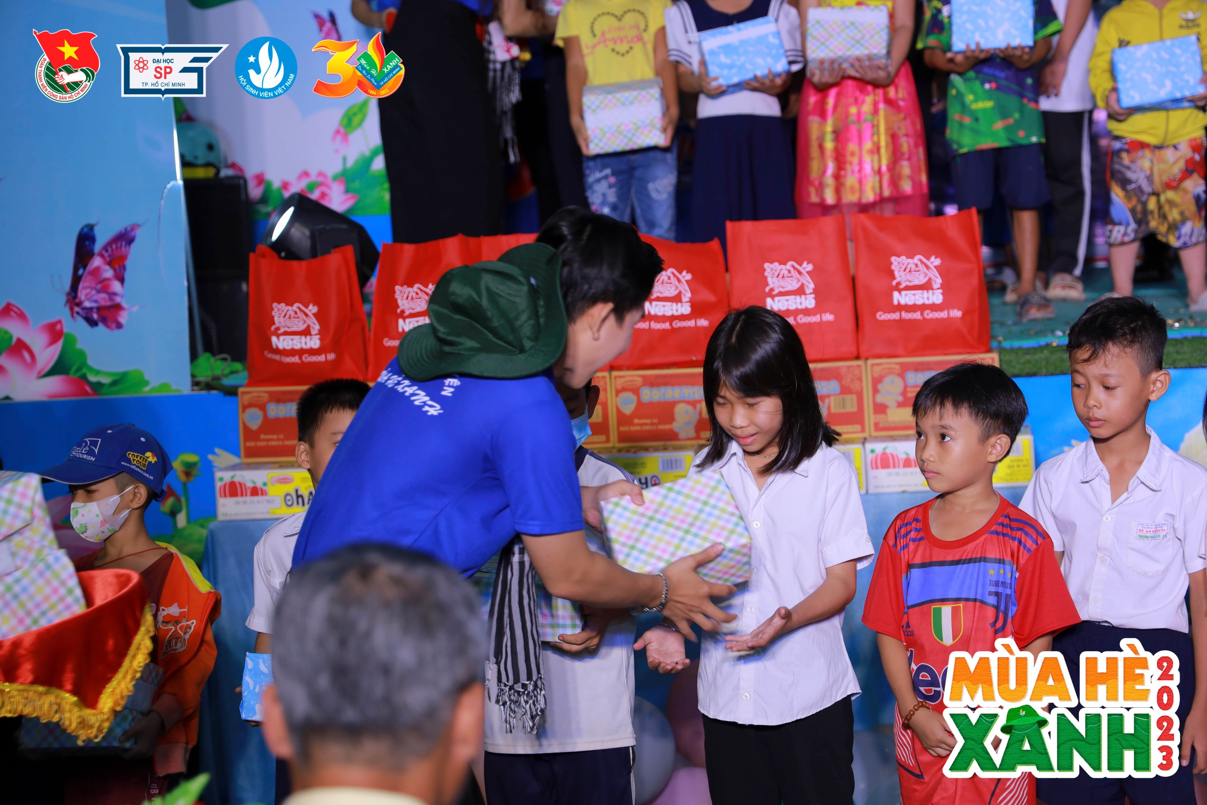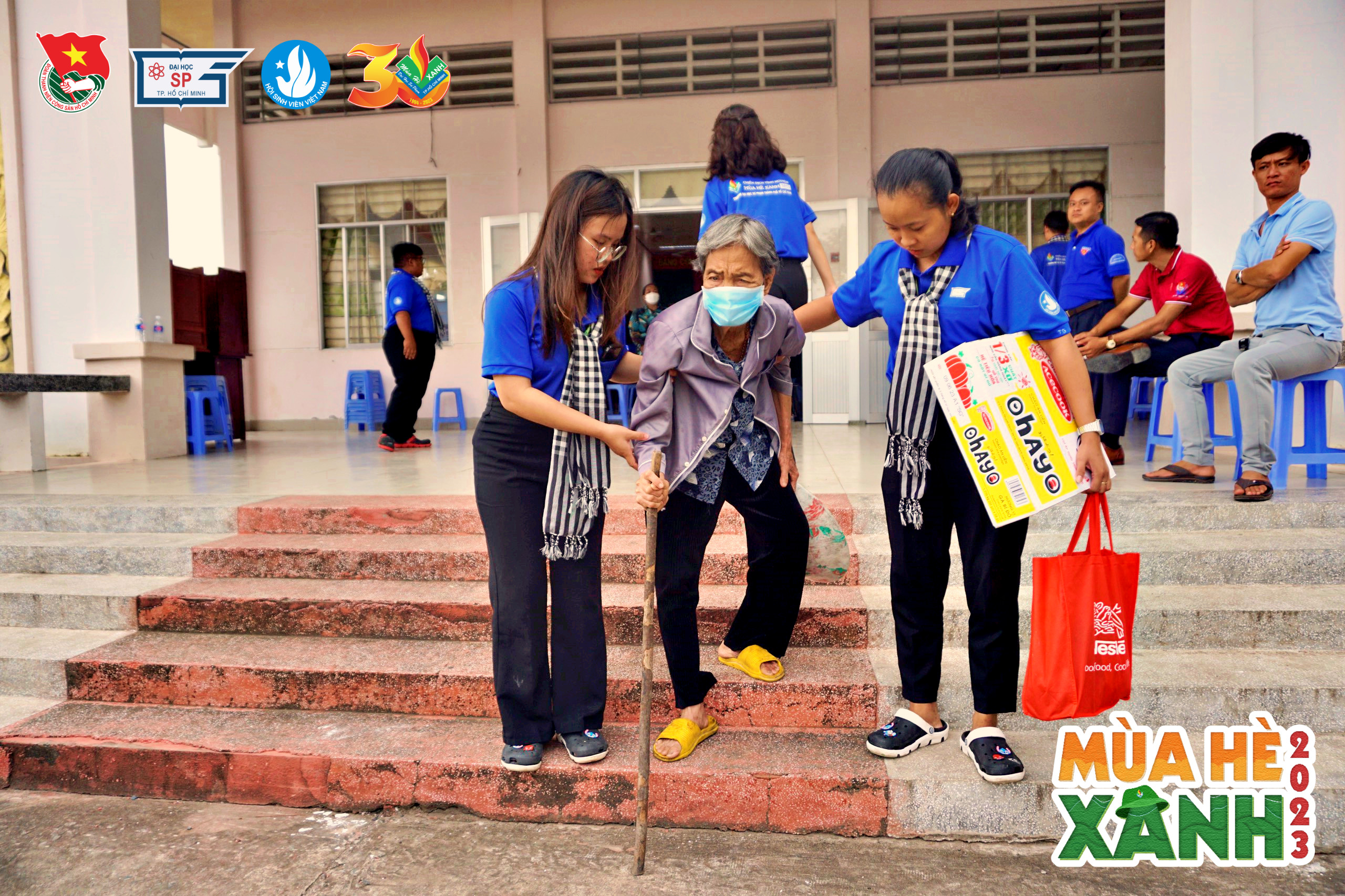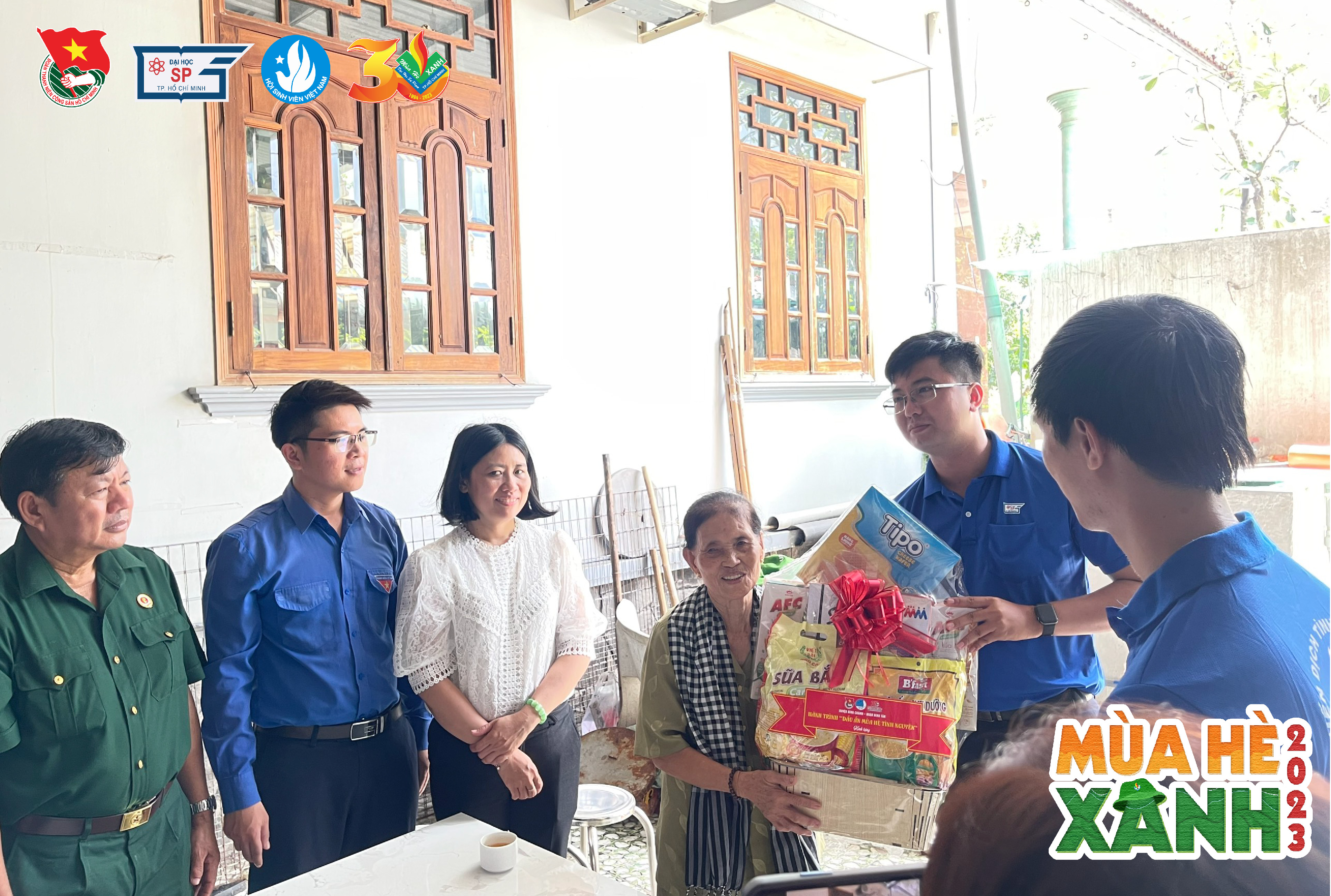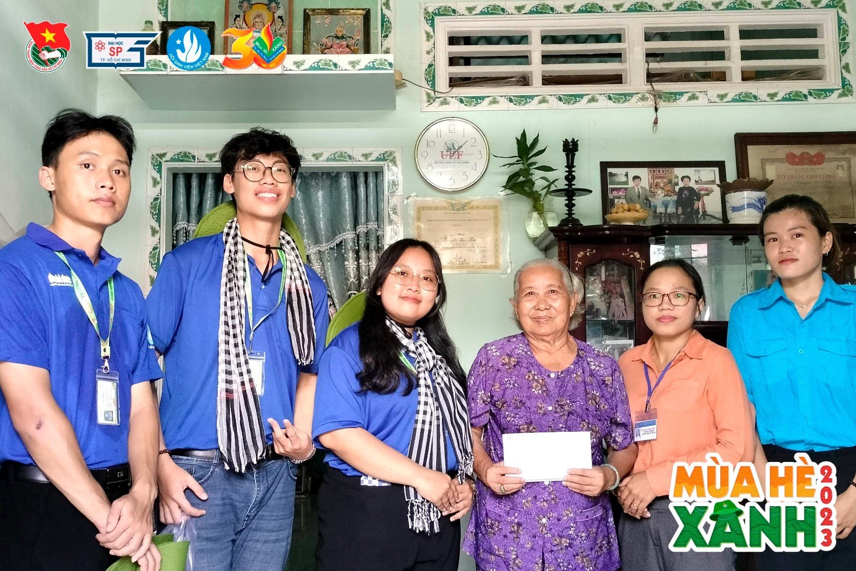 Cũng nhân dịp này, Ban Chỉ huy Chiến dịch đã phối hợp cùng với Quận Đoàn 5 để trao tặng 15 phần quà đến các gia đình chính sách trên địa bàn quận. Đồng thời, Đoàn trường cũng đã đến thăm và trao tặng 02 phần quà cho Mẹ Việt Nam anh hùng tại huyện Bình Chánh.