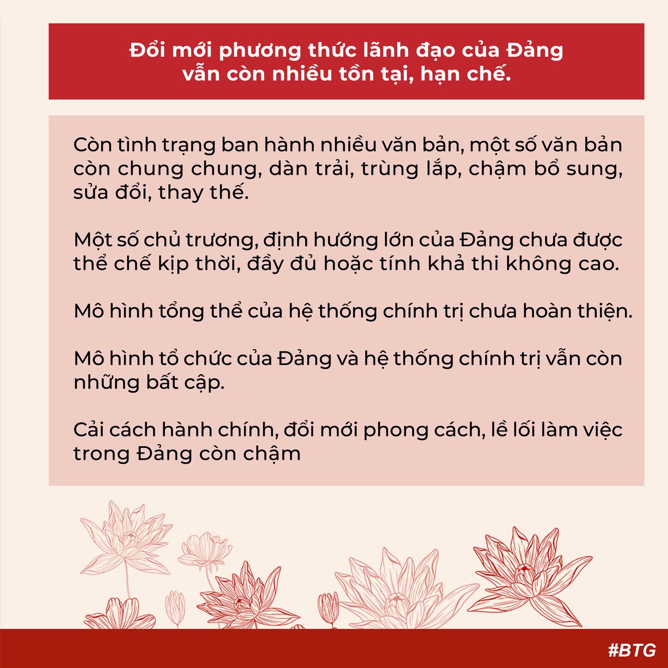 INFOGRAPHIC: “Tiếp tục đổi mới mạnh mẽ phương thức lãnh đạo, cầm quyền của Đảng, yêu cầu cấp bách của giai đoạn cách mạng mới”
