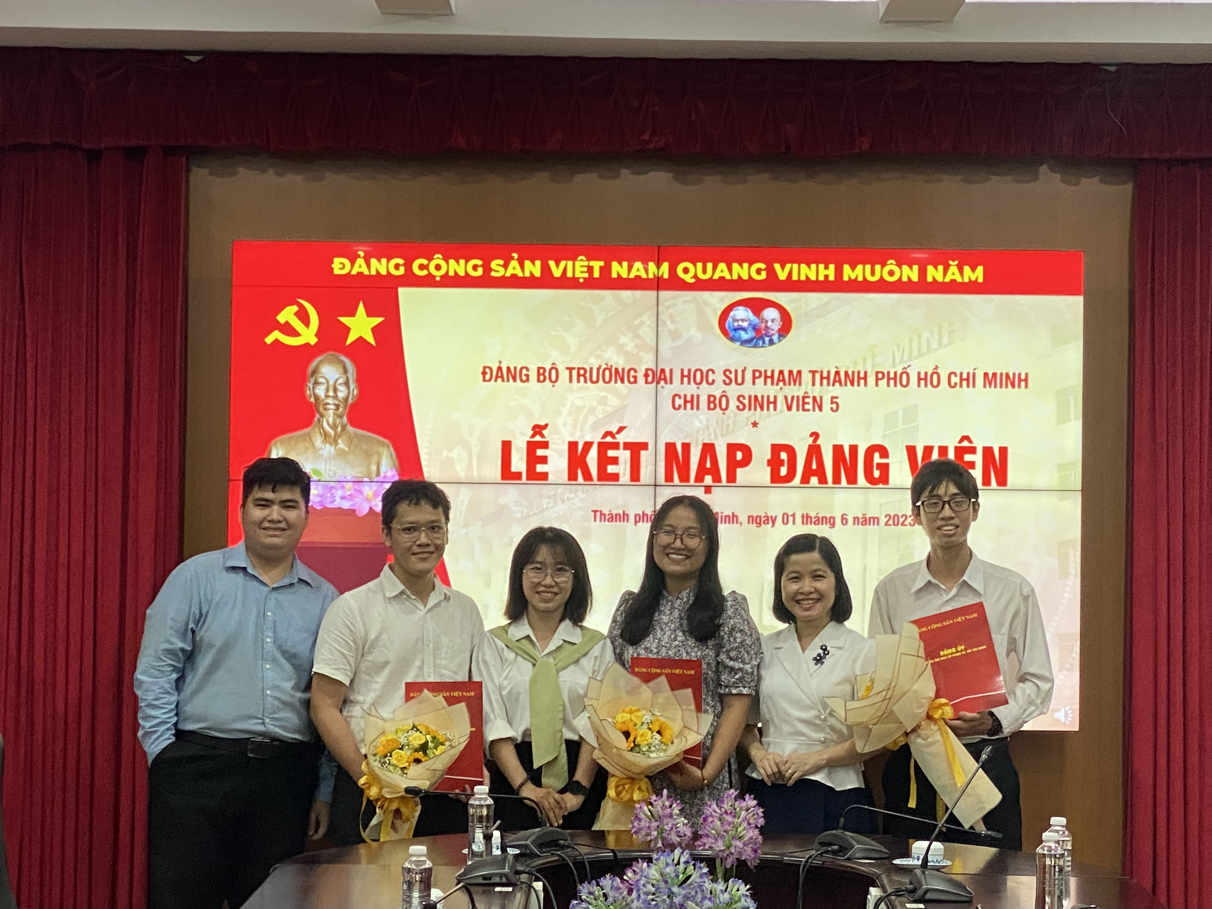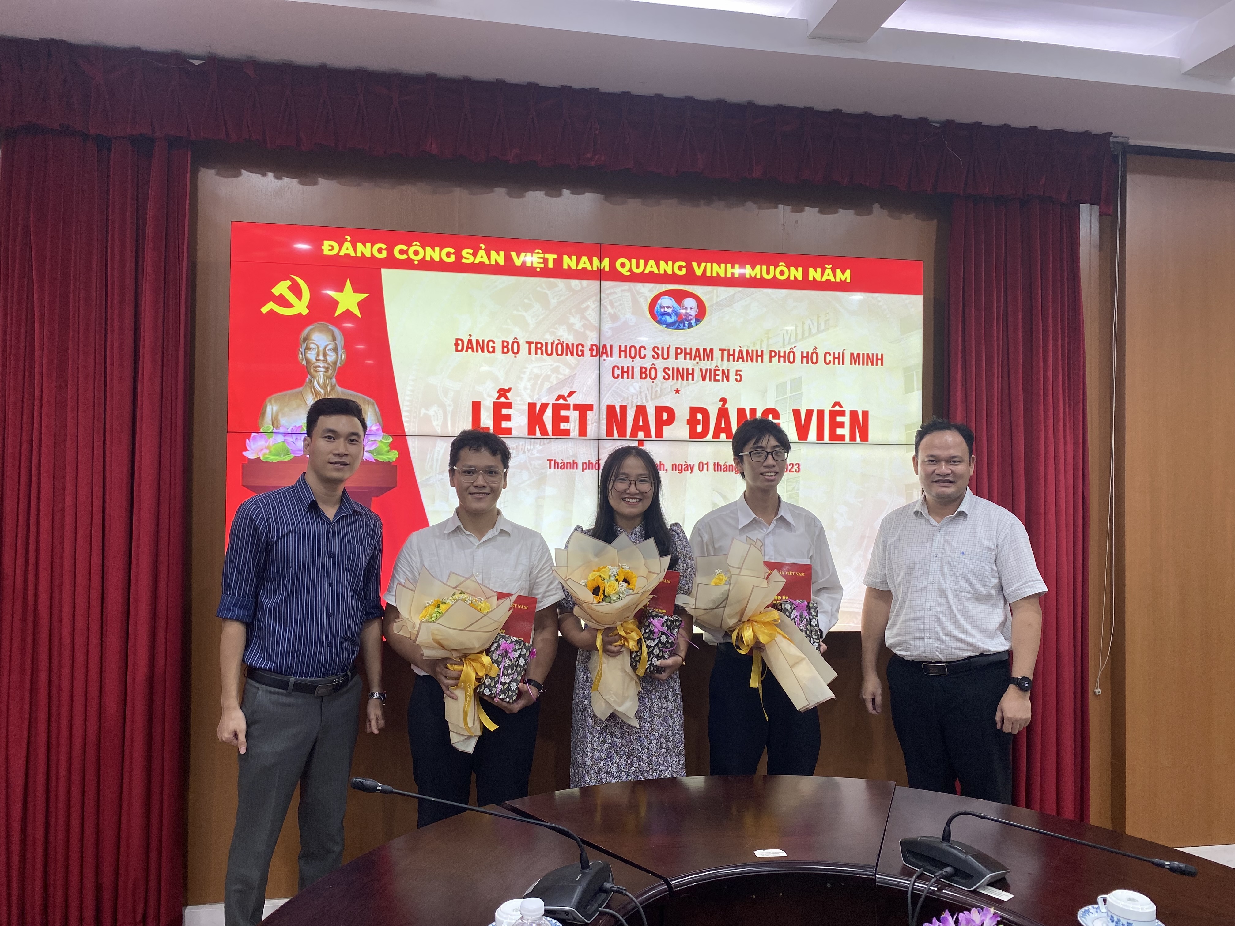 Hòa trong không khí tuổi trẻ cả nước hân hoan chào mừng kỷ niệm 112 năm Ngày Bác Hồ ra đi tìm đường cứu nước (05/6/1911 – 05/6/2023), được sự đồng ý của Đảng uỷ Trường Đại học Sư phạm TP. Hồ Chí Minh, Chi bộ Sinh viên 2, 3, 5 long trọng tổ chức Lễ kết nạp các quần chúng ưu tú vào hàng ngũ Đảng Cộng sản Việt Nam.