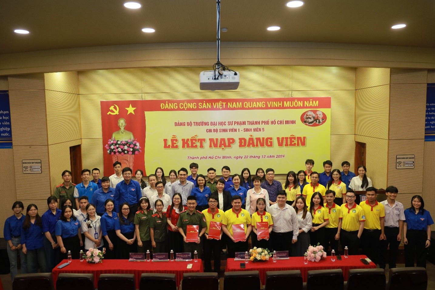 Chiều ngày 22/12/2024, nhân kỷ niệm 80 năm ngày thành lập Quân đội nhân dân Việt Nam (22/12/1944 - 22/12/2024) và 35 năm Ngày hội Quốc phòng toàn dân (22/12/1989 - 22/12/2024), Chi bộ sinh viên 1 và Chi bộ sinh viên 5 thuộc Đảng bộ Trường Đại học Sư phạm Thành phố Hồ Chí Minh đã tổ chức Lễ kết nạp đảng viên cho 04 quần chúng ưu tú là cán bộ Hội, sinh viên tiêu biểu.