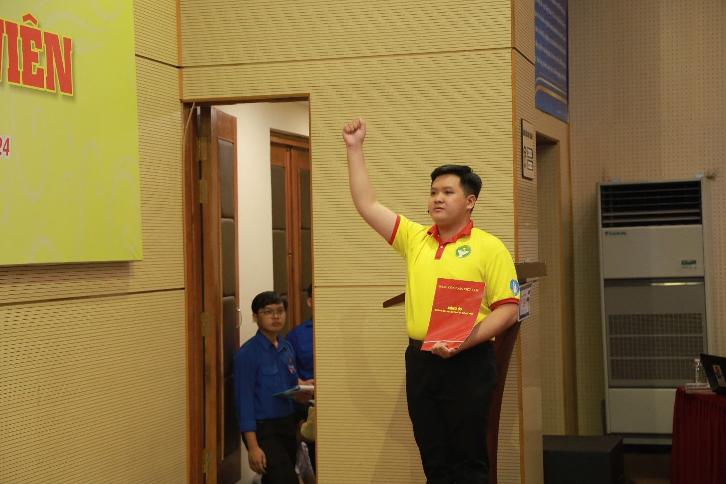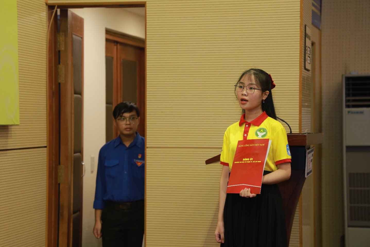 Đồng chí Trần Thu Hà, Phó Bí thư Thành Đoàn, Chủ tịch Hội Sinh viên Việt Nam Thành phố chúc mừng và phát biểu nhấn mạnh: các đồng chí Đảng viên được kết nạp hôm nay đều có quá trình trưởng thành và được rèn luyện từ môi trường thực tiễn của công tác Đoàn - Hội, đây là những hạt giống đỏ phát triển thông qua những hoạt động tình nguyện, sự cống hiến vì cộng đồng đã góp phần tôn tạo giá trị trưởng thành của từng đồng chí.