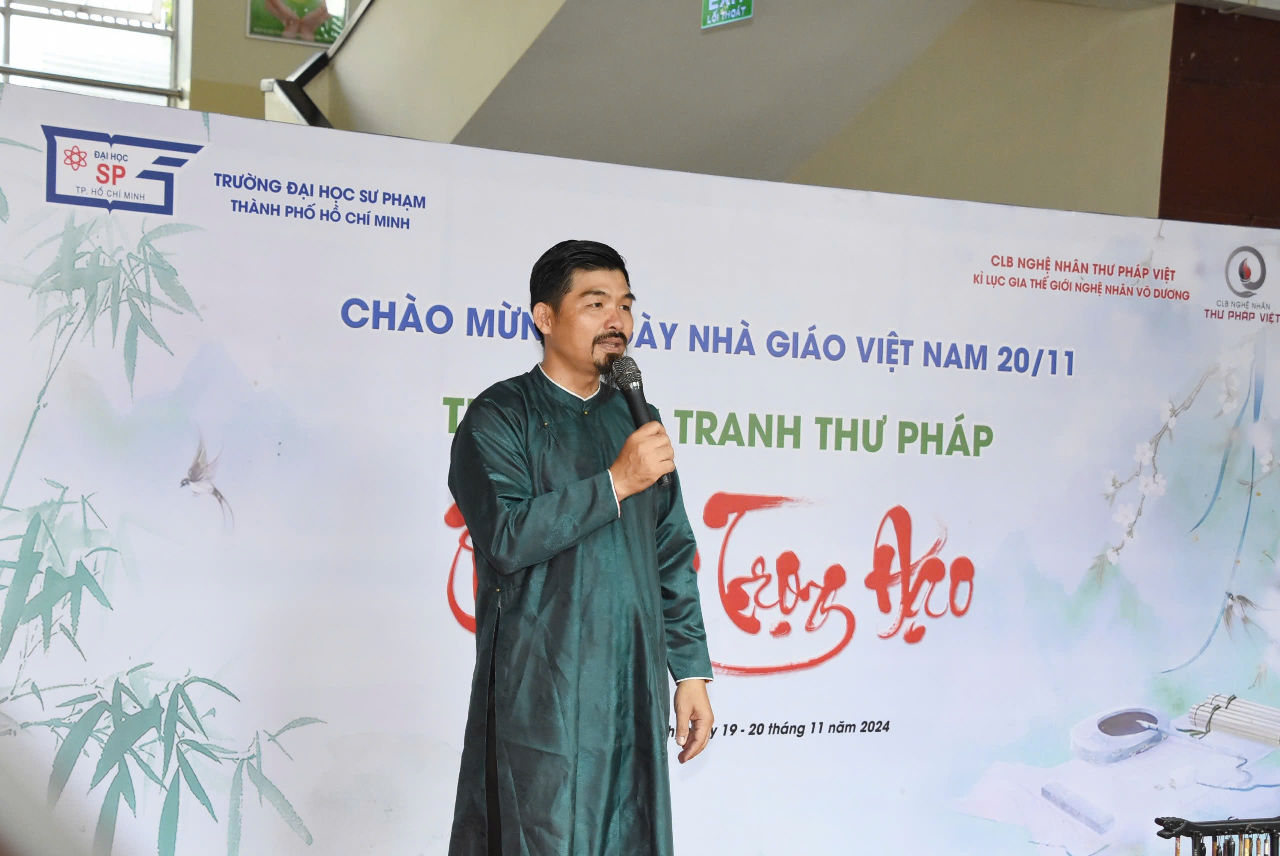 Trong không khí hân hoan chào mừng 42 năm Ngày Nhà Giáo Việt Nam (20/11/1982 - 20/11/2024) và nhằm tôn vinh, tri ân những thầy giáo, cô giáo - những người đã dành cả cuộc đời để truyền đạt tri thức, lòng yêu thương cho thế hệ mai sau, qua đó giáo dục truyền thống yêu nghề cho học sinh, sinh viên, Trường Đại học Sư phạm Thành phố Hồ Chí Minh triển khai thực hiện Không gian Thư pháp chữ Việt với đa dạng các nội dung trải nghiệm, hình thức tham gia.