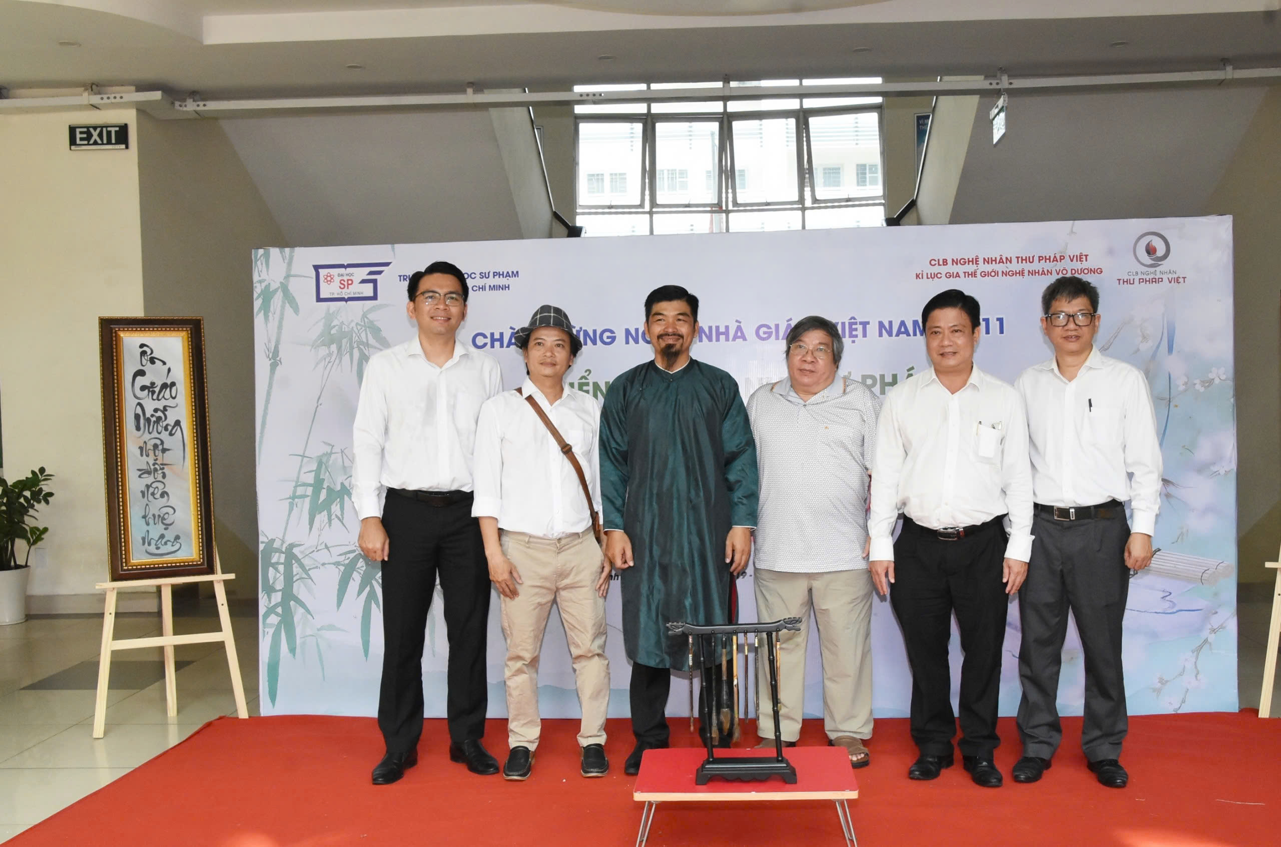 Đến tham dự buổi khai mạc Không gian Thư pháp chữ Việt tại Trường, có sự tham dự của PGS.TS. Nguyễn Tiến Công, Giám đốc Nhà Xuất bản Đại học Sư phạm Thành phố Hồ Chí Minh; ThS. Lê Thanh Hà, Tổng Biên tập Nhà Xuất bản Đại học Sư phạm Thành phố Hồ Chí Minh; TS. Lâm Thanh Minh - Trưởng phòng Công tác Chính trị và học sinh, sinh viên; Ông Cô Hồng Mười, Chánh án Tòa án nhân dân Quận 5; nghệ nhân Võ Dương, kỷ lục gia thế giới, nghệ nhân thư pháp chữ Việt; họa sĩ Nguyễn Phúc cùng đông đảo các bạn sinh viên quan tâm tham dự.