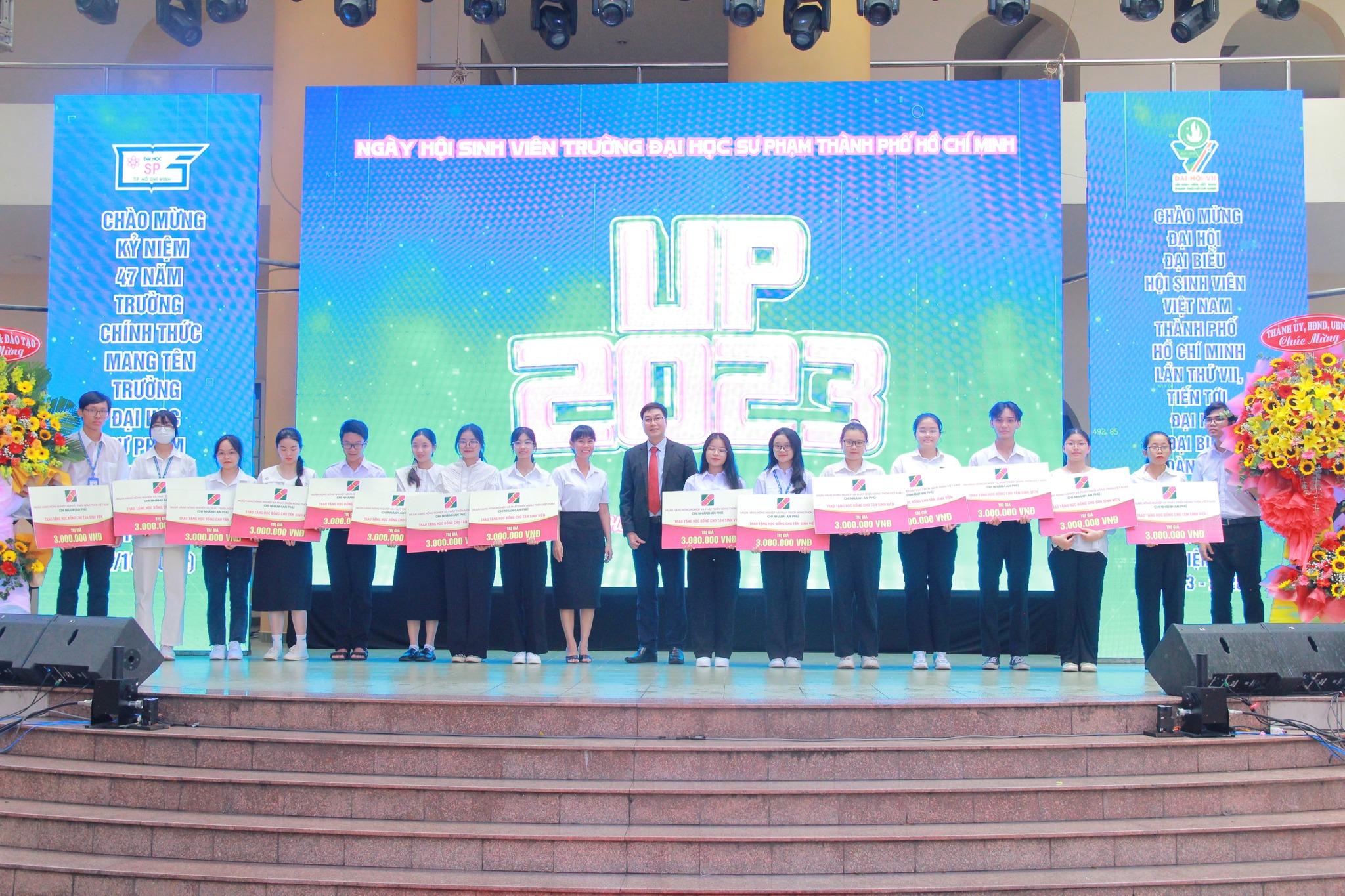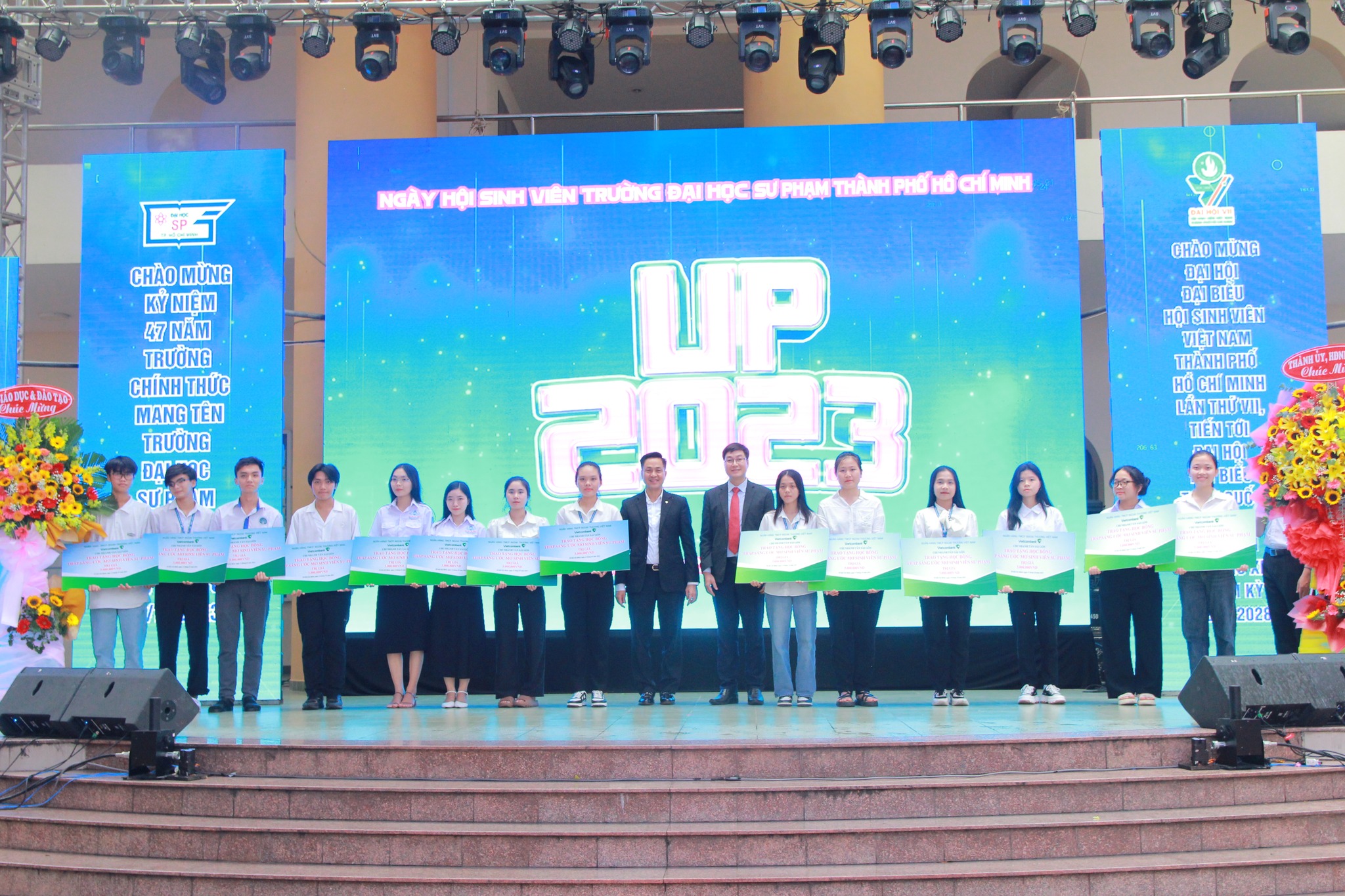 Về phía Đại diện các đơn vị tài trợ, đơn vị đồng hành cùng Ngày hội: Ông Huỳnh Song Hào - Giám đốc Ngân hàng TMCP Ngoại thương Việt Nam - Chi nhánh Tân Sài Gòn; Bà Bùi Thị Mỹ Hà - Giám đốc PGD Nguyễn Văn Cừ Ngân hàng Nông nghiệp và Phát triển nông thôn Việt Nam - Chi nhánh An Phú; Ông Nguyễn Tấn Sang - Giám đốc Trung tâm Anh ngữ WESET English; Ông Lưu Sĩ Dương - Giám đốc Kinh doanh Thái Hà Book; Bà Phạm Thị Hồng Nhi - Đại diện nhãn hàng VMStyle; Đ/c Nguyễn Thảo Duy - Trưởng phòng Hoạt động - Sự kiện Trung tâm Hỗ trợ học sinh, sinh viên TP. Hồ Chí Minh cùng đại diện nhãn hàng Realme, Vietnamobile,