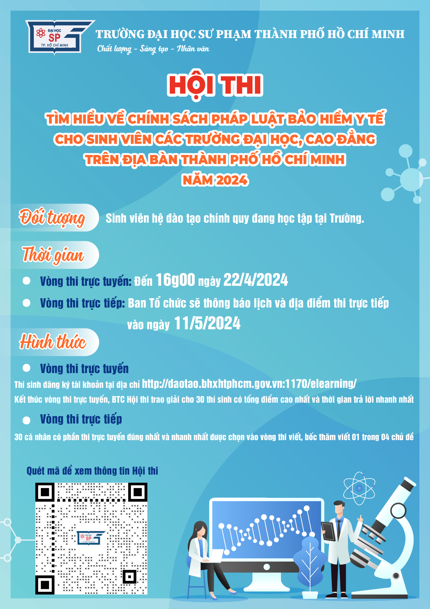 Thực hiện Kế hoạch 206/KH-ĐHSP ngày 15/4/2024 của Hiệu trưởng về việc triển khai Hội thi tìm hiểu về chính sách pháp luật bảo hiểm y tế cho sinh viên các trường Đại học, Cao đẳng trên địa bàn Thành phố Hồ Chí Minh năm 2024,
