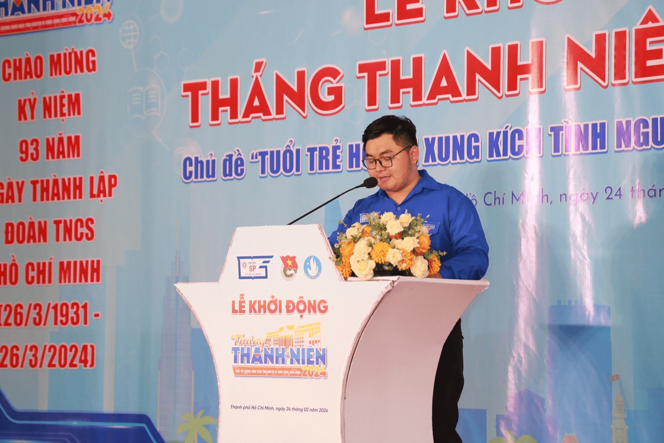 Tại Lễ khởi động, thay mặt Ban Thường vụ Đoàn Trường, đồng chí Nguyễn Khánh Tùng - Phó Bí thư thường trực Đoàn Trường đã trình bày tổng quan về các hoạt động và báo cáo về công tác chuẩn bị cho Tháng Thanh niên năm 2024 của tuổi trẻ Nhà trường. Đồng thời, quán triệt sâu sắc chỉ đạo của Đảng uỷ Trường và Ban Thường vụ Thành Đoàn về các mục tiêu trọng tâm trong Tháng Thanh niên 2024.