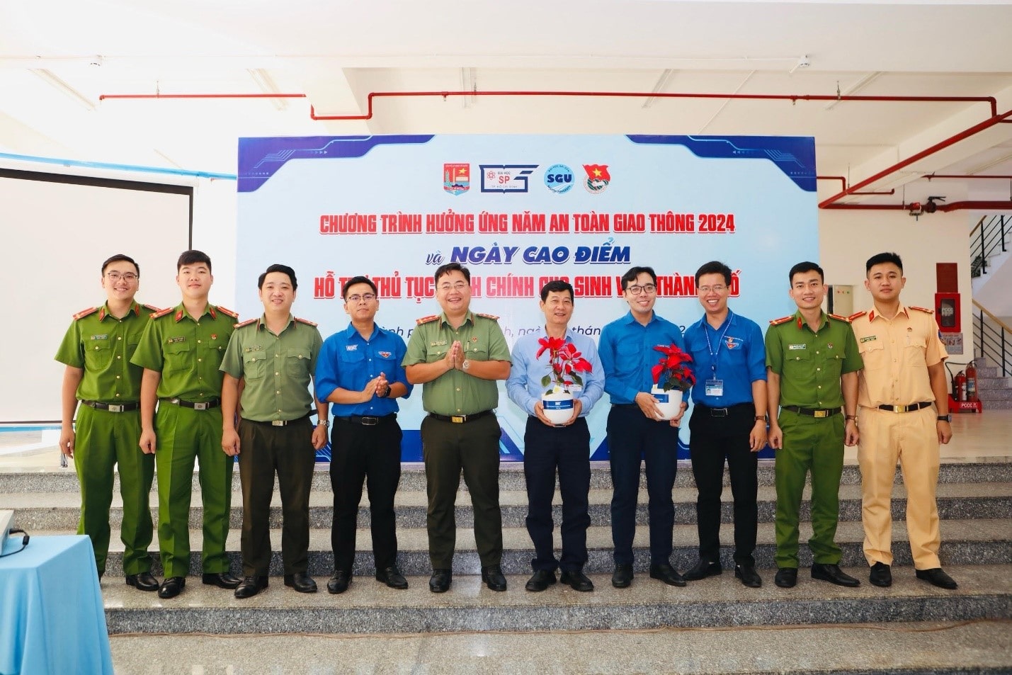 Cũng trong buổi sáng ngày 24/02, tại Trường Đại học Sài Gòn, Đoàn Trường cũng phối hợp với Đoàn Trường Đại học Sài Gòn và Ban Thanh niên Công an Thành phố tổ chức Chương trình khởi động năm An toàn giao thông 2024 và ngày cao điểm hỗ trợ thủ tục hành chính công cho sinh viên.