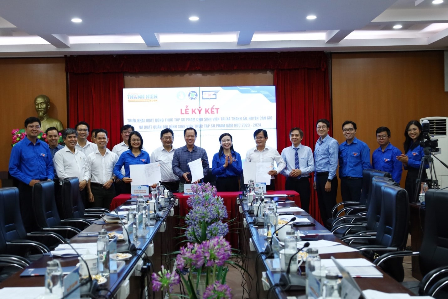 Lễ ký kết về việc triển khai hoạt động thực tập sư phạm tại xã đảo Thạnh An và xuất quân đội hình sinh viên thực tập sư phạm năm học 2023 - 2024