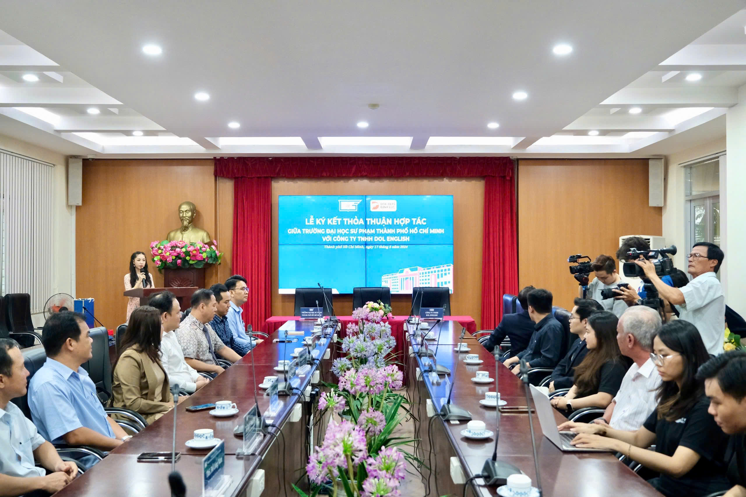 Chiều ngày 17/8, GS.TS. Huỳnh Văn Sơn - Hiệu trưởng Trường ĐH Sư phạm Thành phố Hồ Chí Minh đã gặp gỡ đại diện Công ty TNHH DOL English để ký kết hợp tác chiến lược trong năm học 2024-2025. Đây là sự kiện đánh dấu bước tiến quan trọng trong mối quan hệ hợp tác giữa DOL English cùng Trường Đại học Sư phạm TP.HCM - một trong những trường đại học trọng điểm quốc gia, môi trường đào tạo lĩnh vực sư phạm và ngôn ngữ hàng đầu cả nước.