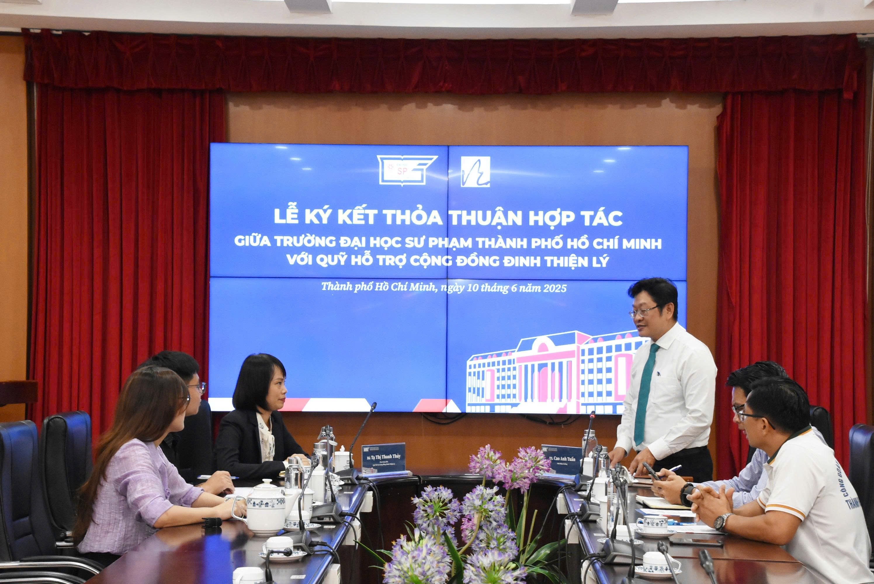 Tại buổi làm việc, Thầy Cao Anh Tuấn - Phó Hiệu trưởng Trường Đại học Sư phạm Thành phố Hồ Chí Minh - bày tỏ sự biết ơn sâu sắc tới Quỹ hỗ trợ công đồng Đinh Thiện Lý dành cho các sinh viên của Trường: “Sự hỗ trợ của Quỹ không chỉ mang giá trị vật chất, mà còn là nguồn động viên lớn lao giúp sinh viên có thêm niềm tin, nghị lực để theo đuổi con đường đã chọn.”