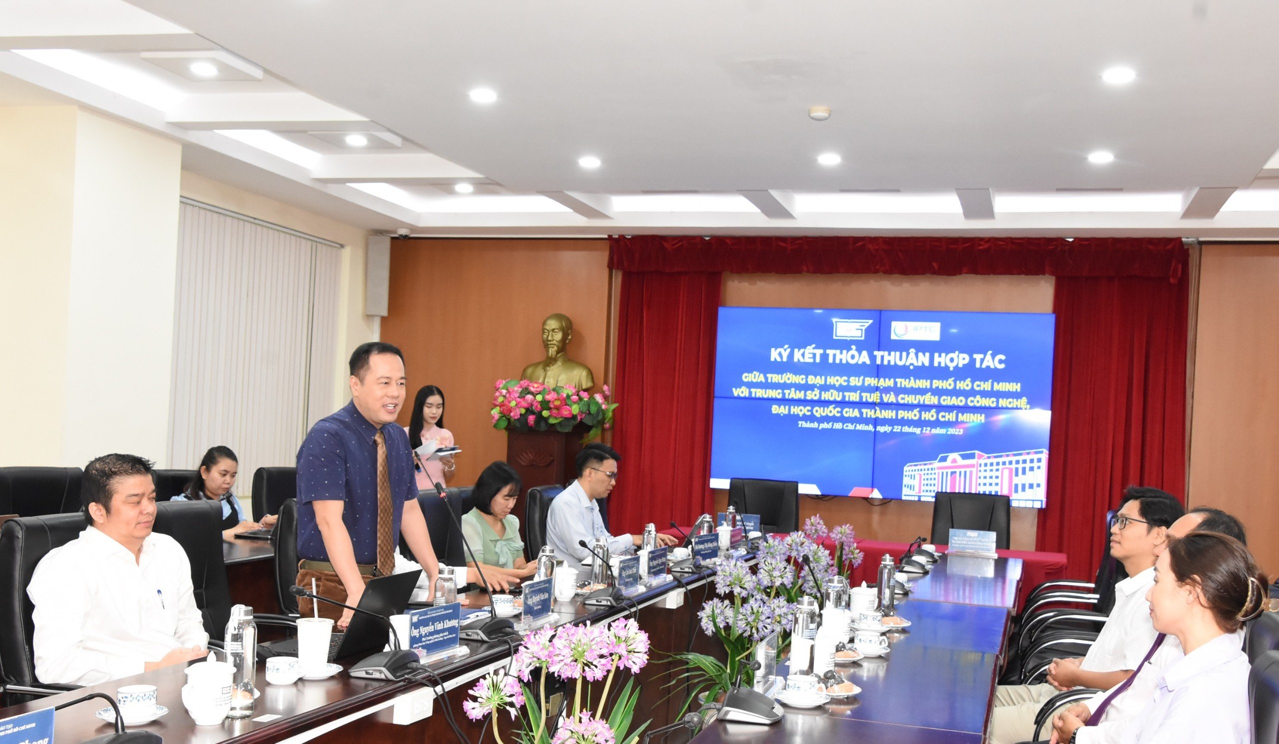 Sáng ngày 22/12/2023, tại Trường Đại học Sư phạm Thành phố Hồ Chí Minh, Trung tâm Sở hữu Trí tuệ và Chuyển giao Công nghệ Đại học Quốc gia Thành phố Hồ Chí Minh đã có buổi làm việc và ký kết thỏa thuận hợp tác với Nhà trường.