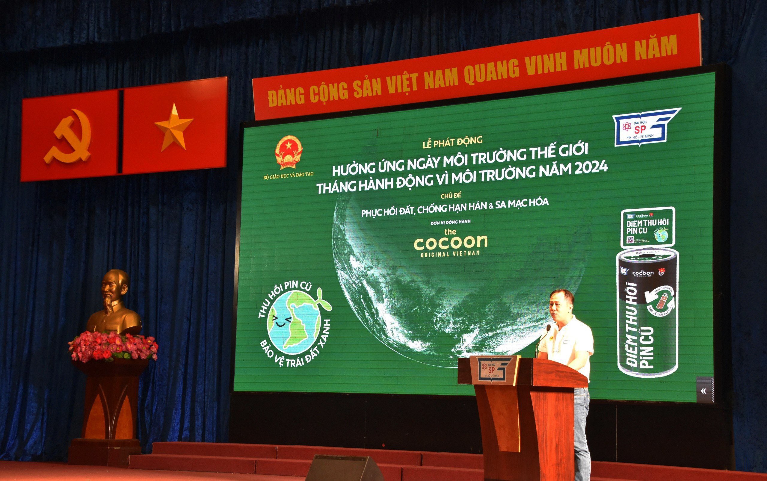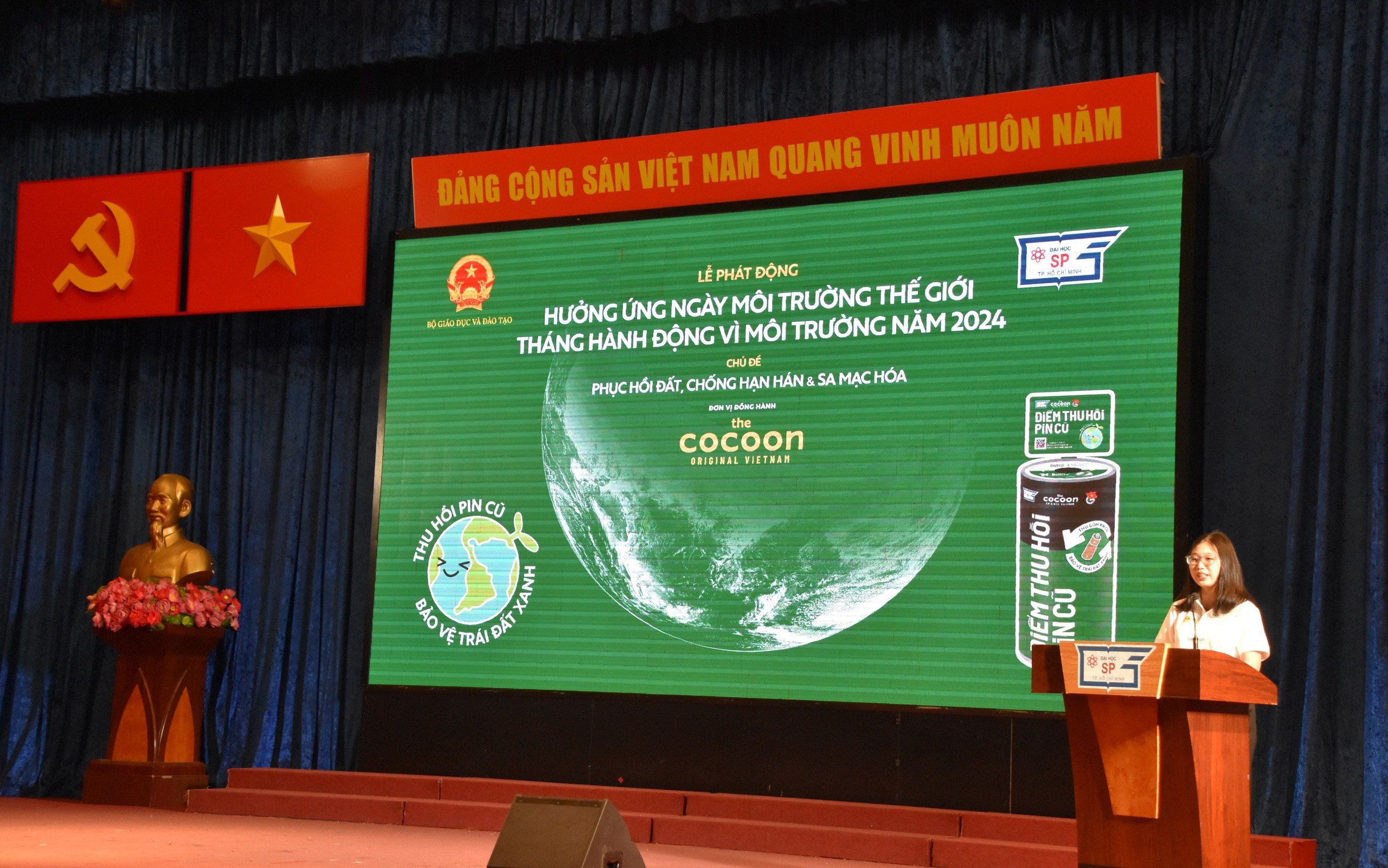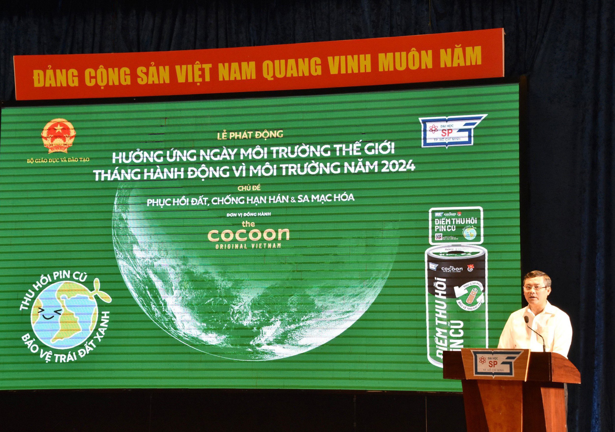 Sáng ngày 22/6/2024, tại Trường Đại học Sư phạm Thành phố Hồ Chí Minh đã diễn ra chương trình Lễ phát động hưởng ứng ngày Môi trường thế giới và tháng hành động vì môi trường năm 2024. Chương trình với sự đồng hành của Công ty Cổ phần Y&B (Thương hiệu The Cocoon Original Việt Nam).