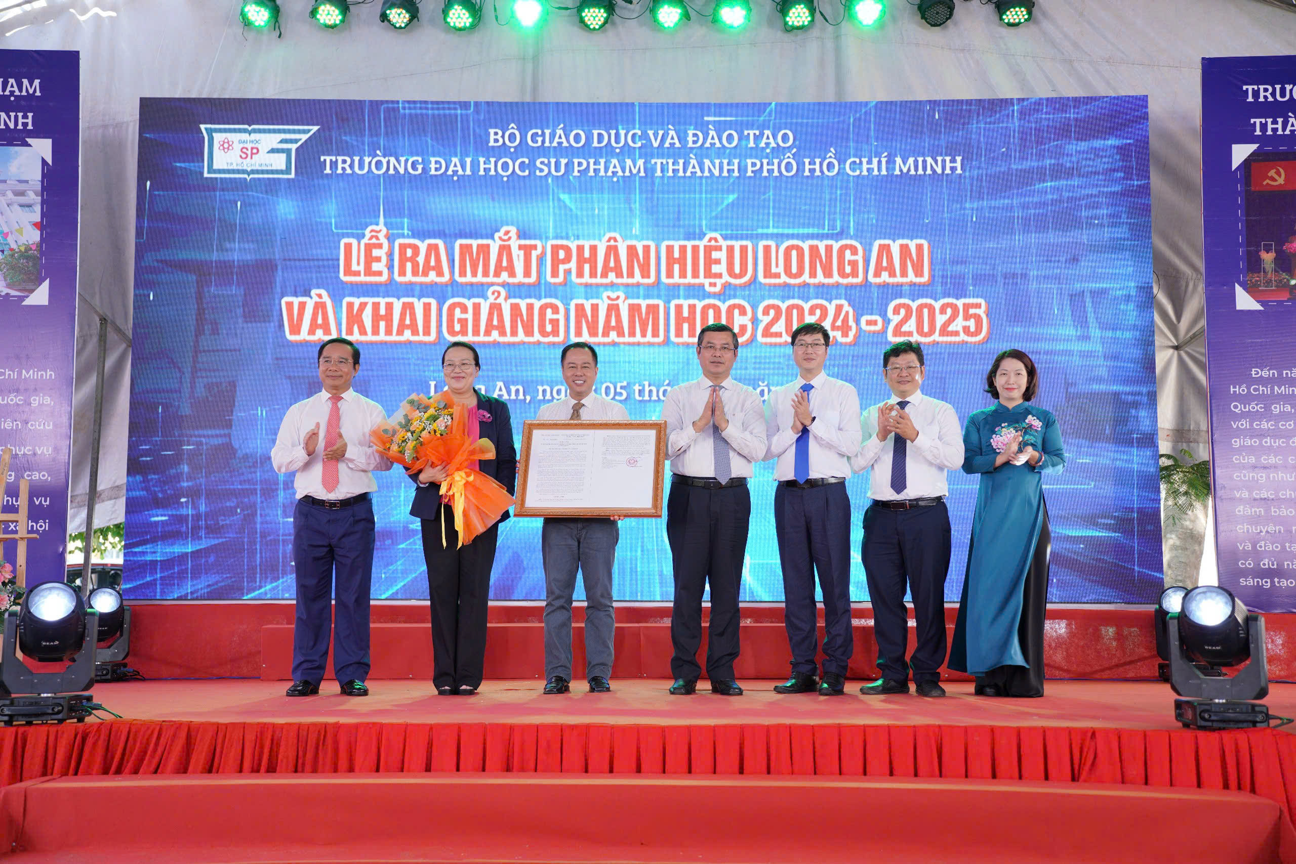 Tiếp nối là nghi thức ra mắt chính thức Phân hiệu của Trường Đại học Sư phạm Thành phố Hồ Chí Minh tại tỉnh Long An, đánh dấu một cột mốc quan trọng, mở ra những chương mới trong hành trình phát triển của Nhà trường.