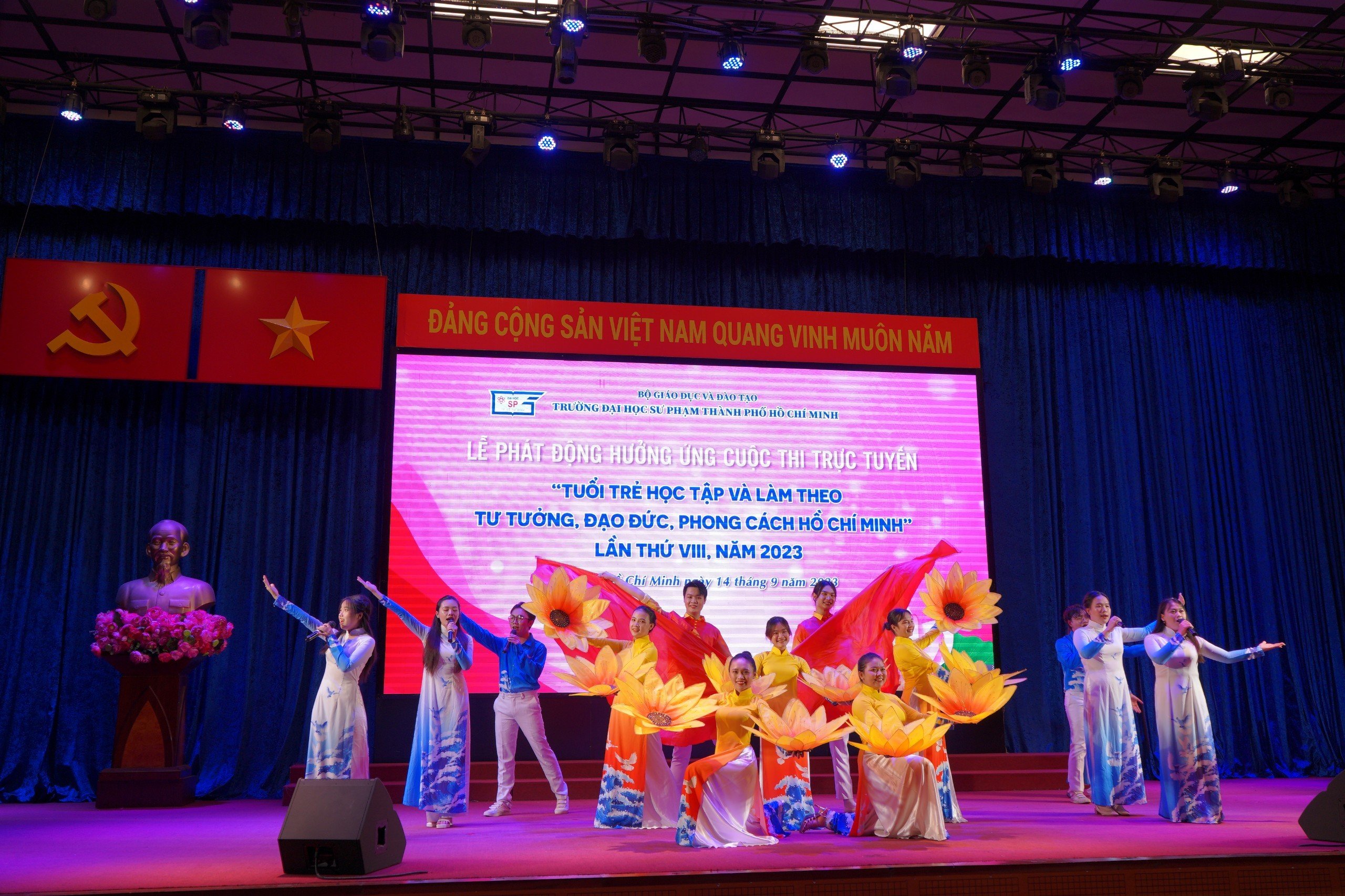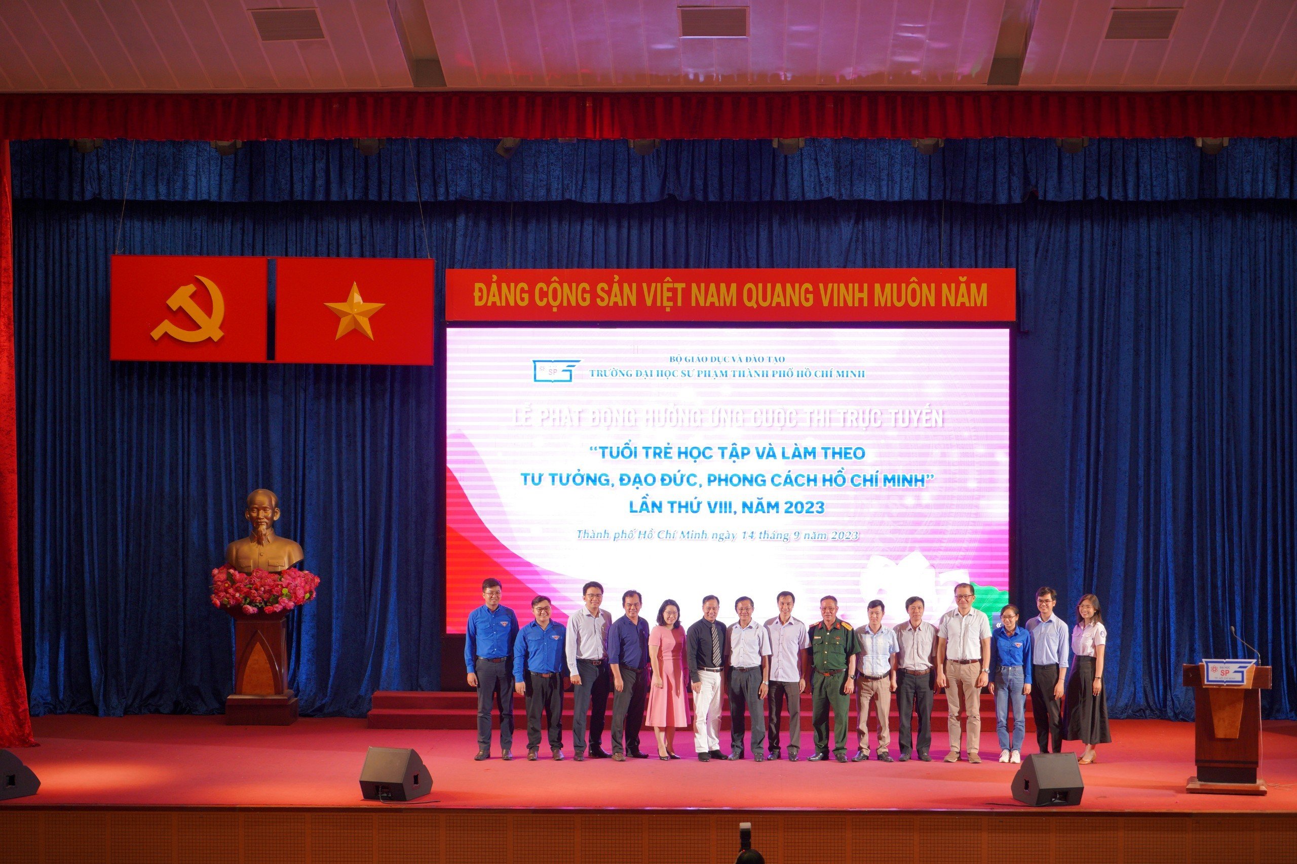Nhằm thực hiện Kế hoạch số 1297/KH-BGDĐT ngày 03/8/2023 của Bộ trưởng Bộ Giáo dục và Đào tạo về việc tổ chức Cuộc thi trực tuyến “Tuổi trẻ học tập và làm theo tư tưởng, đạo đức, phong cách Hồ Chí Minh” năm 2023, vào ngày 14 tháng 9 năm 2023, tại trường Hội trường B Trường Đại học Sư phạm Thành phố Hồ Chí Minh đã diễn ra Lễ phát động hưởng ứng cuộc thi.