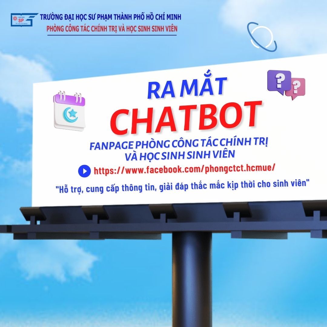 Thực hiện việc cải tiến, nâng cao chất lượng các hoạt động hỗ trợ đào tạo, phục vụ người học của Nhà trường. Ngày 12/12/2022, Phòng Công tác chính trị và Học sinh, sinh viên đã chính thức ra mắt Chatbot để hỗ trợ, cung cấp thông tin, giải đáp thắc mắc kịp thời cho sinh viên tại địa chỉ: https://www.facebook.com/phongctct.hcmue/