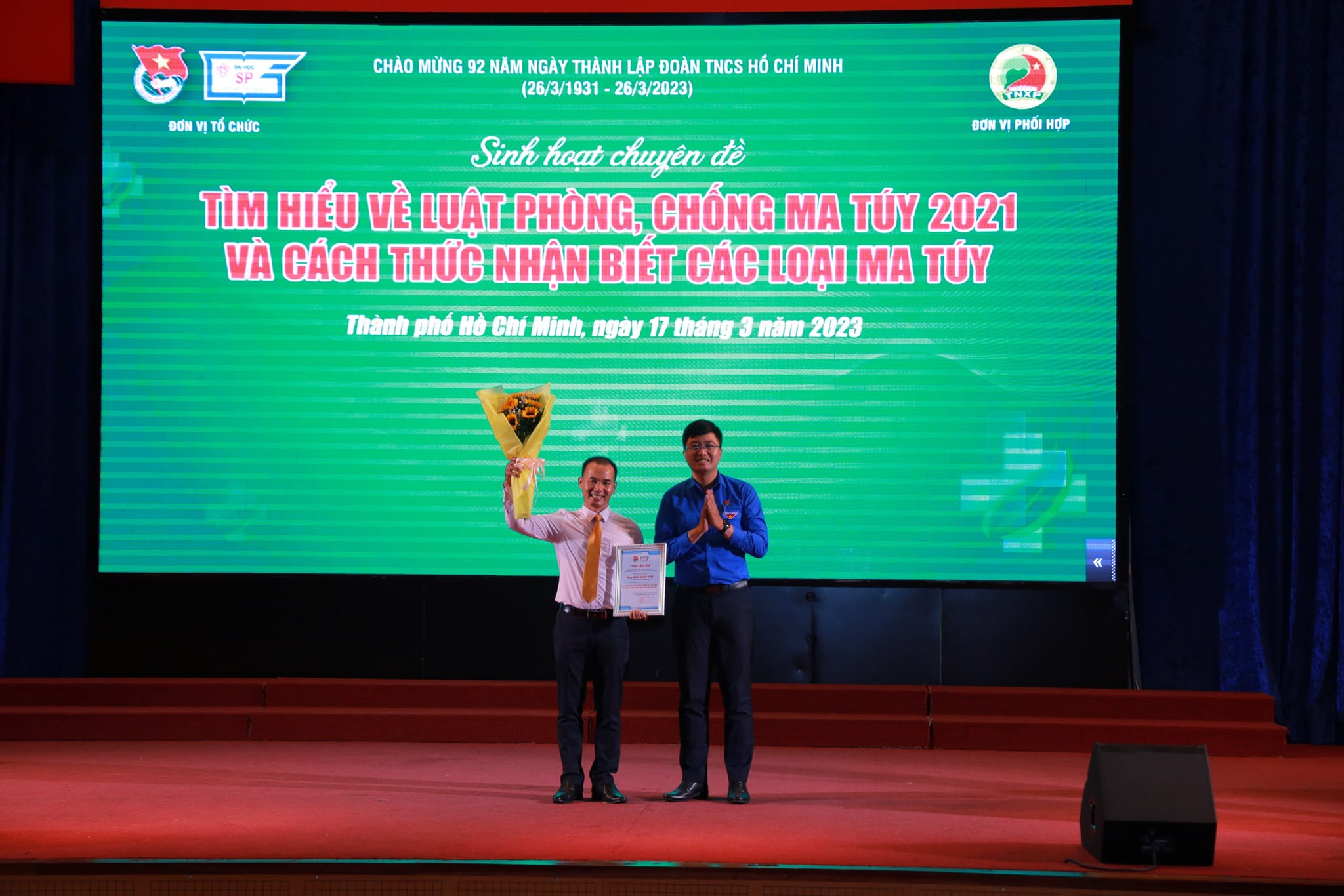 Thiết thực chào mừng kỷ niệm 92 năm Ngày thành lập Đoàn TNCS Hồ Chí Minh (26/3/1931 – 26/3/2023) và hưởng ứng Tháng Thanh niên năm 2023, chiều ngày 17/3/2023, Ban Thường vụ Đoàn Trường phối hợp với Đoàn Lực lượng Thanh niên xung phong TP. Hồ Chí Minh tổ chức buổi Sinh hoạt chuyên đề “Tìm hiểu về Luật Phòng, chống ma túy 2021 và cách thức nhận biết các loại ma túy” cho gần 1000 bạn đoàn viên, thanh niên.