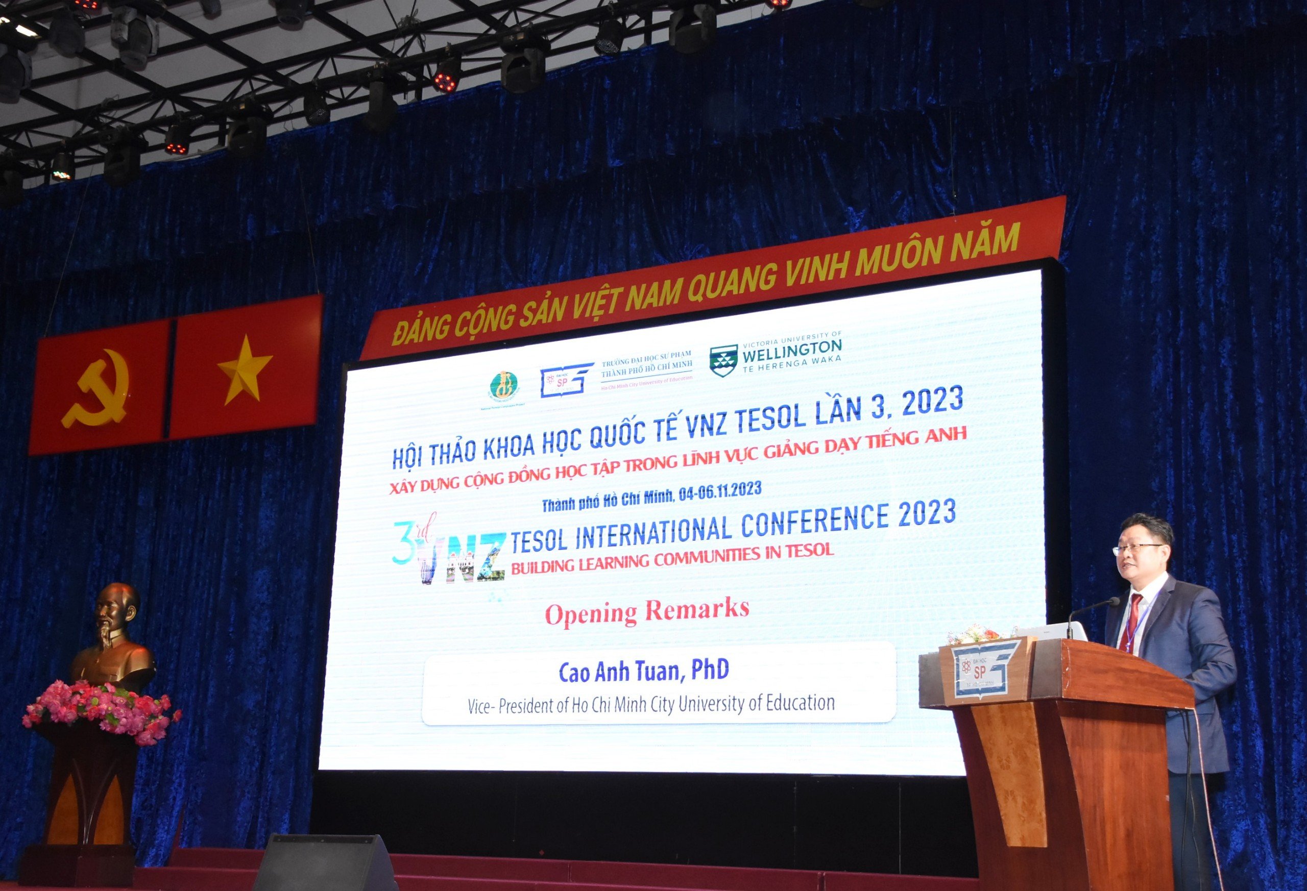 Từ ngày gày 04 - 05/11/2023, Hội thảo quốc tế VNZ TESOL lần 3 năm 2023 với chủ đề “Xây dựng cộng đồng học tập trong lĩnh vực giảng dạy tiếng Anh”, được phối hợp tổ chức giữa Trường Đại học Sư phạm Thành phố Hồ Chí Minh và Trường Đại học Victoria Wellington, New Zealand, đã diễn ra thành công tốt đẹp. Hội thảo đã ghi dấu ấn trong lĩnh vực giảng dạy tiếng Anh và cũng là cơ hội quý báu cho các nhà nghiên cứu và chuyên gia giáo dục trao đổi chuyên môn, học hỏi lẫn nhau và kết nối sâu rộng trong cộng đồng giảng dạy tiếng Anh (TESOL).