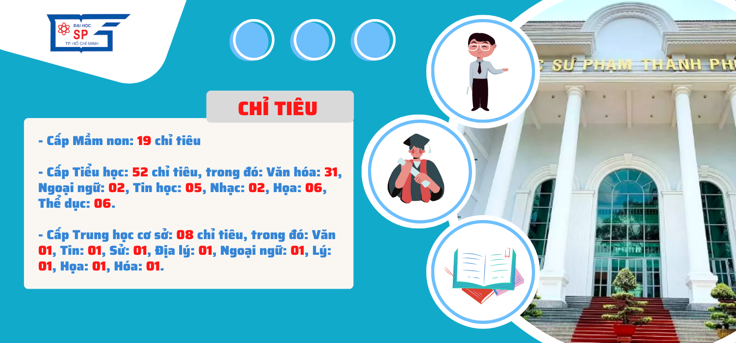 - Cấp Tiểu học: 52 chỉ tiêu, trong đó: Giáo viên nhiều môn: 31, Ngoại ngữ: 02, Tin học: 05, Nhạc: 02, Họa: 06, Giáo dục Thể chất: 6.