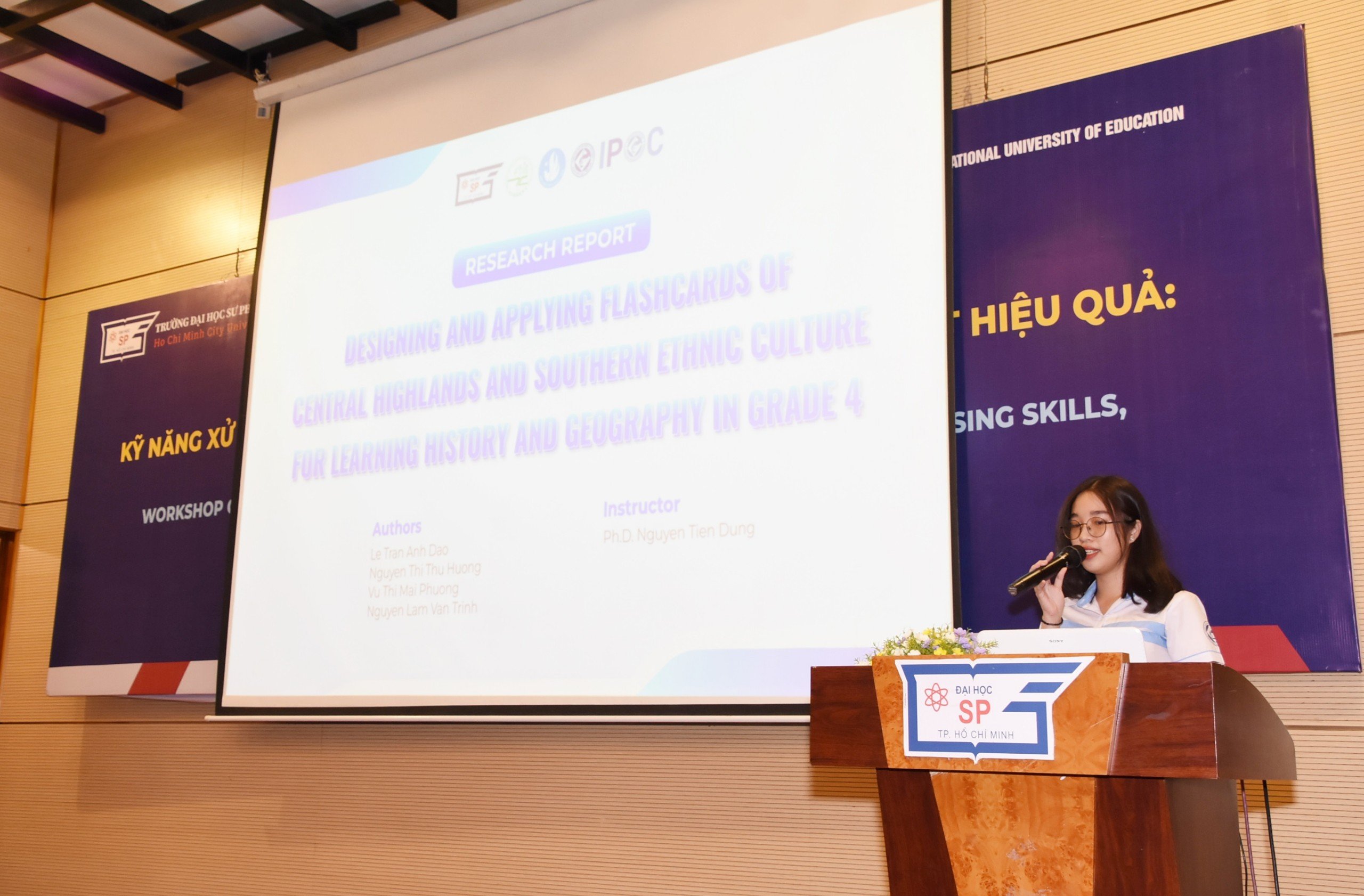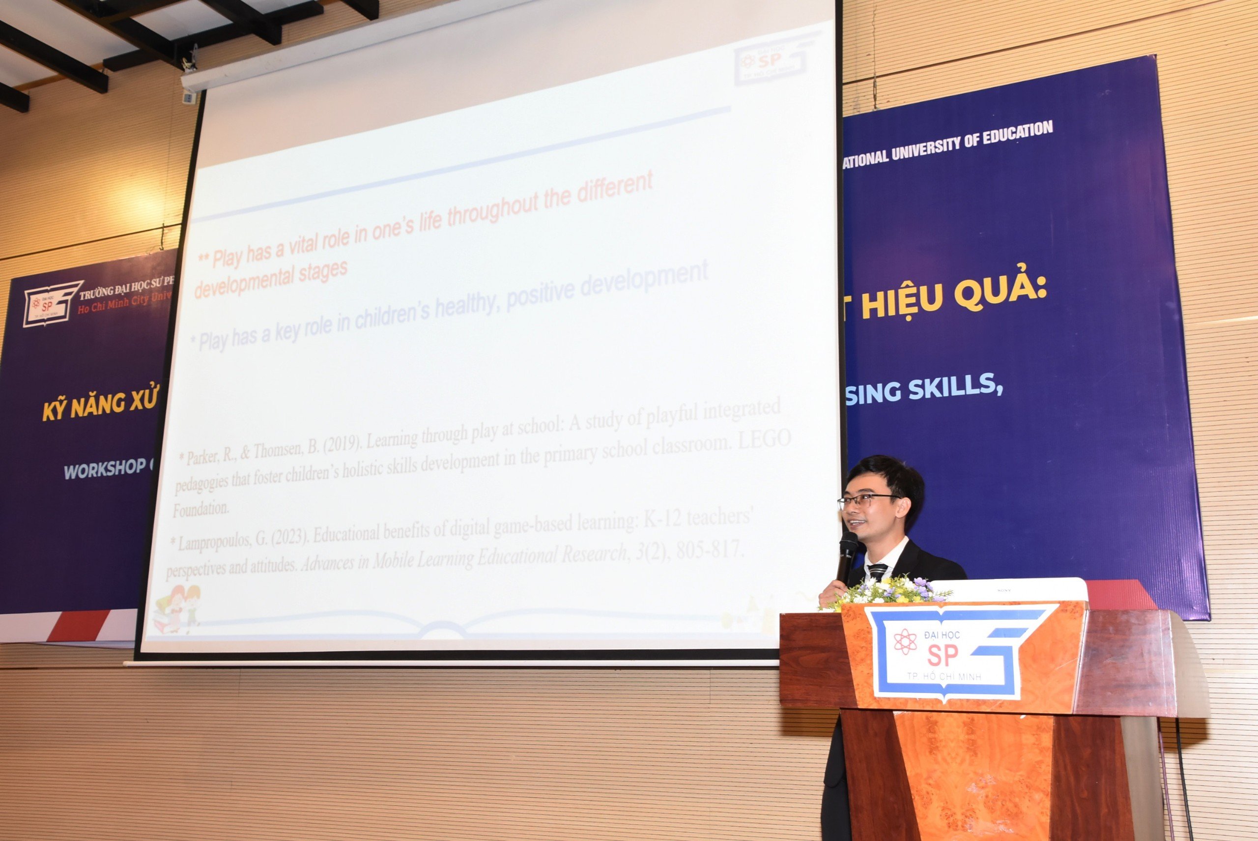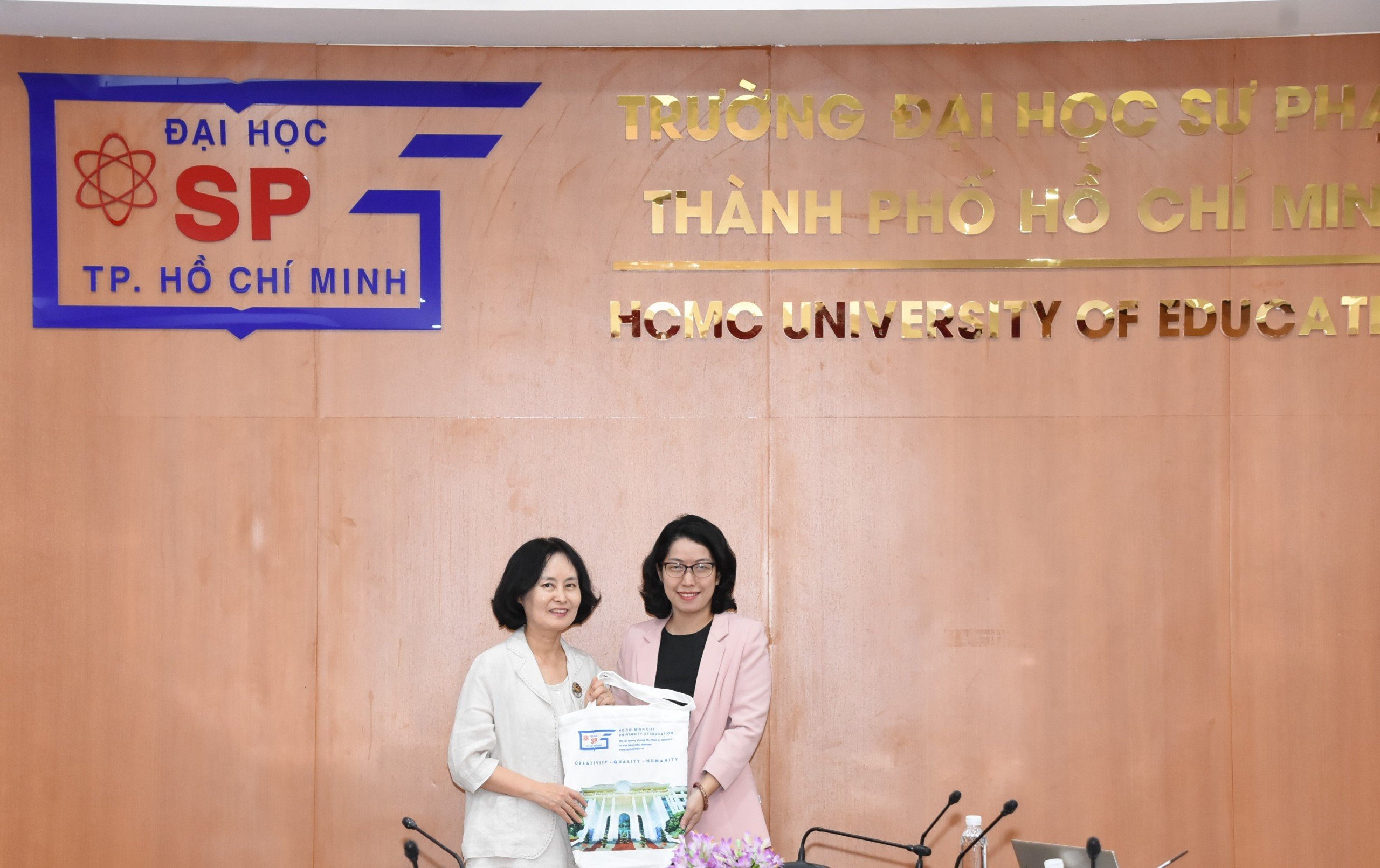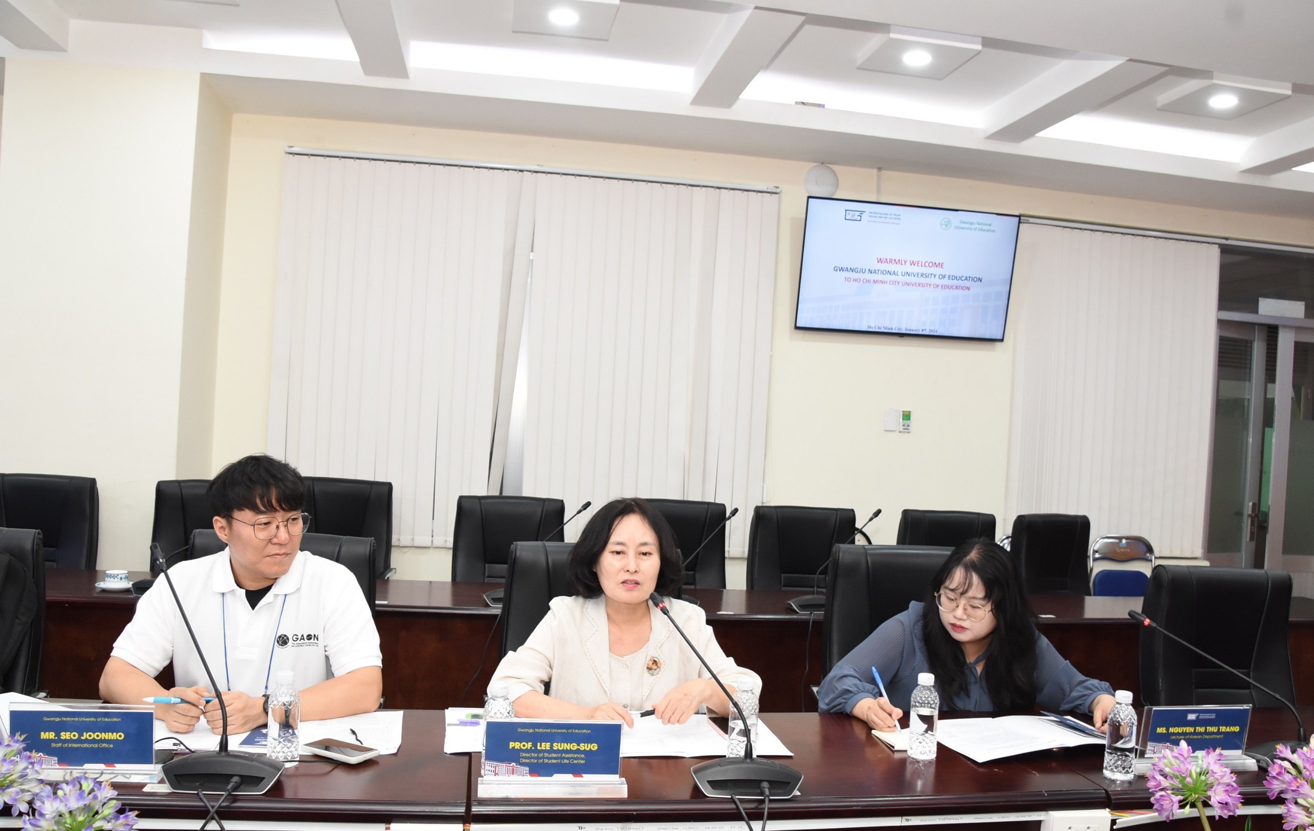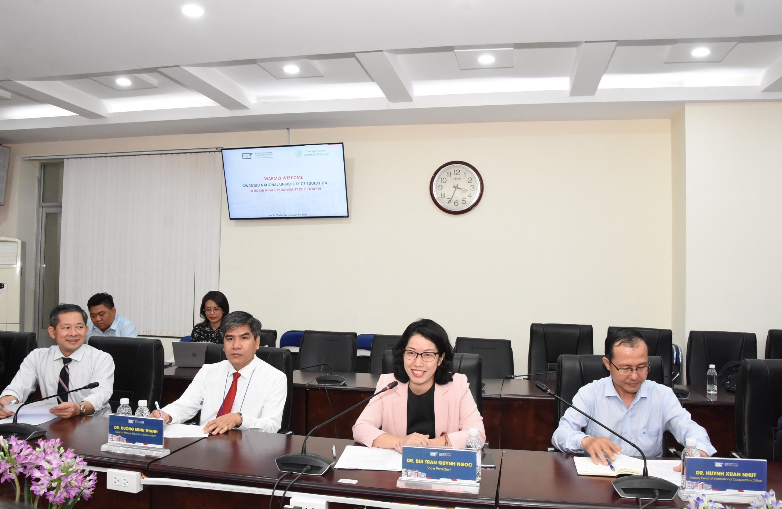 Chia sẻ tại chương trình, TS. Bùi Trần Quỳnh Ngọc, Phó Hiệu trưởng Nhà trường cho biết: “Chương trình ngày hôm nay đặc biệt có ý nghĩa, sự kiện này mang đến cơ hội tuyệt vời để giảng viên và sinh viên hai trường cùng giao lưu, trao đổi kinh nghiệm đào tạo giáo viên trong môi trường giáo dục đại học quốc tế. Chương trình cũng giúp thúc đẩy hợp tác giáo dục đại học hiệu quả giữa Trường Đại học Sư phạm Thành phố Hồ Chí Minh và Trường Đại học Giáo dục Quốc gia Gwangju trong lĩnh vực giáo dục tiểu học, đồng thời giúp cho sinh viên hai trường học tập và phát triển năng lực tư duy phản biện, sáng tạo; kỹ năng xử lý thông tin và sẵn sàng đổi mới phương pháp học tập để phát triển tối ưu năng lực nghề nghiệp cho sinh viên.