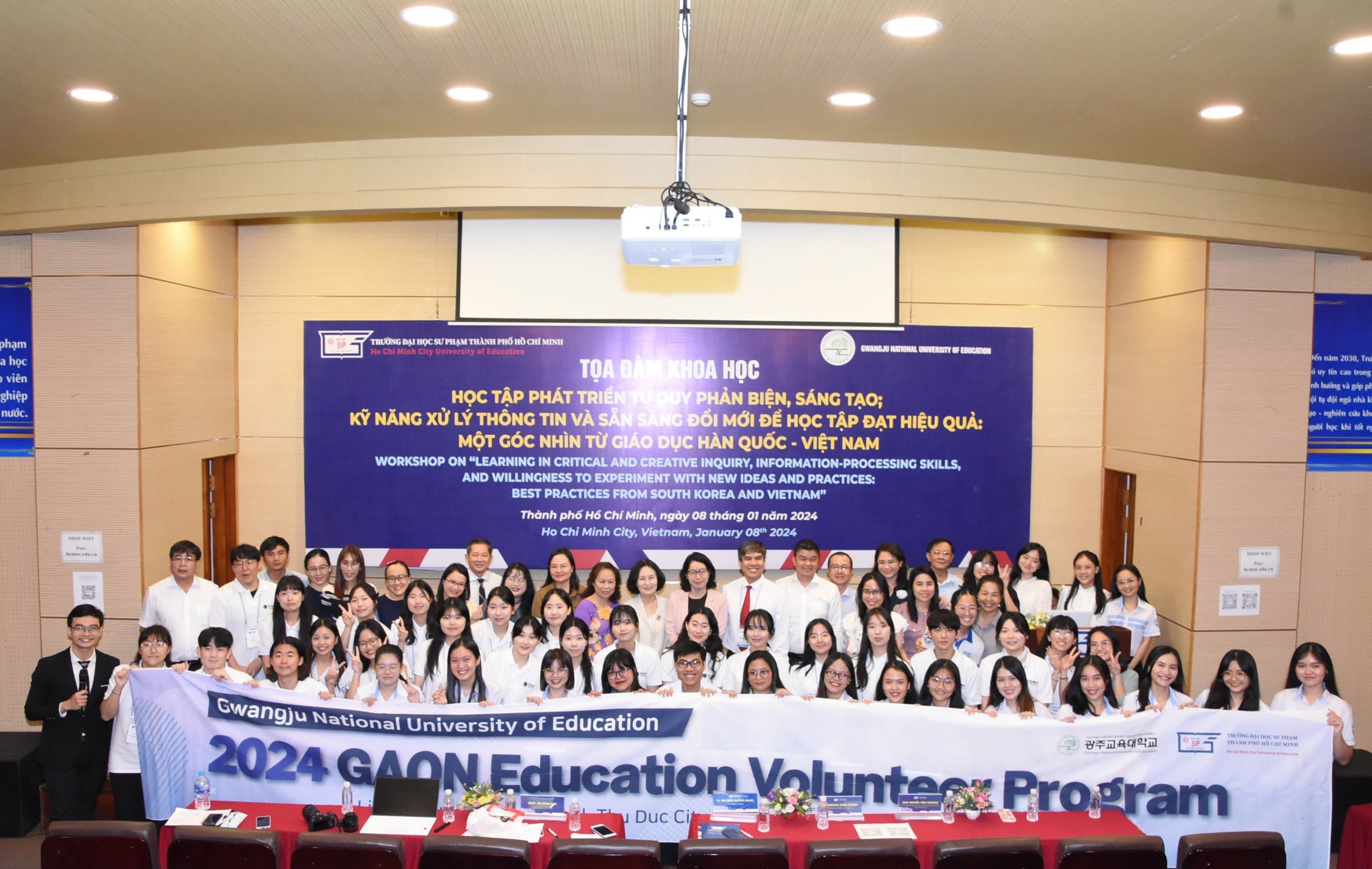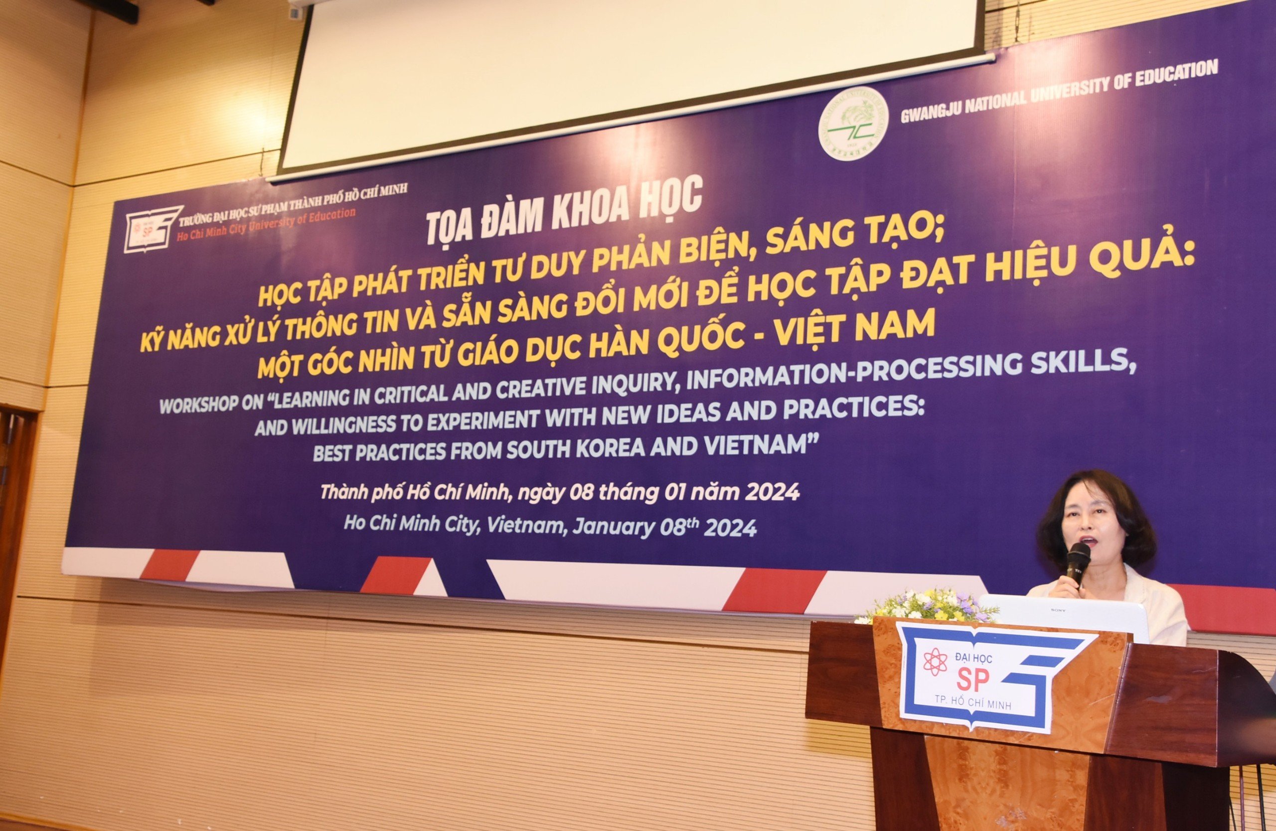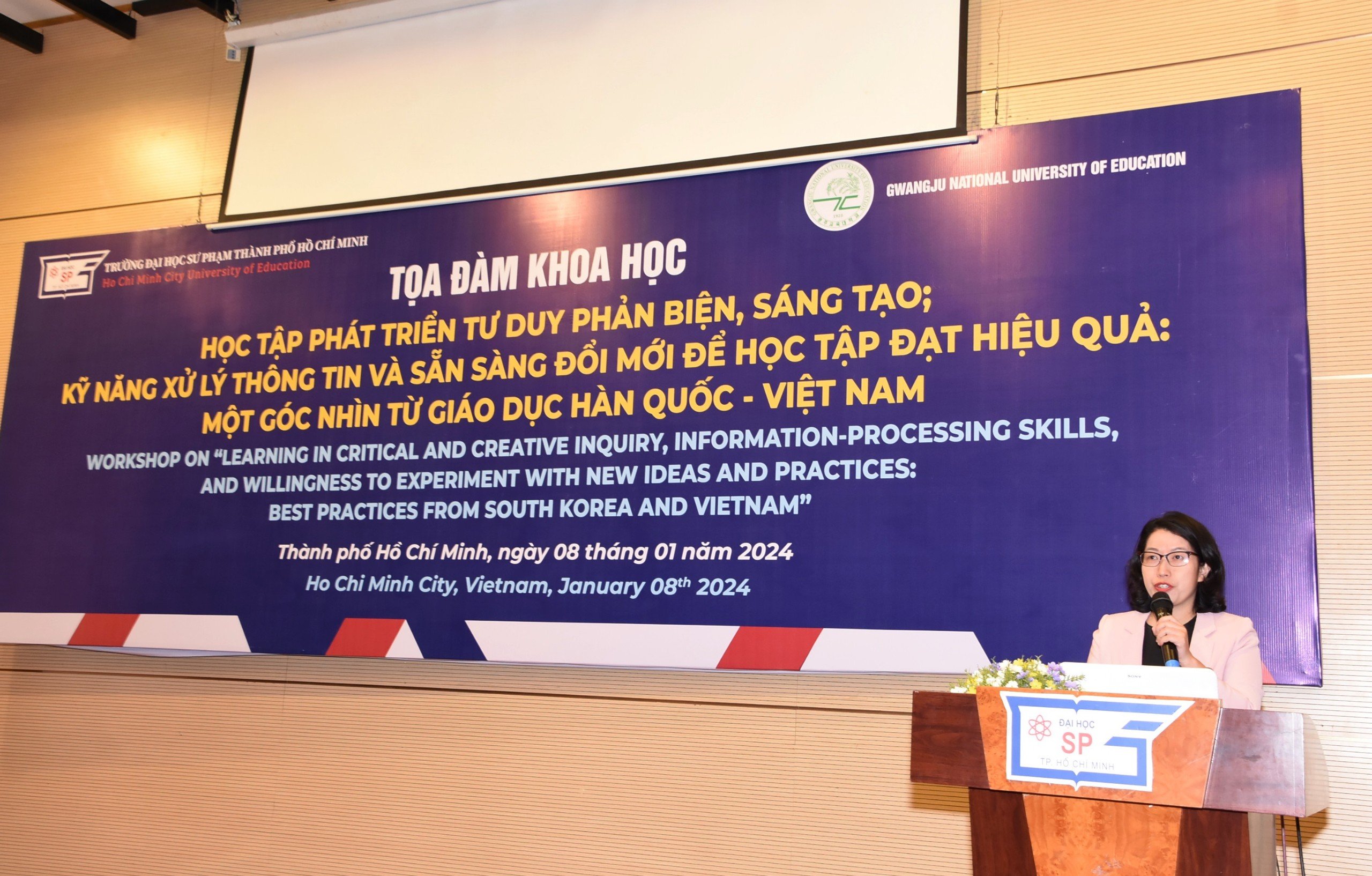 Chiều ngày 08/01/2024, tại Trường Đại học Sư phạm Thành phố Hồ Chí Minh đã diễn ra chương trình Tọa đàm khoa học "Học tập và phát triển tư duy phản biện, sáng tạo; kỹ năng xử lý thông tin và sẵn sàng đổi mới để học tập hiệu quả: Một góc nhìn từ giáo dục Việt Nam - Hàn Quốc”. Chương trình do Trường Đại học Sư phạm Thành phố Hồ Chí Minh và Trường Đại học Giáo dục Quốc gia Gwangju tổ chức.
