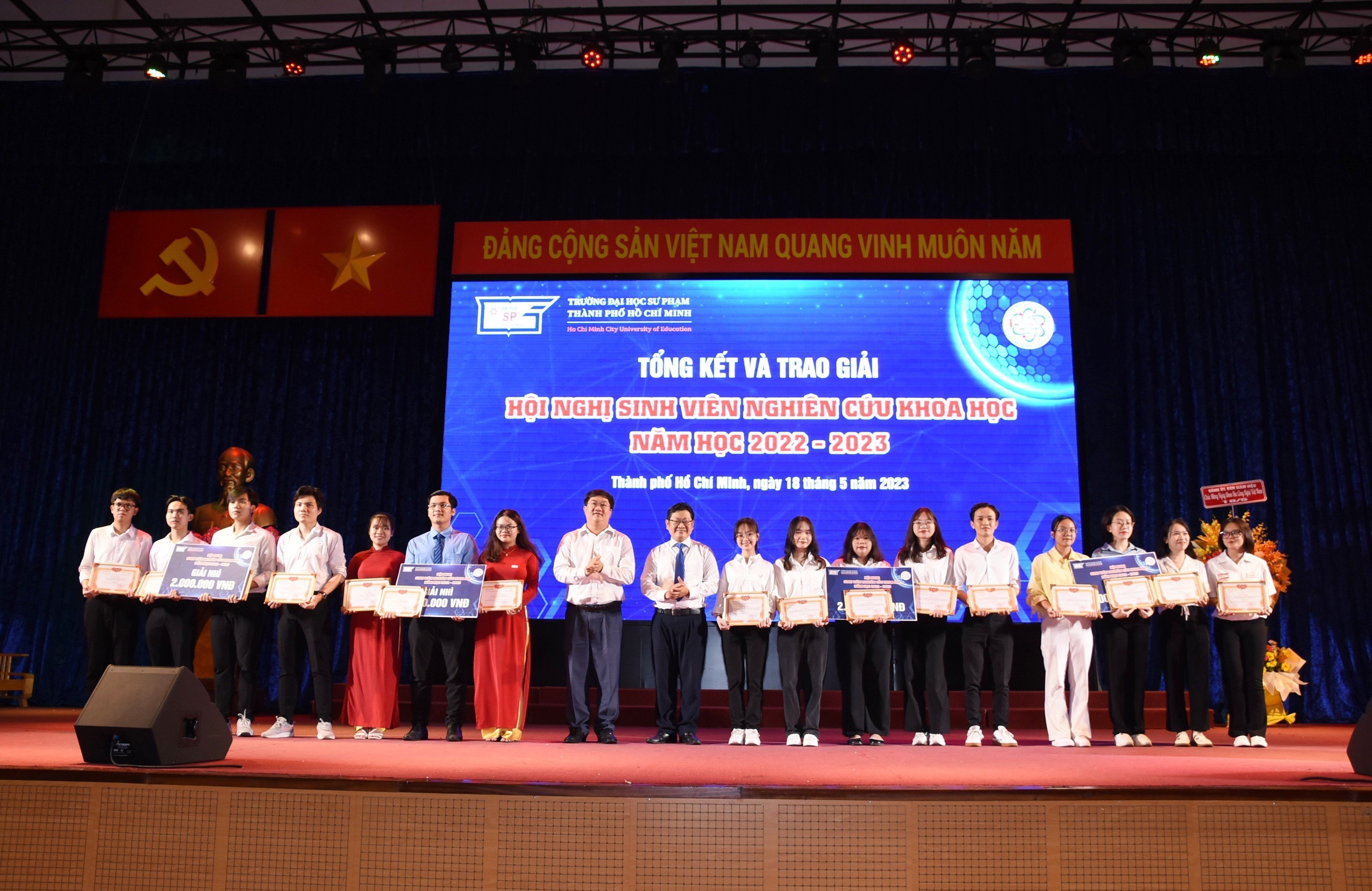 Tiếp tục phát huy truyền thống nghiên cứu khoa học trong sinh viên và giảng viên, năm học 2022 - 2023, Trường Đại học Sư phạm Thành phố Hồ Chí Minh đã triển khai hoạt động nghiên cứu khoa học trong sinh viên từ tháng 9/2022. Sau các vòng xét chọn, đã có 298 đề tài đến từ 20/22 khoa được kí hợp đồng để triển khai thực hiện với tổng kinh phí 1.256.000.000 đồng. Đến nay, tất cả các khoa đã tổ chức đánh giá nghiệm thu với tổng cộng 284 đề tài. Trên cơ sở đánh giá của Hội đồng Khoa học cấp Khoa, 35 đề tài tiêu biểu đã được chọn đăng trong Kỉ yếu hội nghị Sinh viên NCKH năm học 2022 - 2023 của Trường Đại học Sư phạm Thành phố Hồ Chí Minh; 19 đề tài trong số này được đề cử tham gia báo cáo tại 4 tiểu ban trong Hội nghị Sinh viên NCKH cấp Trường. Trong đó, có 01/19 đề tài có công bố trên Tạp chí quốc tế có trong danh mục Scopus (Q3), 06/19 đề tài có công bố trên Tạp chí trong nước.