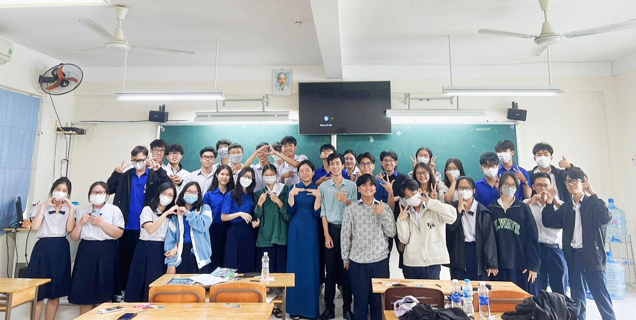 Trần Ka Ni chụp ảnh lưu niệm cùng lớp trong đợt thực tập sư phạm 2, năm học 2023 – 2024 - Ảnh: Nhân vật cung cấp