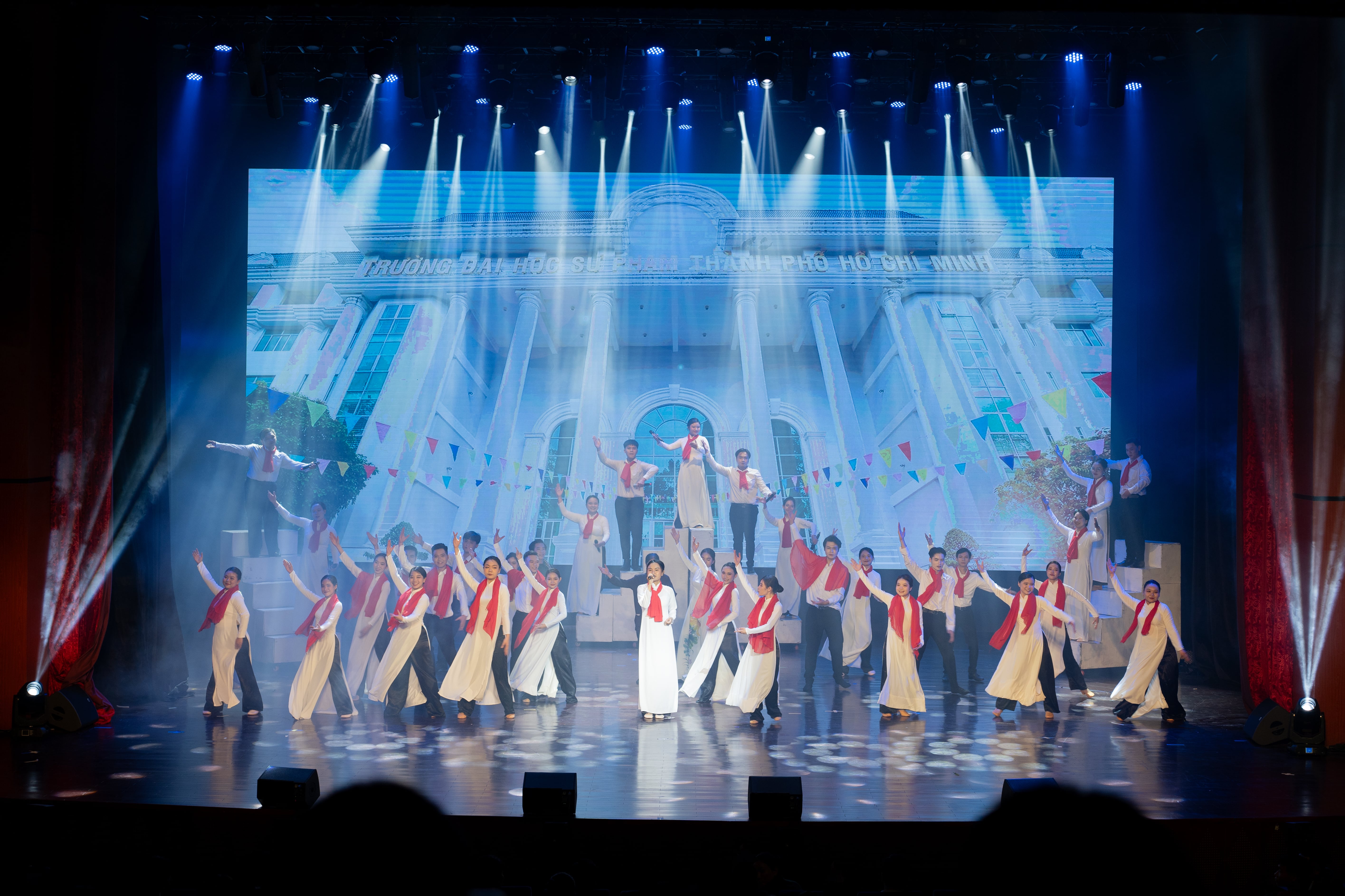 Nhận nhiệm vụ phân công từ Bộ Giáo dục và Đào tạo, Trường Đại học Sư phạm Thành phố Hồ Chí Minh tổ chức tuyển chọn, tập luyện và tham gia liên hoan với chủ đề “Đường lên phía trước” gồm 6 tiết mục: “Mẹ yêu con”; “Hãy yên lòng mẹ ơi”; “Đường lên phía trước”; “Tượng đài Chiến thắng”; “Chào anh giải phóng quân, chào mùa xuân đại thắng”; “Ca ngợi Tổ quốc” dưới sự chỉ đạo của TS. Cao Anh Tuấn - Phó Hiệu trưởng Nhà trường, dàn dựng và đạo diễn của TS. Huỳnh Trung Phong, Giám đốc Trung tâm Hỗ trợ sinh viên và Phát triển khởi nghiệp.