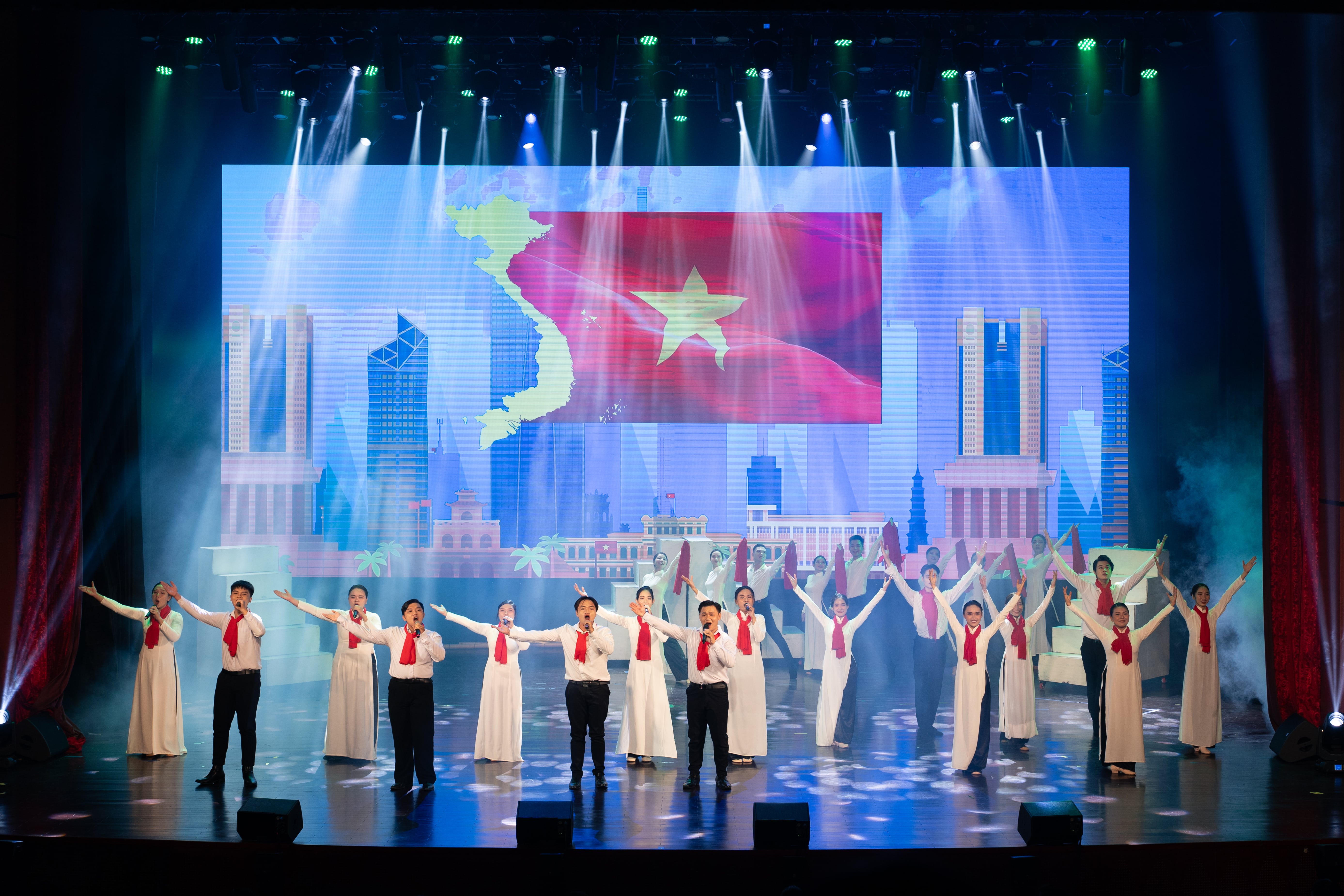 Các tiết mục trong chương trình "Đường lên phía trước" của đoàn nghệ thuật Trường Đại học Sư phạm Thành phố Hồ Chí Minh